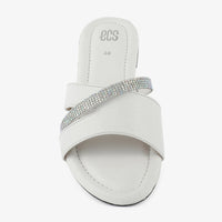 Add a touch of subtle sparkle to your casual look with these Crystal Aura Slides. Featuring a crystal-embellished strap and a clean, minimalist design, these slides offer a refined and luminous aesthetic. The slip-on style ensures ease of wear for everyday comfort.