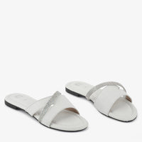 Add a touch of subtle sparkle to your casual look with these Crystal Aura Slides. Featuring a crystal-embellished strap and a clean, minimalist design, these slides offer a refined...