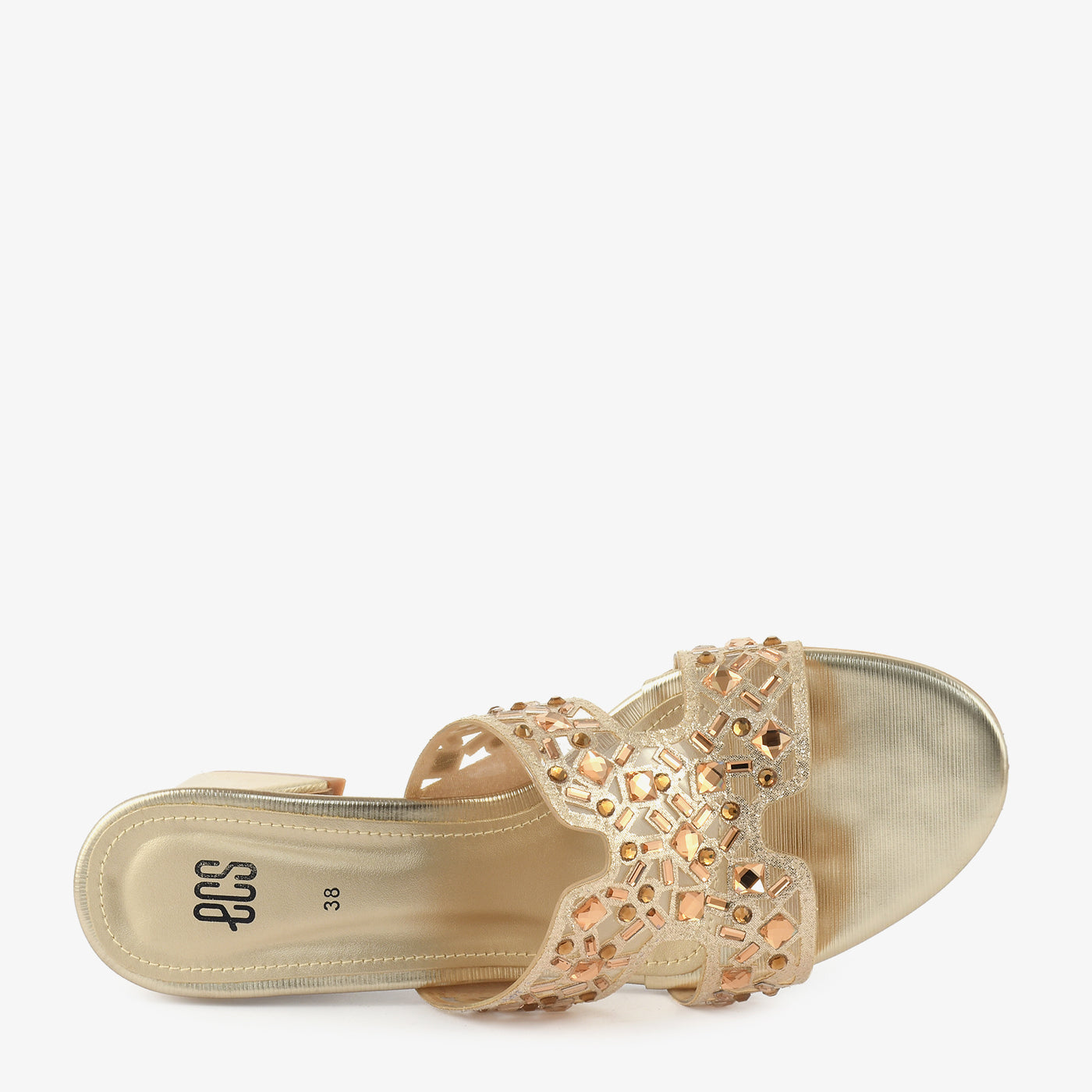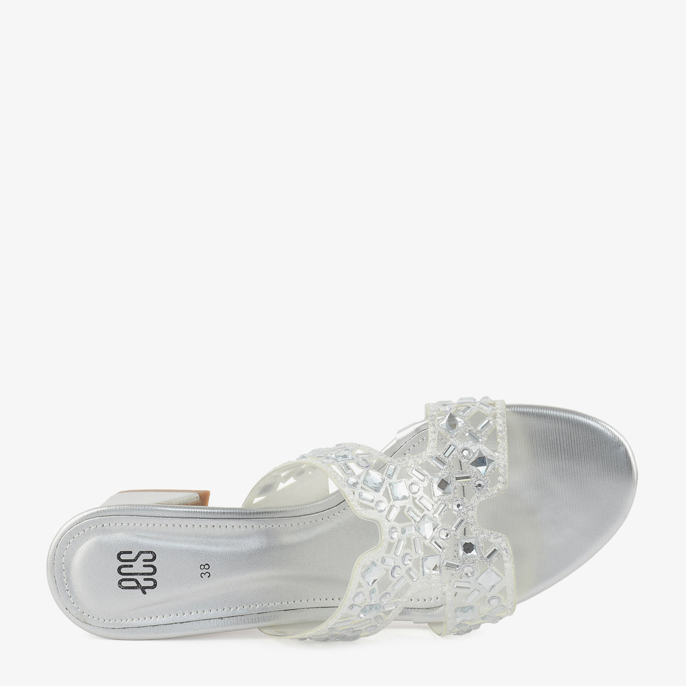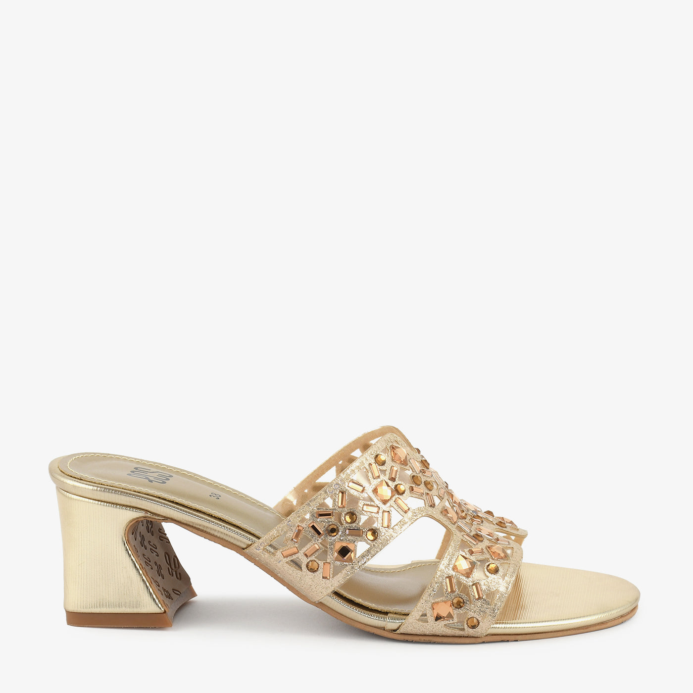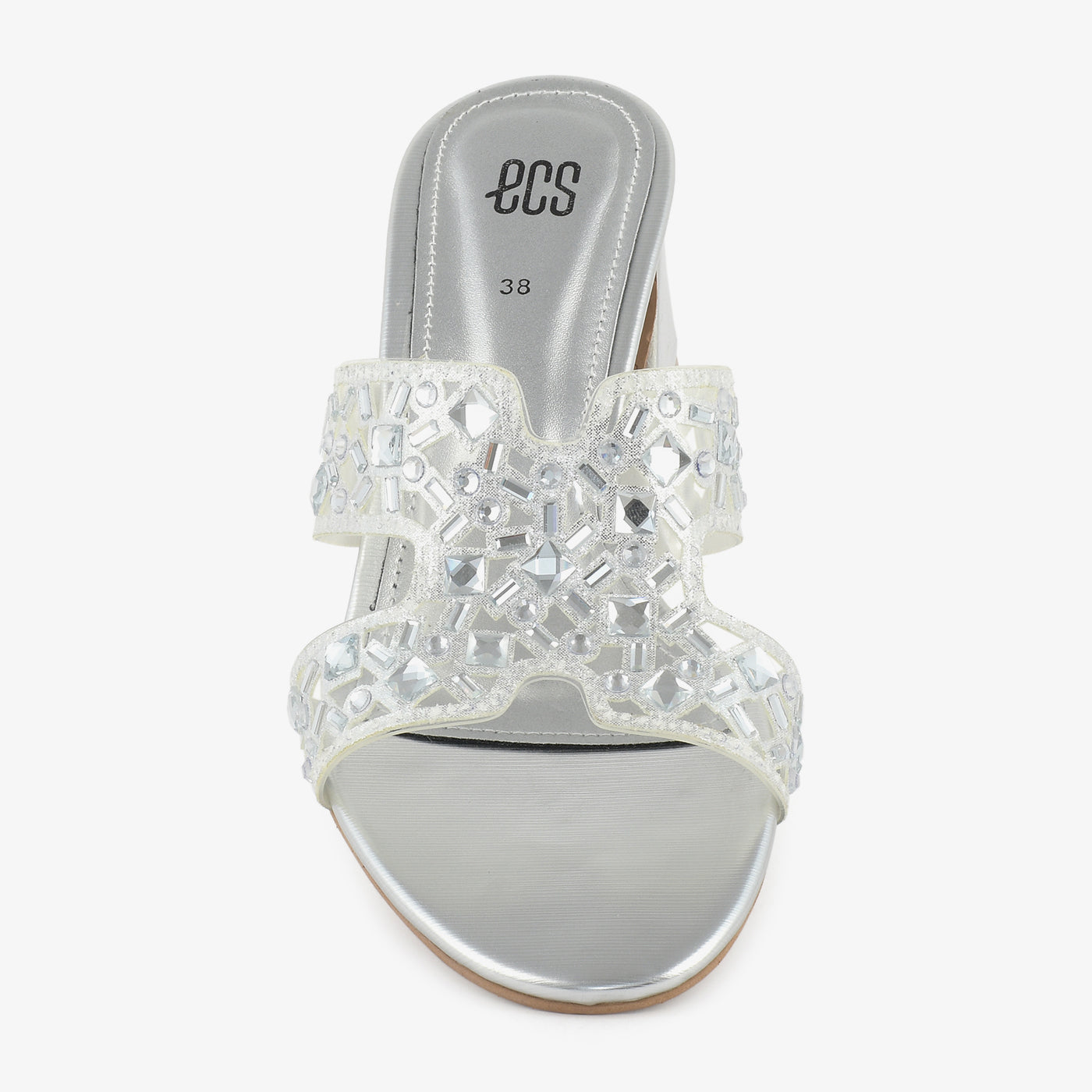 A festive slipper crafted for occasions where comfort meets sparkle. The multi-strap upper adorned with reflective accents gently wraps the foot while allowing airflow. The supportive block heel ensures steady balance, making it ideal for celebrations and semi-formal gatherings.