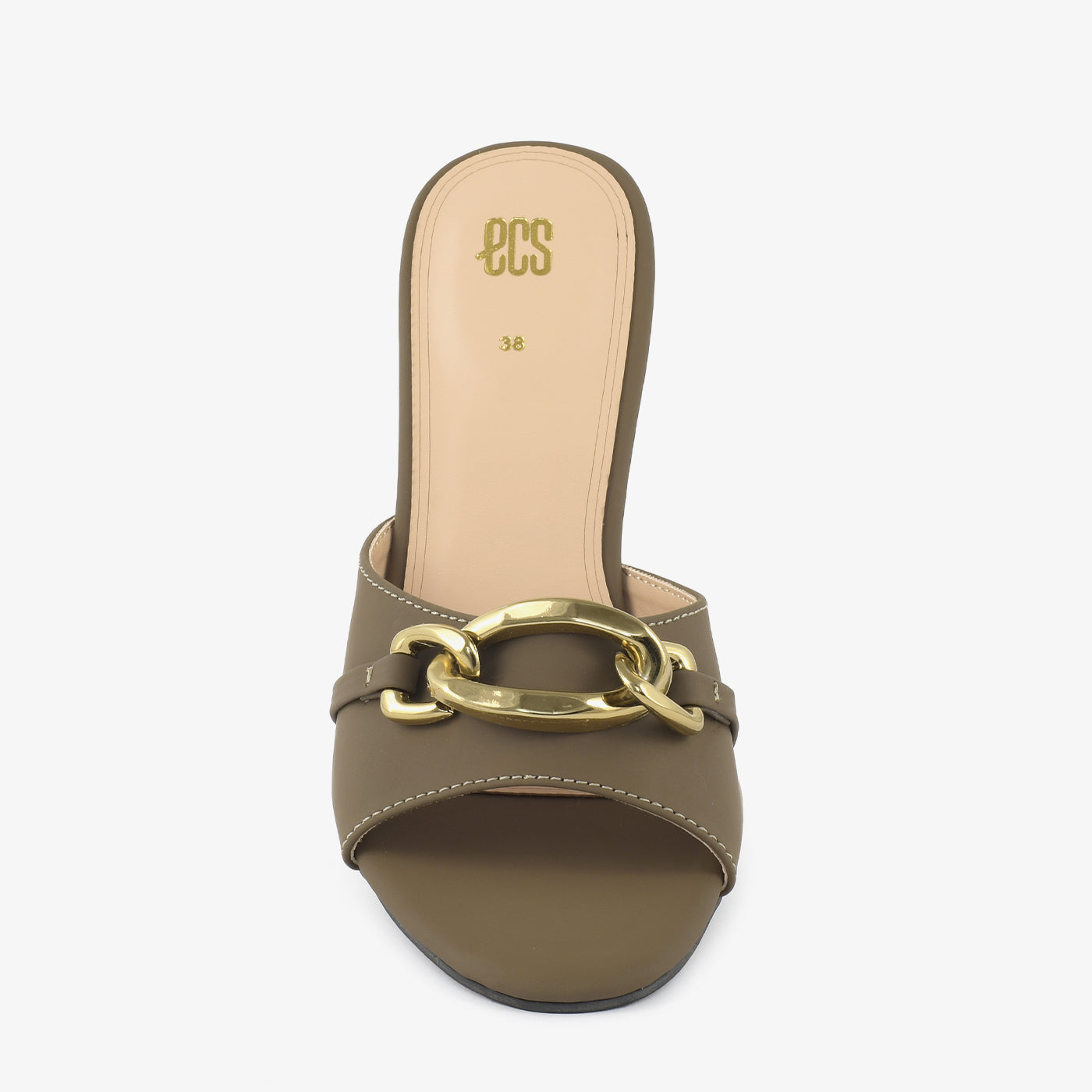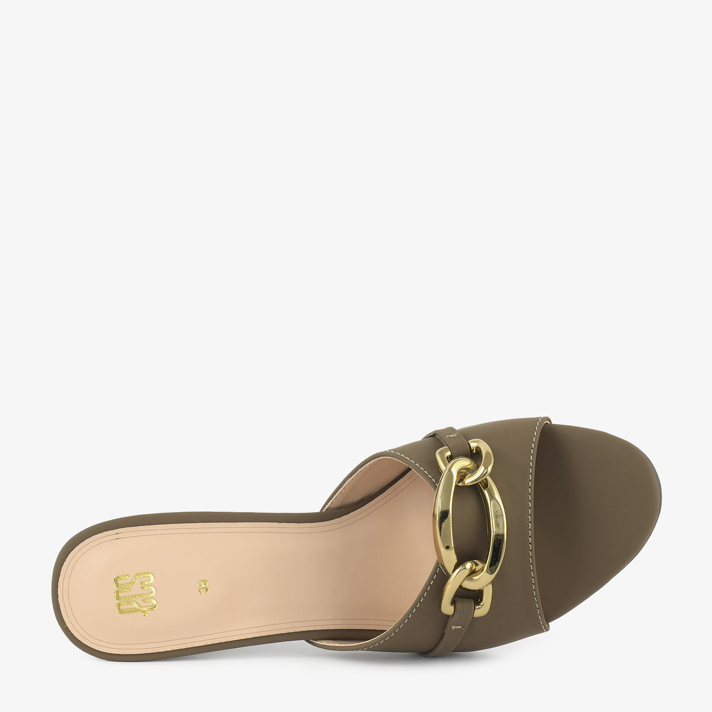 Step into dazzling elegance with the "Golden Glam" mules. These stylish gold mules feature a comfortable high block heel and a chic chain embellishment. Perfect for adding a touch of glamour to your evening look.