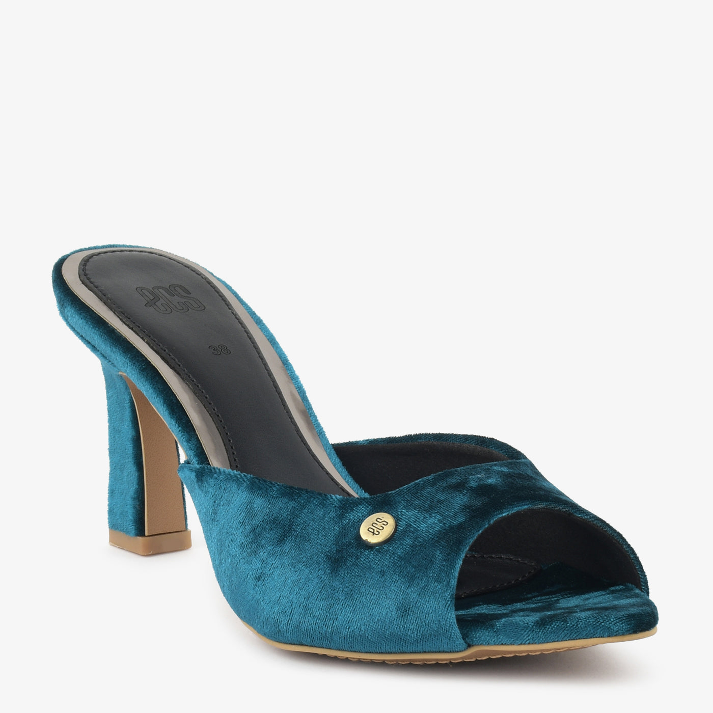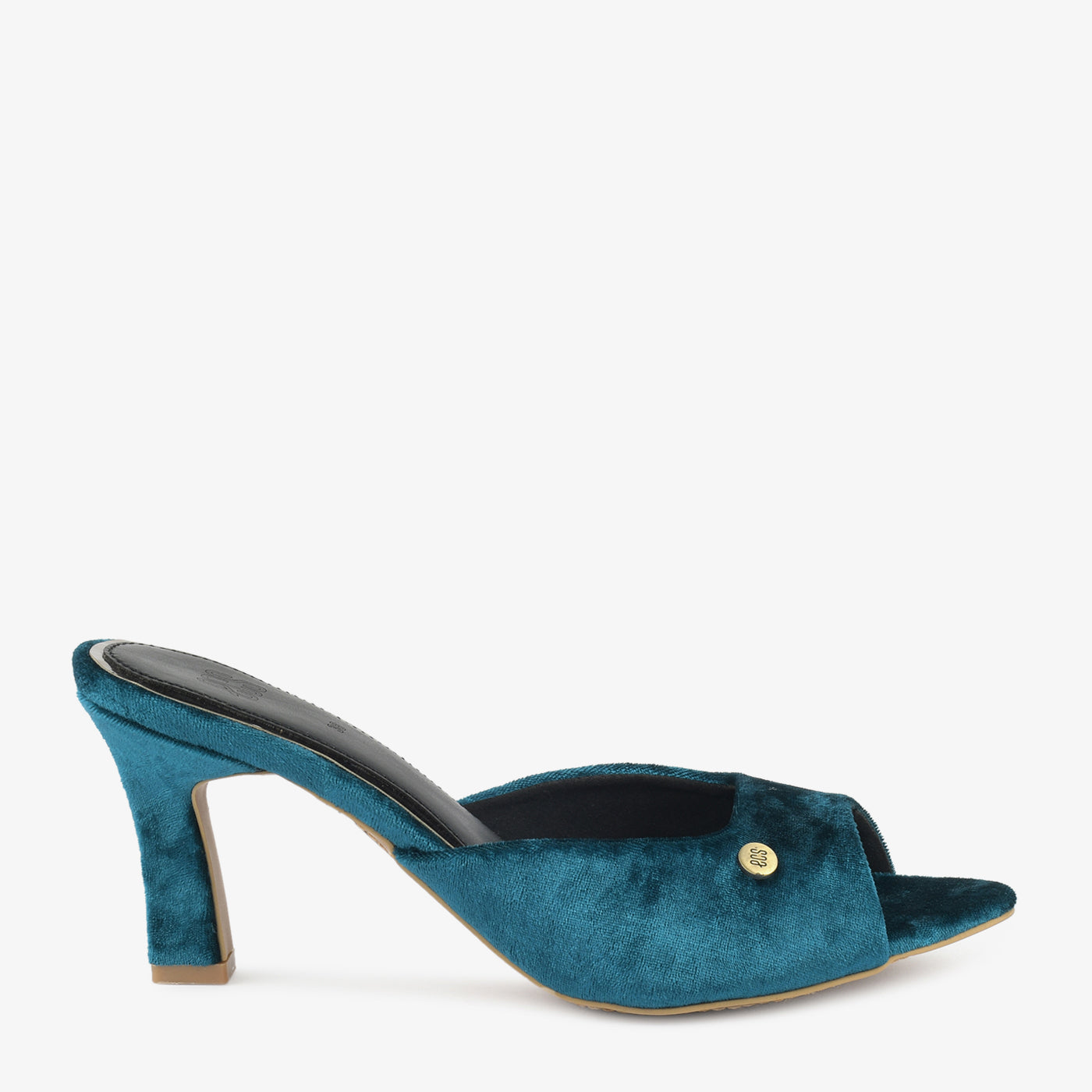 Step into luxurious style with these blue velvet mules. The rich texture and peep-toe design add a touch of sophisticated glamour to your evening look in Lahore. The high heel provides an elegant lift for special occasions.