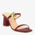 This statement heel features a rich maroon upper paired with an elegant gold-tone knot detail that adds a luxurious touch. The sleek open-toe design is balanced with slim front straps,...