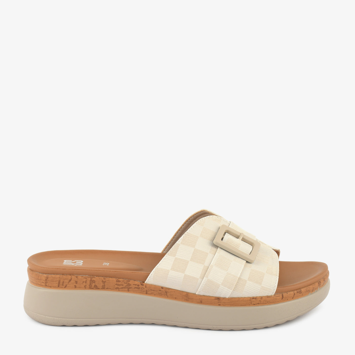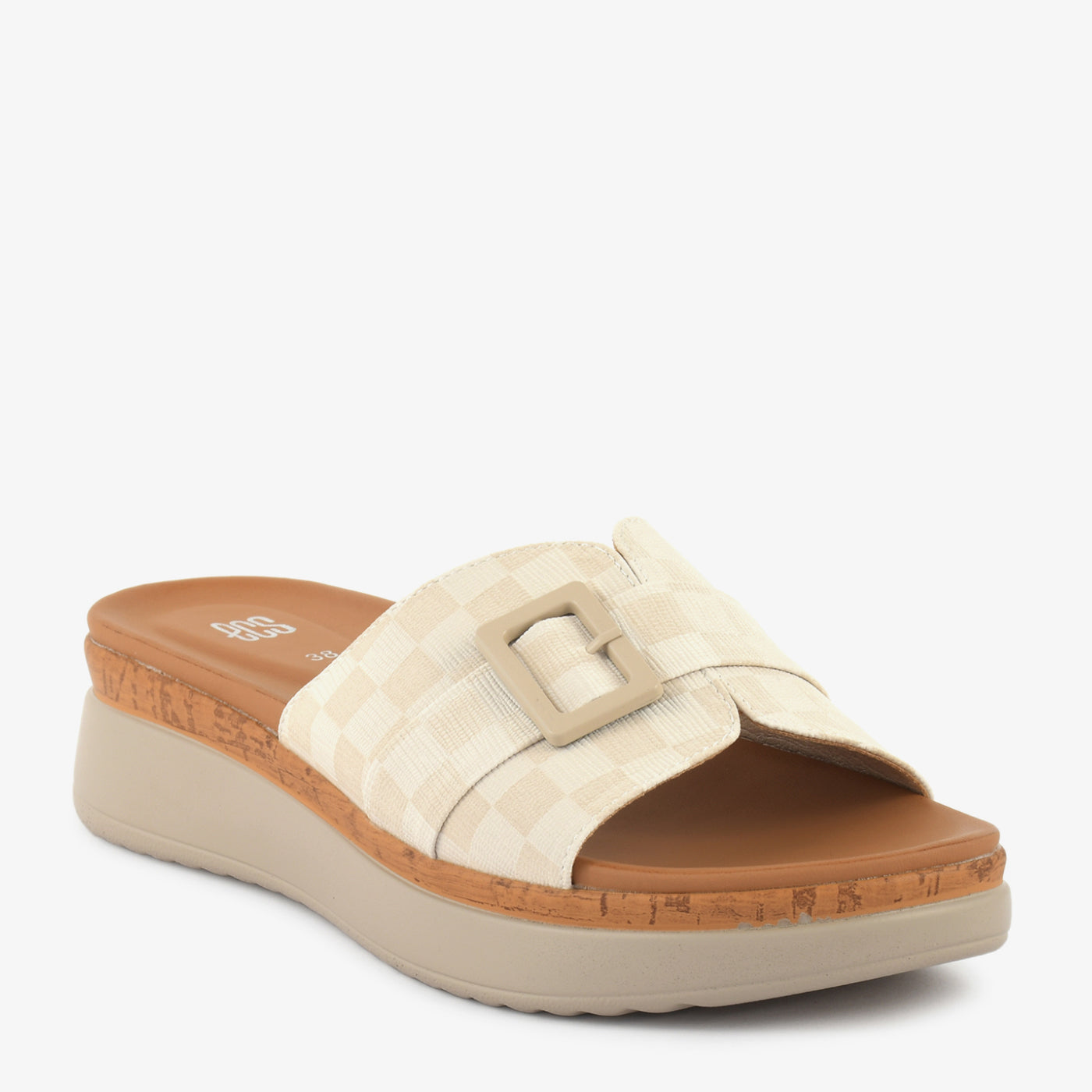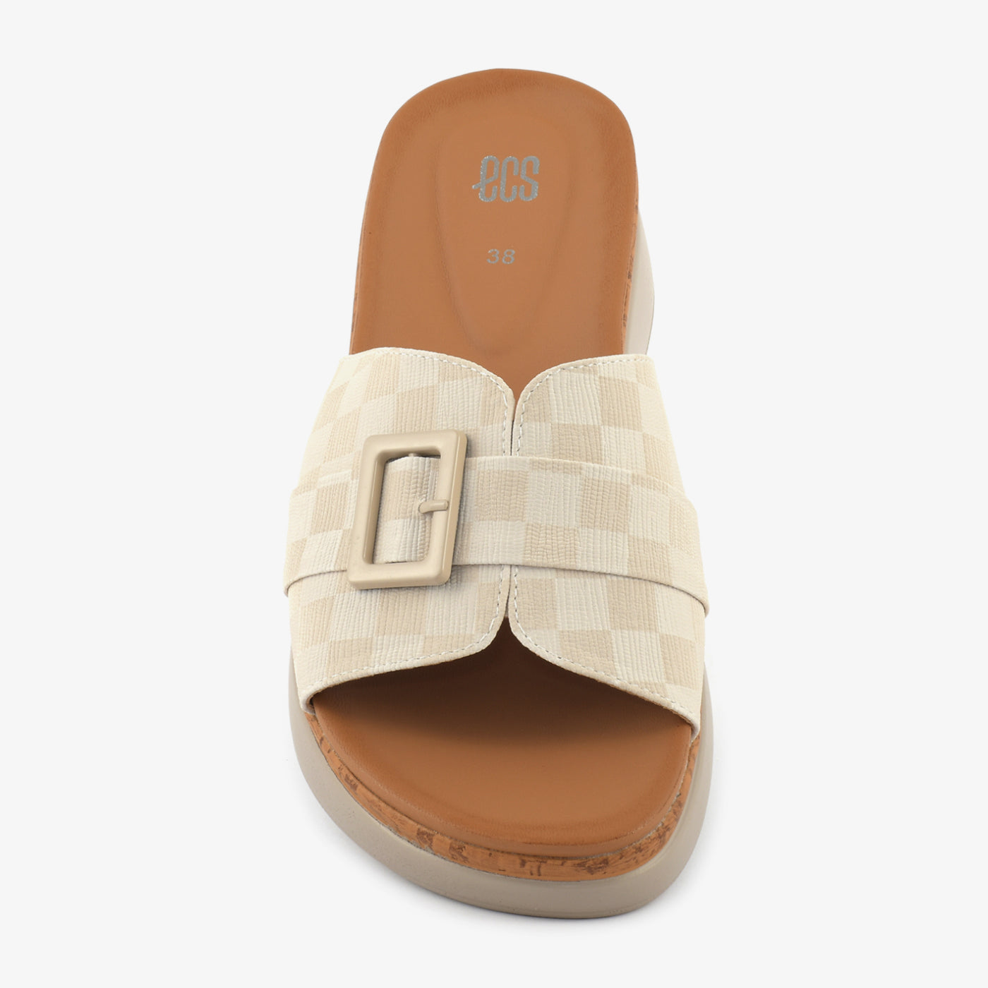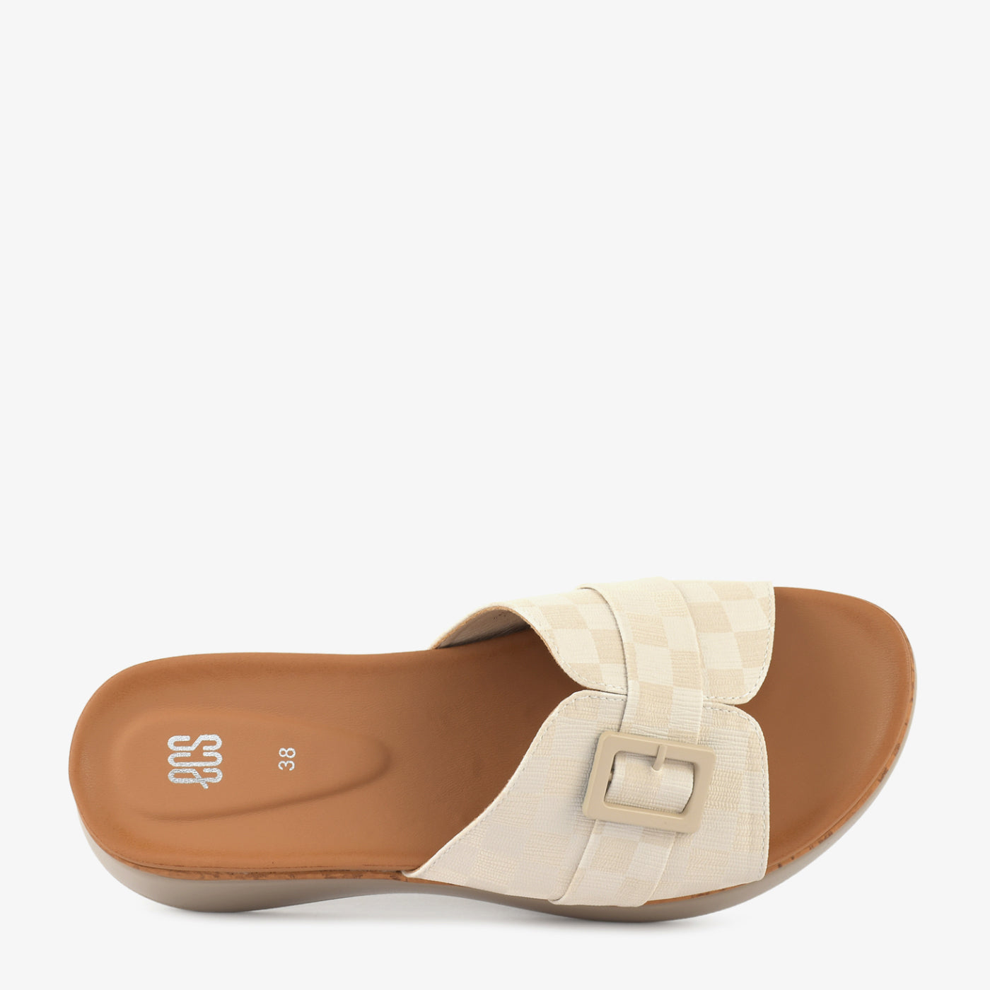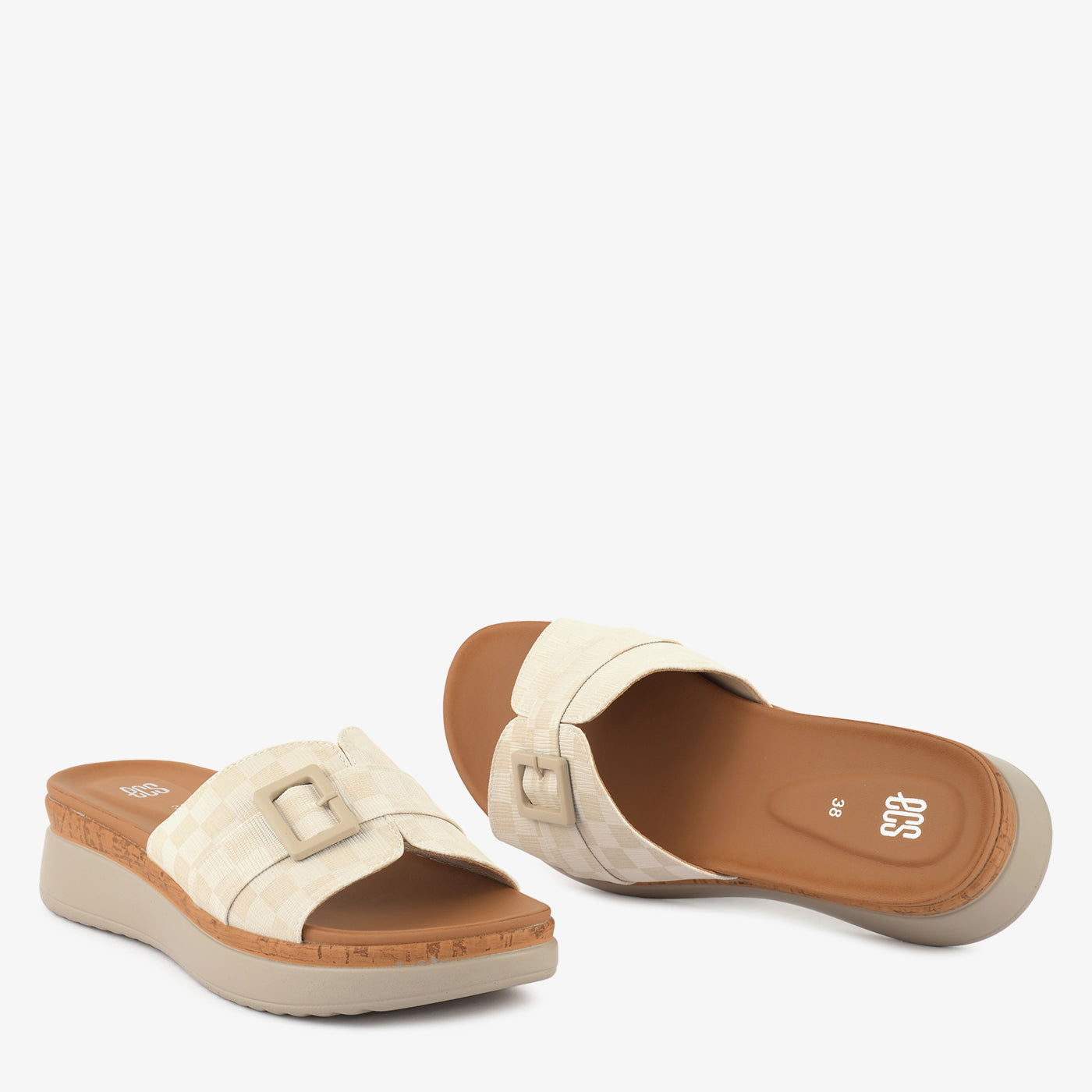 Embrace effortless style with these versatile beige wedges. The subtle textured strap and buckle detail add a touch of understated sophistication, perfect for completing a variety of looks.