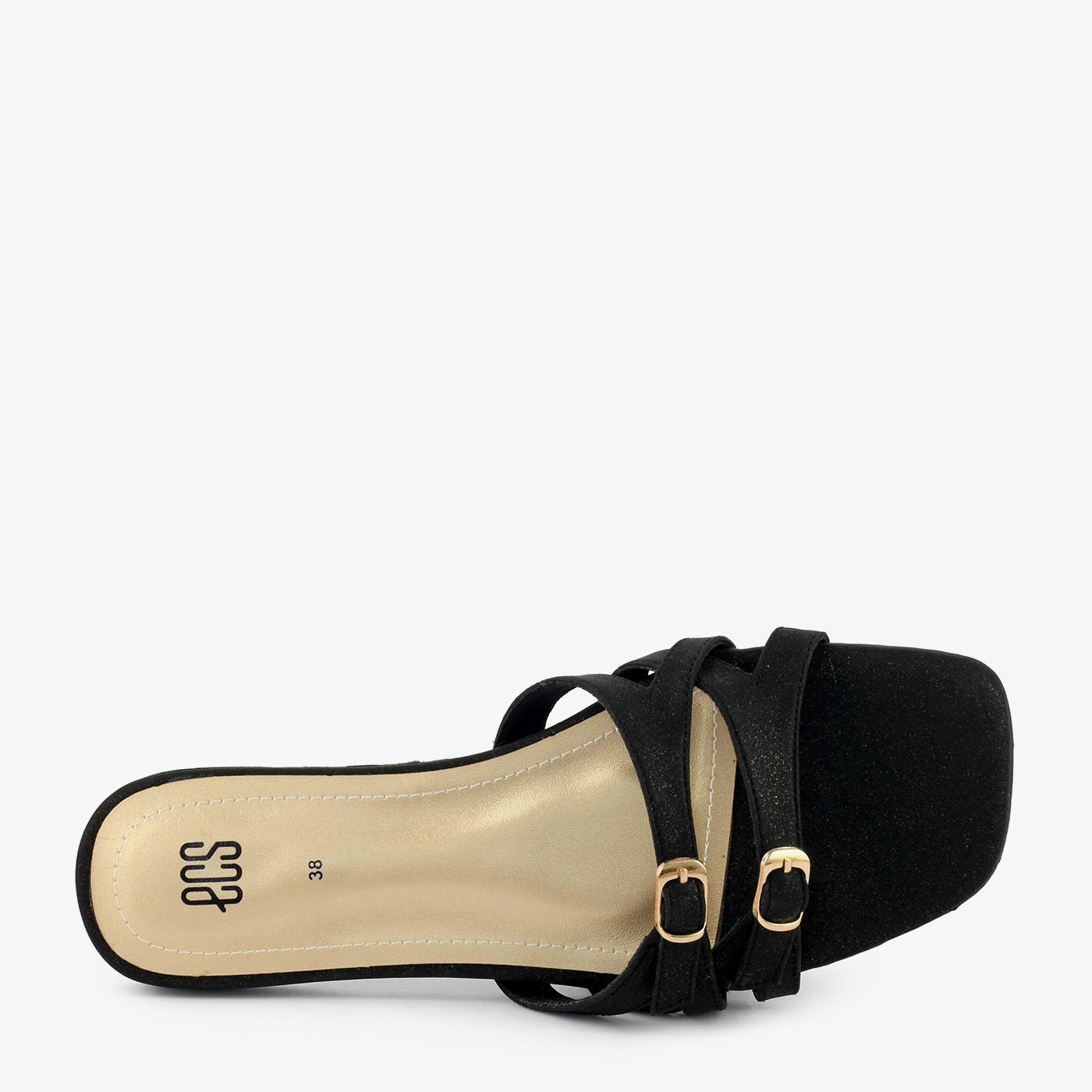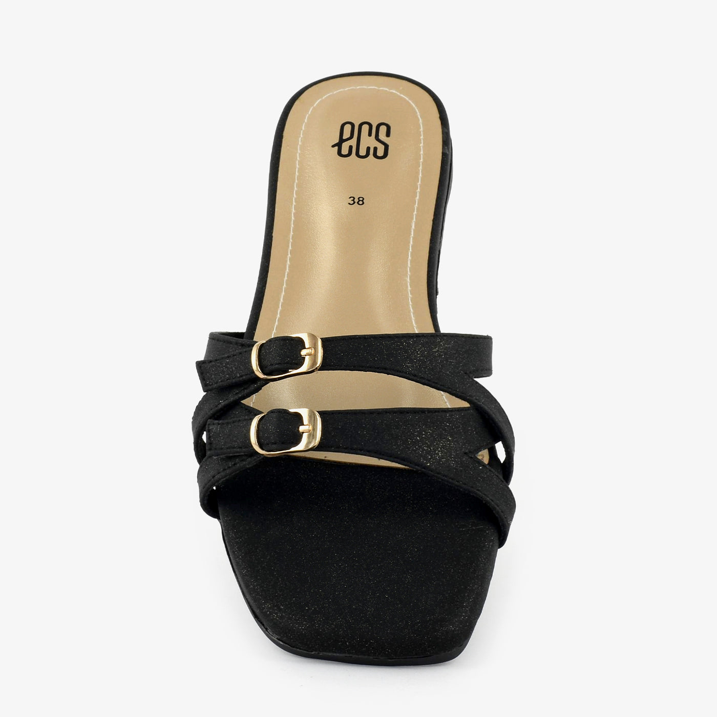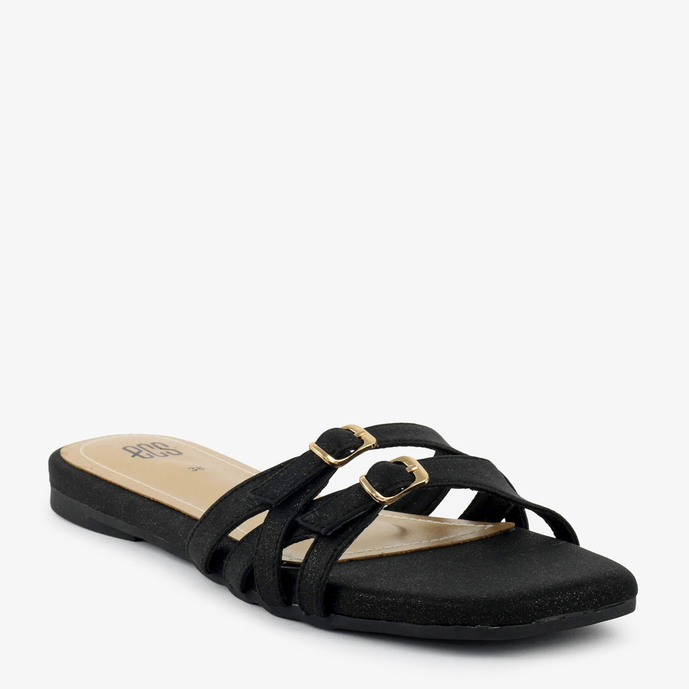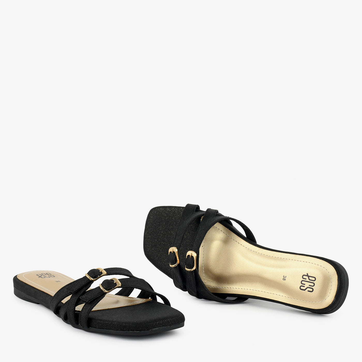 This refined slipper is styled with multiple slim straps finished with metallic buckle accents. The flat sole provides steady comfort while the structured design adds a polished touch. Easy to slip on and versatile in use, it works well for casual and semi-formal looks. A balanced mix of functionality and elegance.