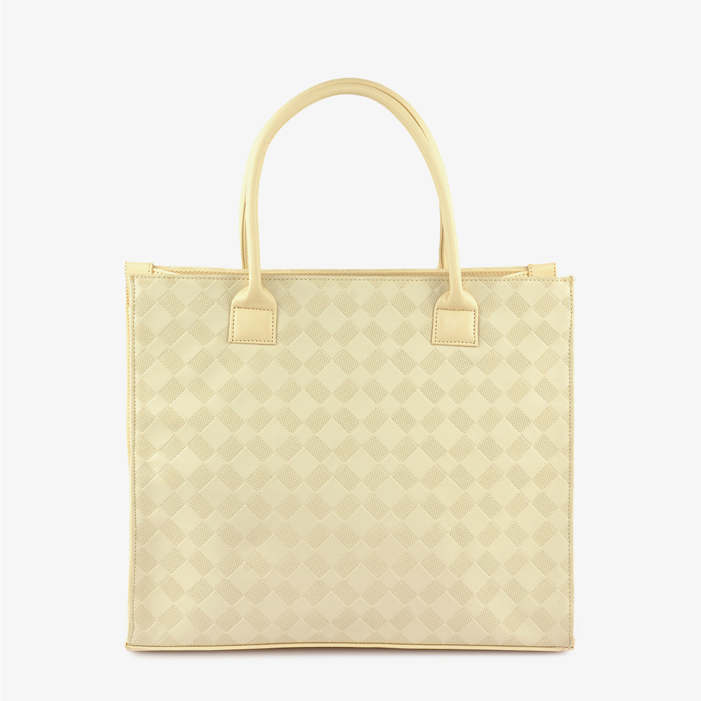 A timeless bag with a spacious shape and subtle check texture. Designed to carry your essentials with ease while adding elegance to everyday looks.