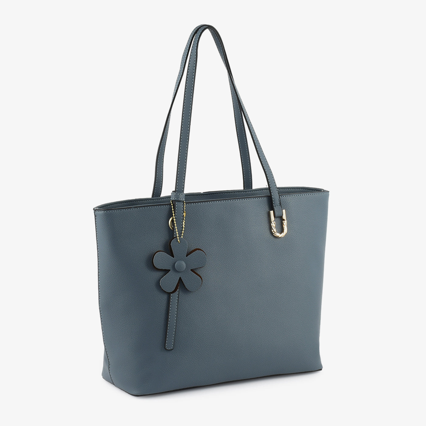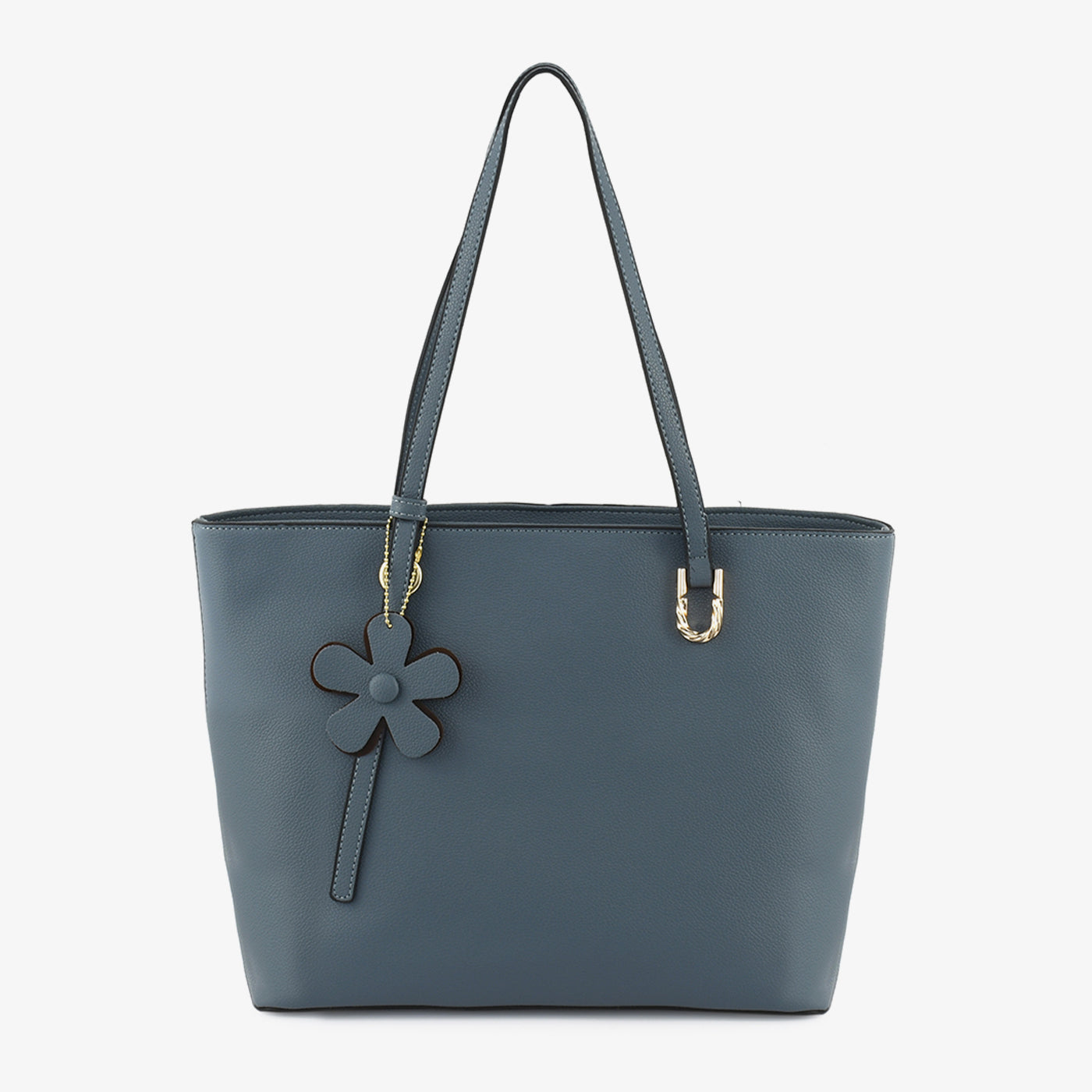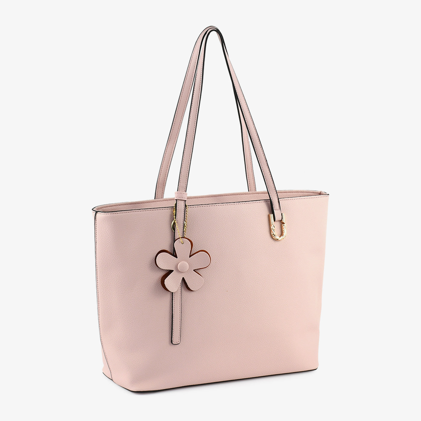 A minimal tote that balances simplicity with refined elegance. The subtle floral charm adds a playful touch to its structured body, while the gold hardware enhances its polished appeal. Spacious and durable, it’s ideal for both office wear and casual outings.