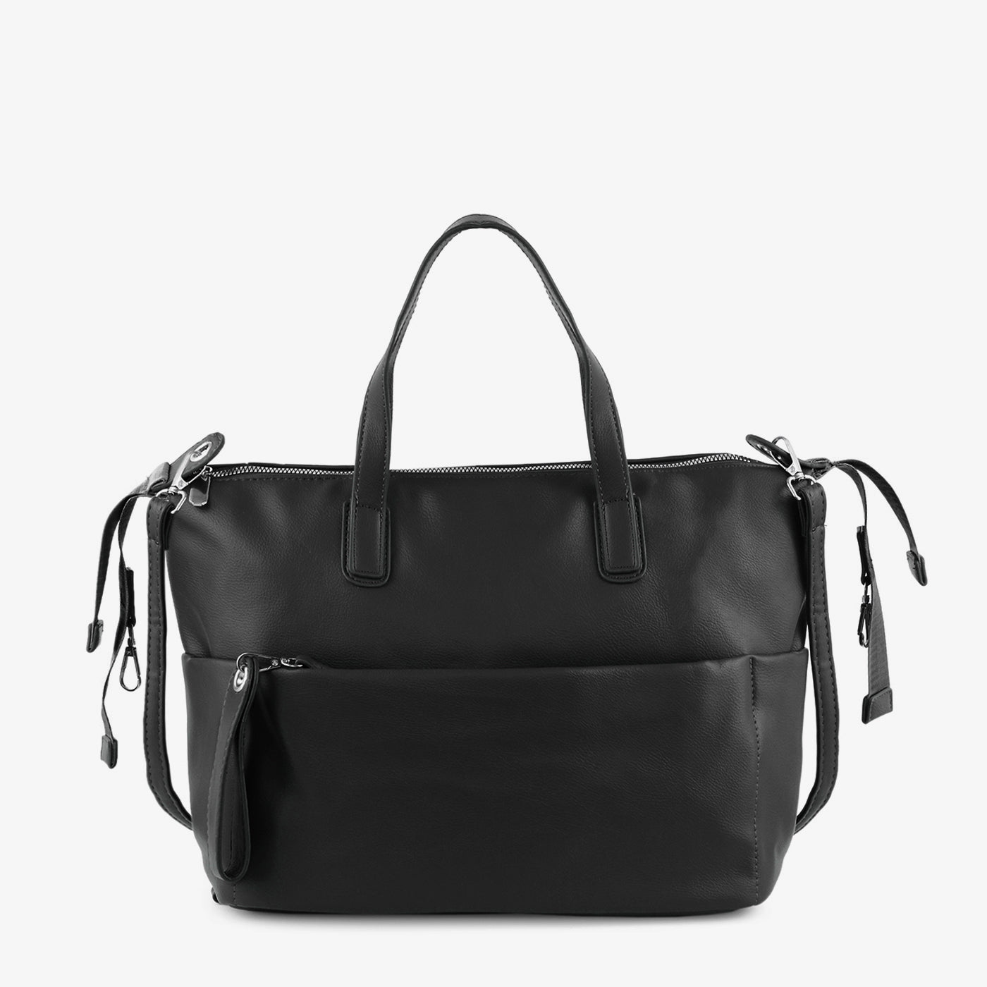 A stylish yet functional shoulder bag crafted for women who need extra room without compromising on sophistication. The large compartment and front pocket offer organized storage, while the structured design enhances durability. Its modern silhouette and metallic hardware give it a contemporary finish, perfect for travel, office, or daily commutes. Multiple straps allow flexible styling throughout the day.