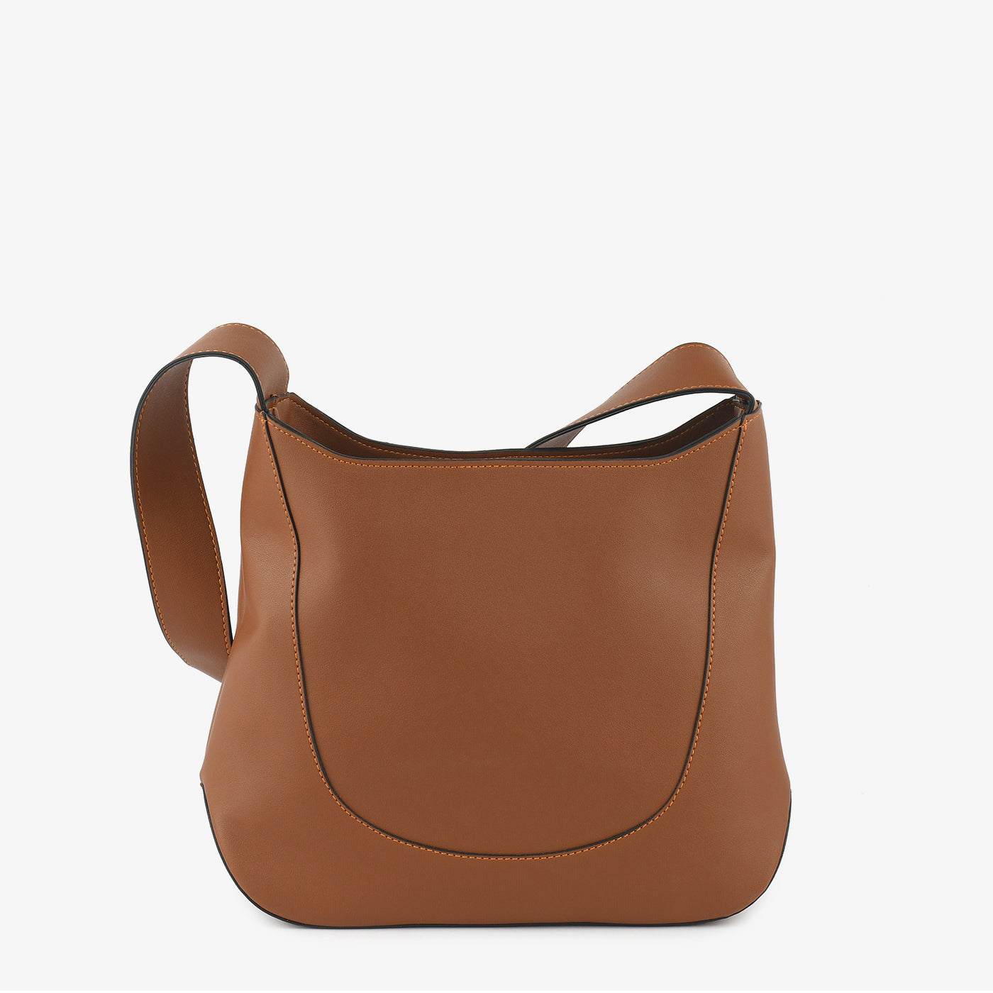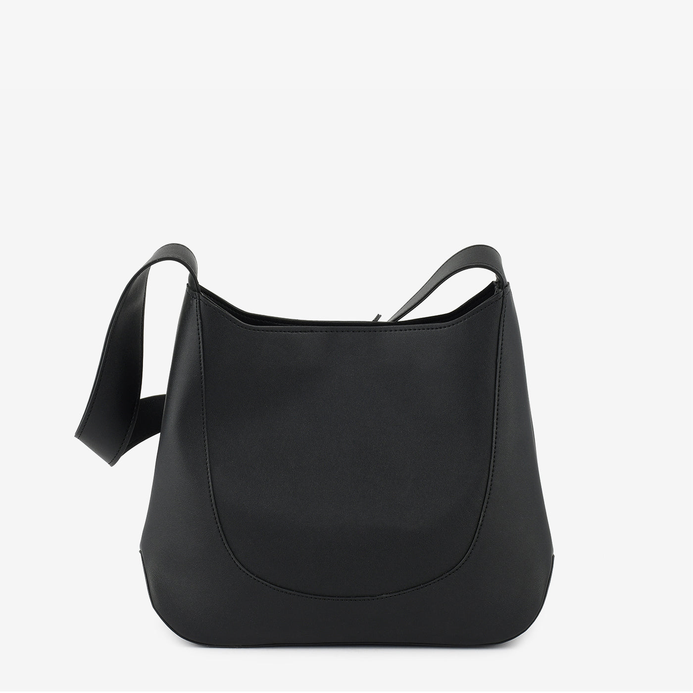 Spacious and everyday-ready, this large structured open-top hobo bag features a pebbled leather-finish exterior with a clean curved panel seam that runs along the front and base, giving the bag...