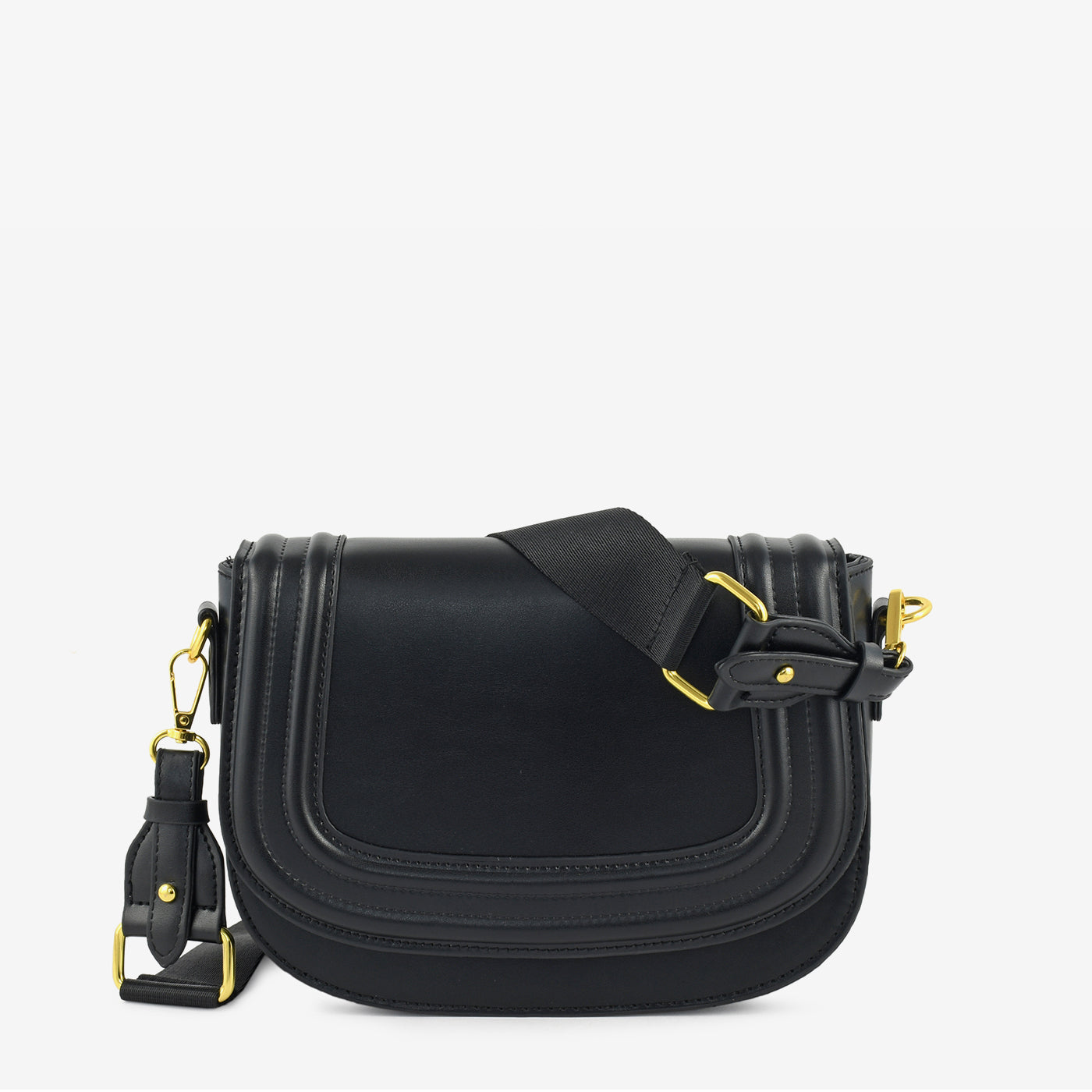 • Design: Flap-style shoulder bag with stitched borders and adjustable strap
