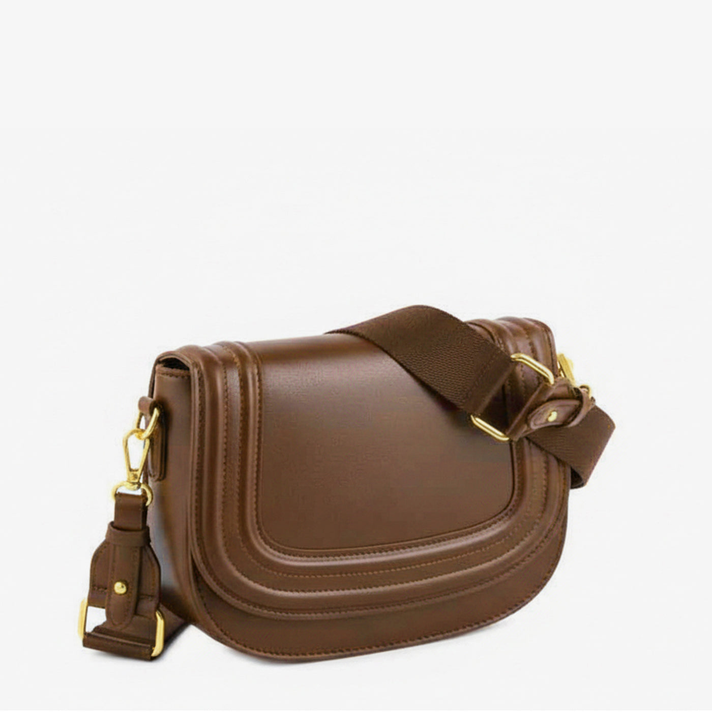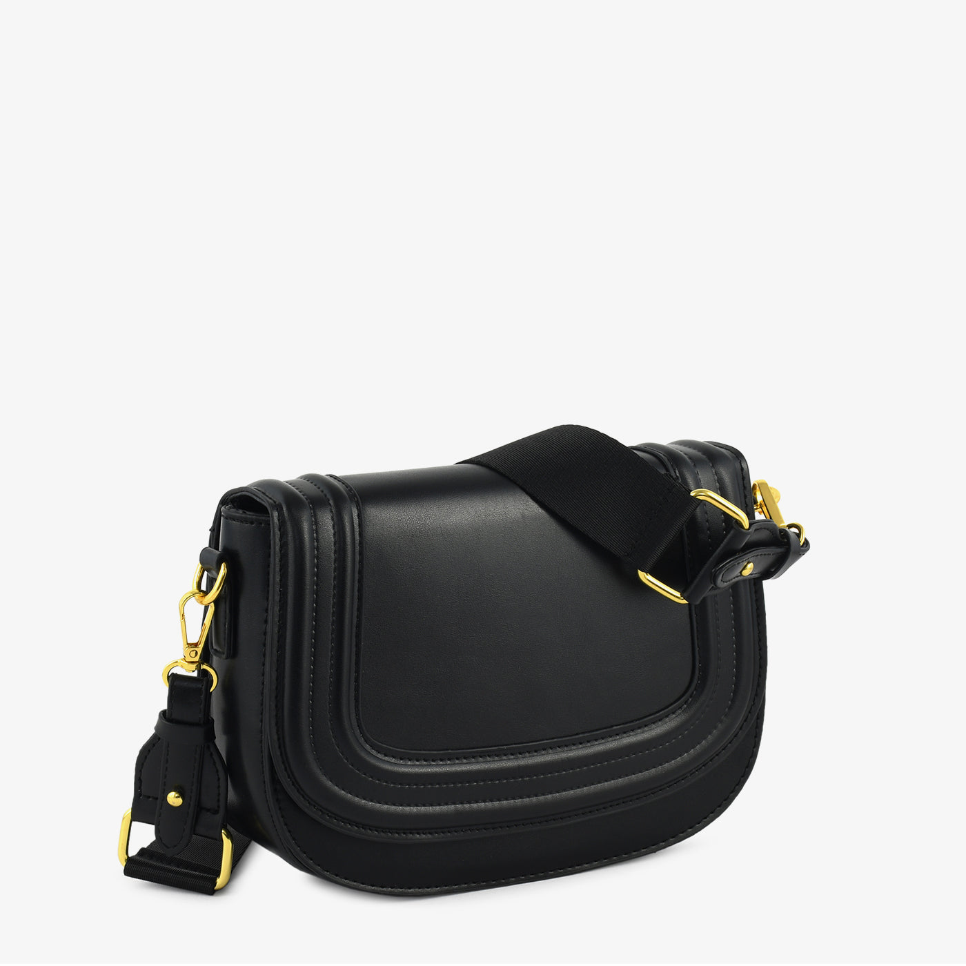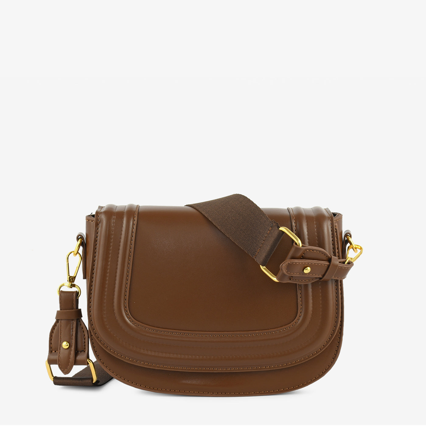 This elegantly designed shoulder bag features a sleek flap-front silhouette with fine stitched detailing for a polished and modern look. The spacious main compartment offers ample room for daily essentials, while the smooth inner lining ensures organized storage. An adjustable fabric strap with sturdy metal fittings provides comfortable crossbody and shoulder wear options. Lightweight yet durable, this bag is ideal for everyday use, office wear, and casual outings.