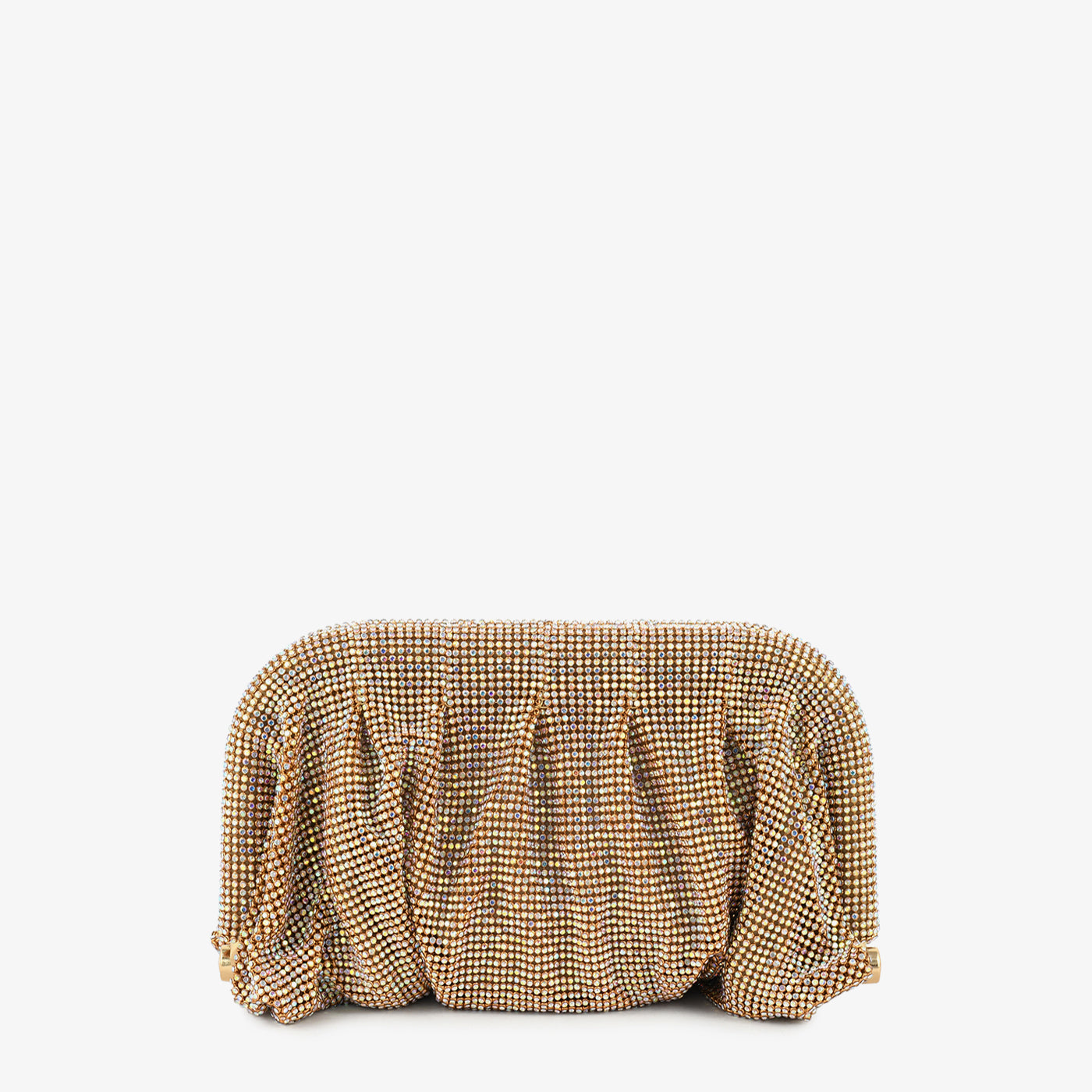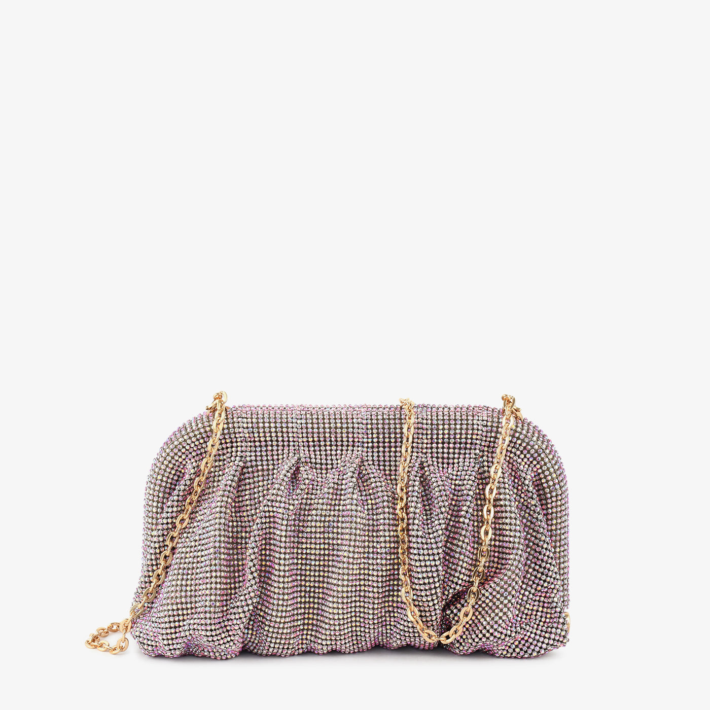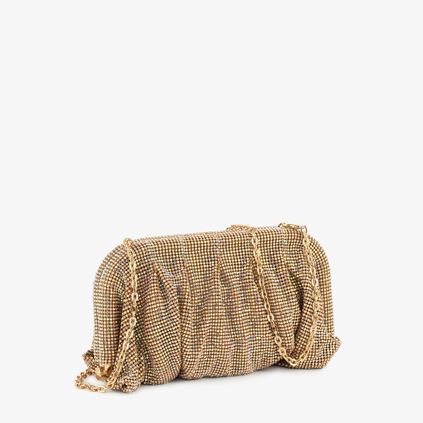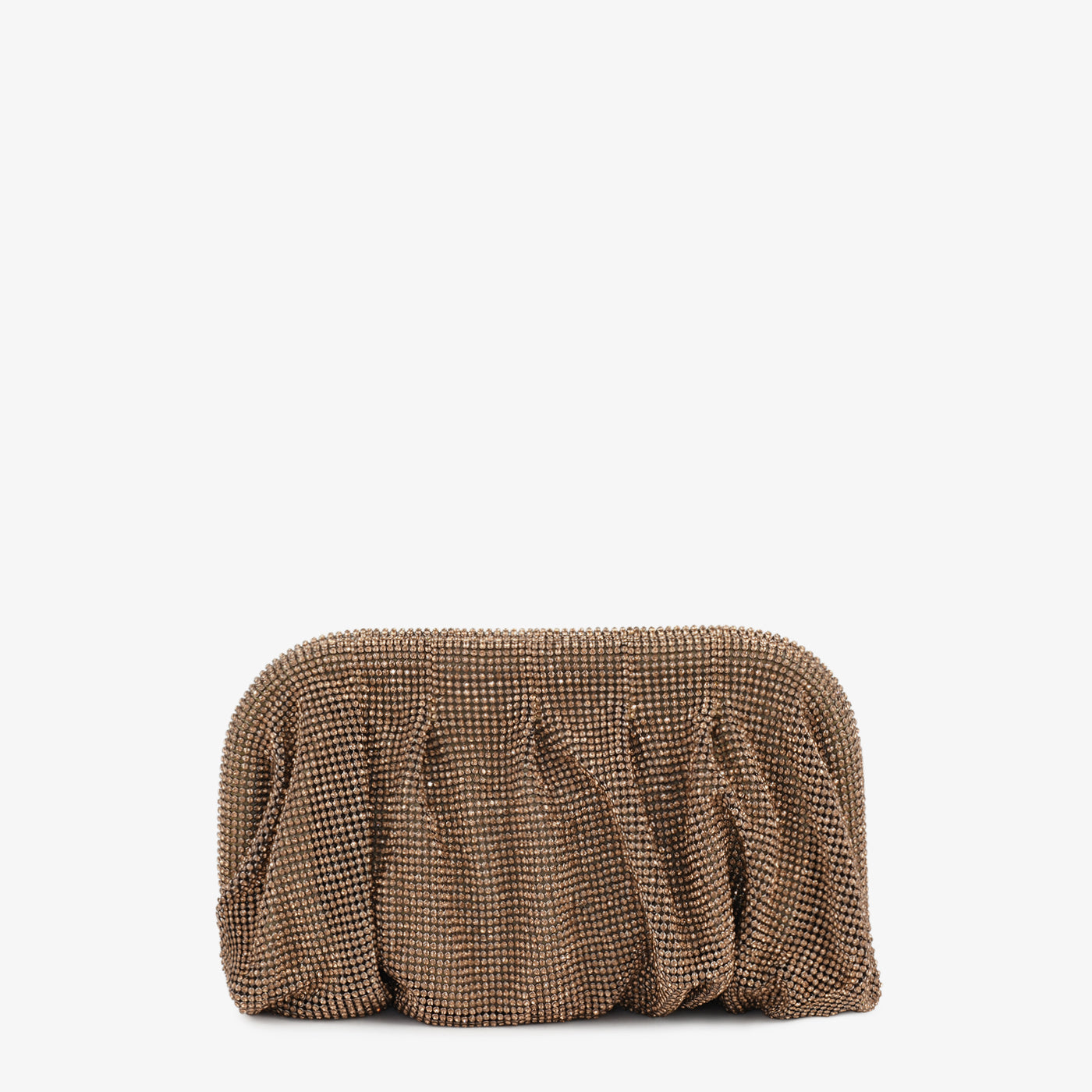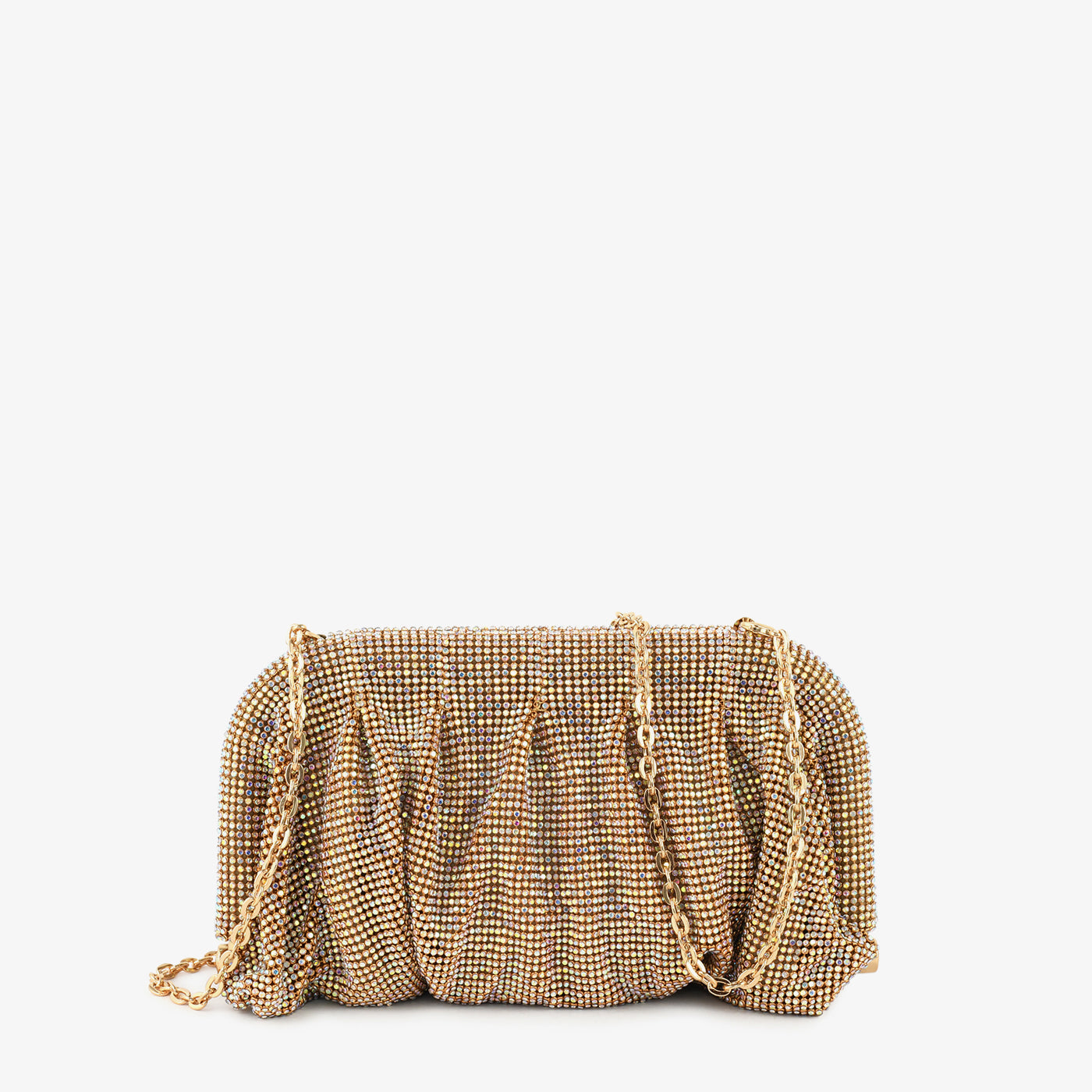 This ruched clutch with a delicate chain strap brings together timeless grace and modern sparkle. Its fluid design and shimmering finish make it a versatile piece for both evening gatherings and formal dinners.