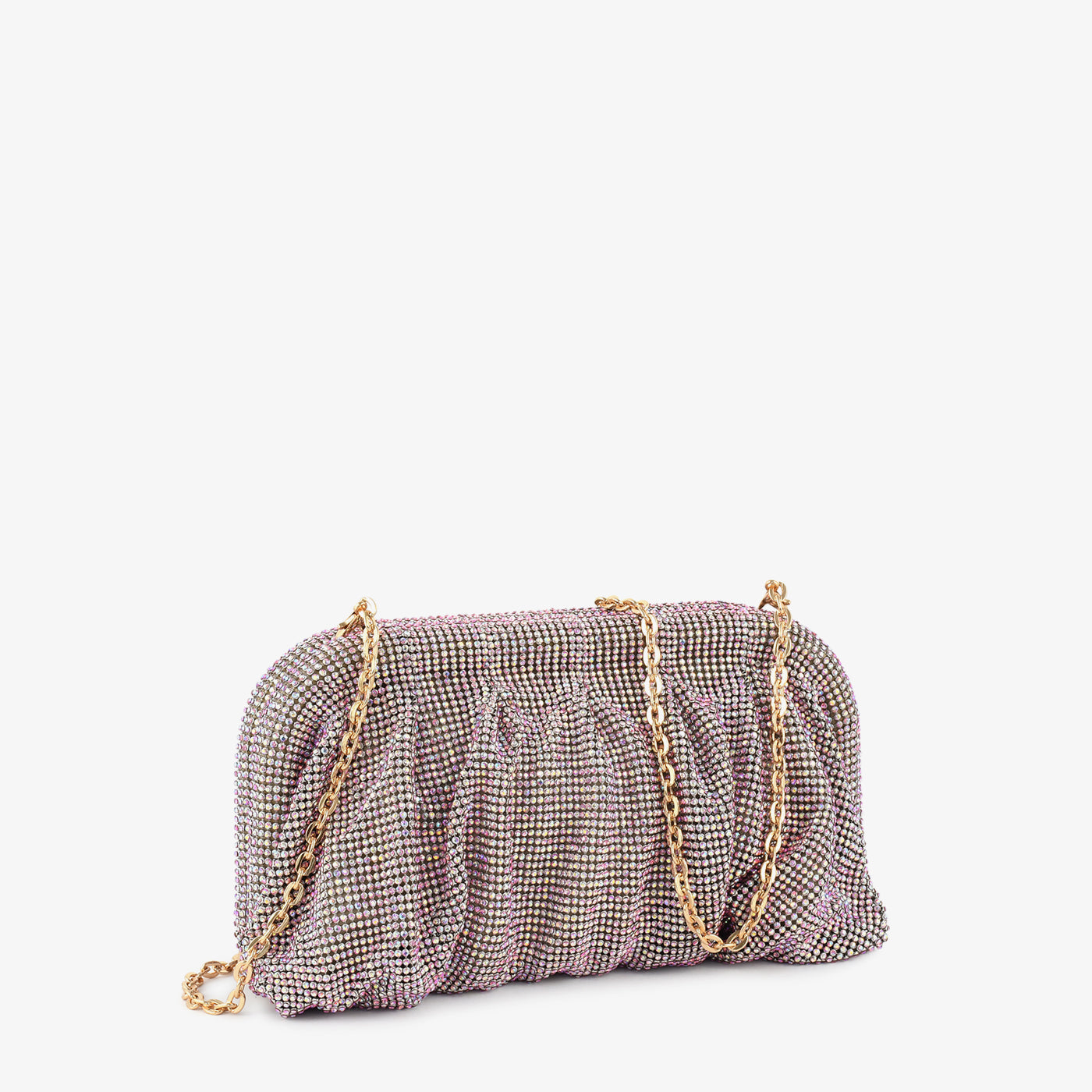 This ruched clutch with a delicate chain strap brings together timeless grace and modern sparkle. Its fluid design and shimmering finish make it a versatile piece for both...