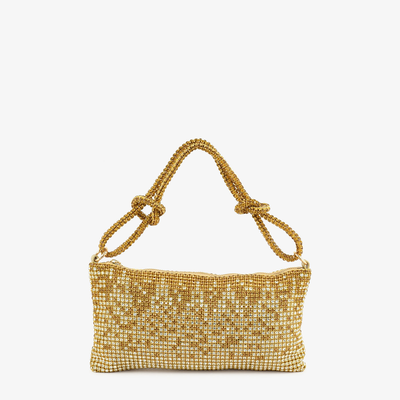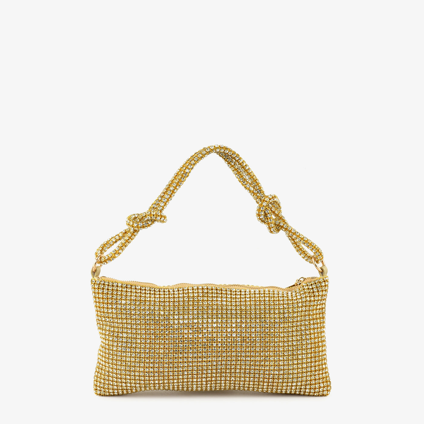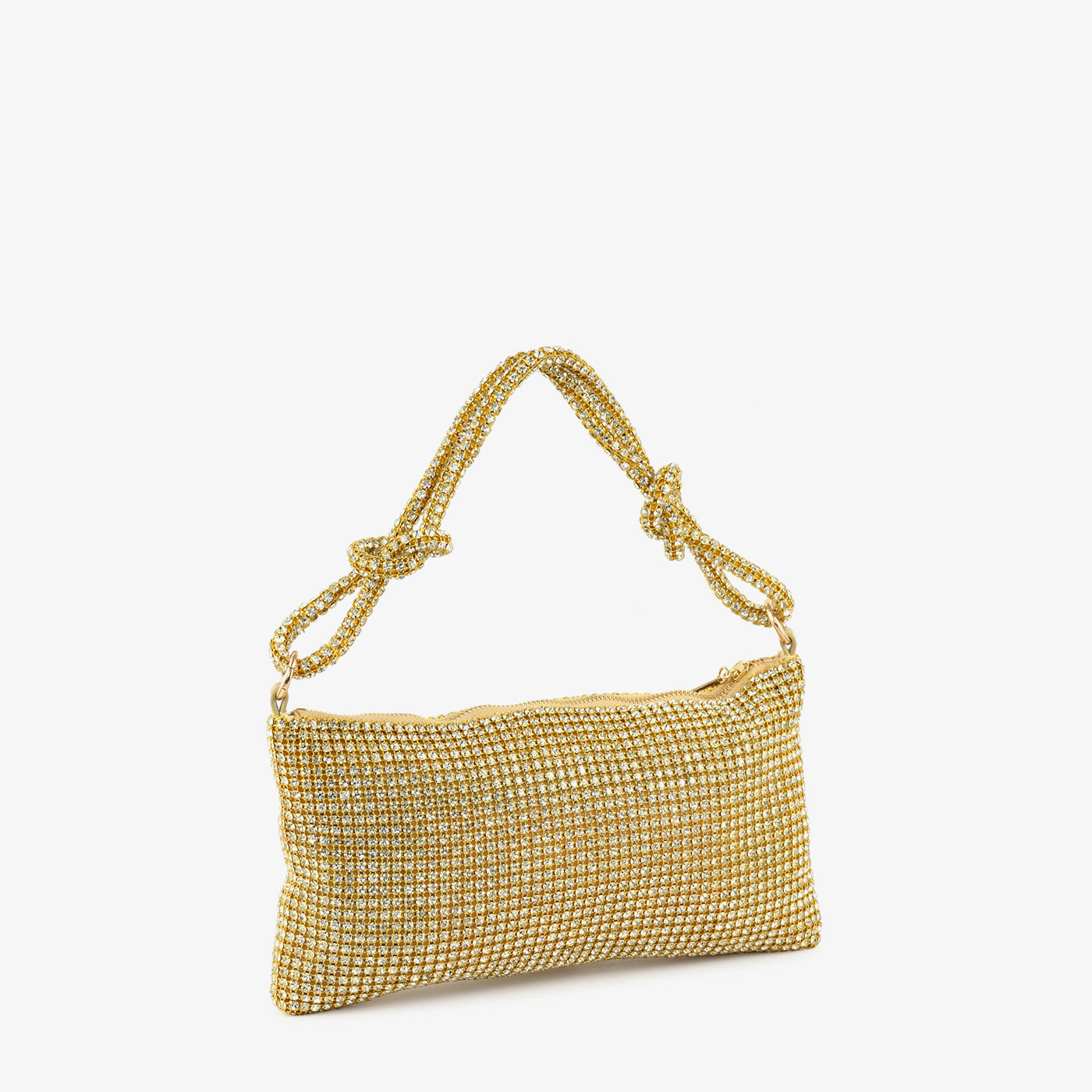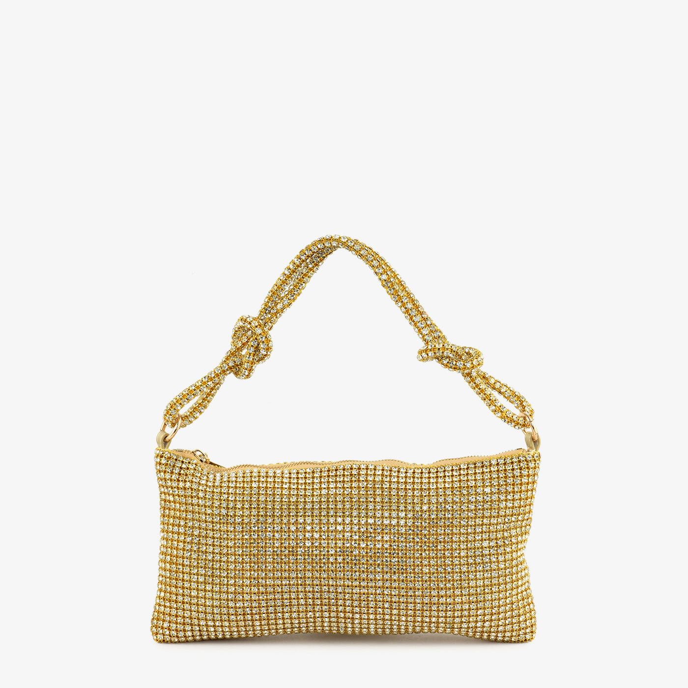 Shoulder bag with full crystal mesh covering and a distinctive knotted chain strap design. The rectangular silhouette offers practical storage for essentials during evening events. Crafted with a secure closure...
