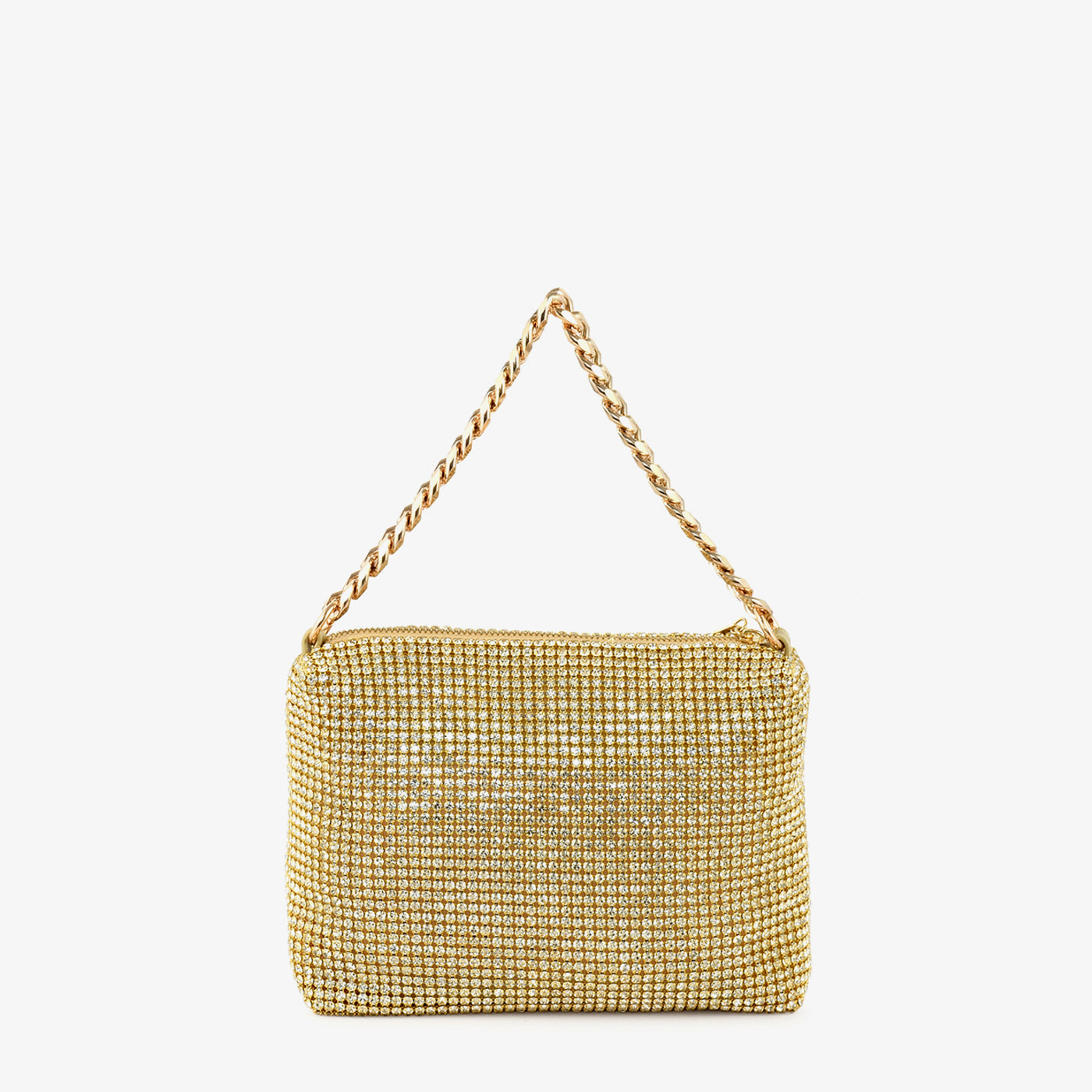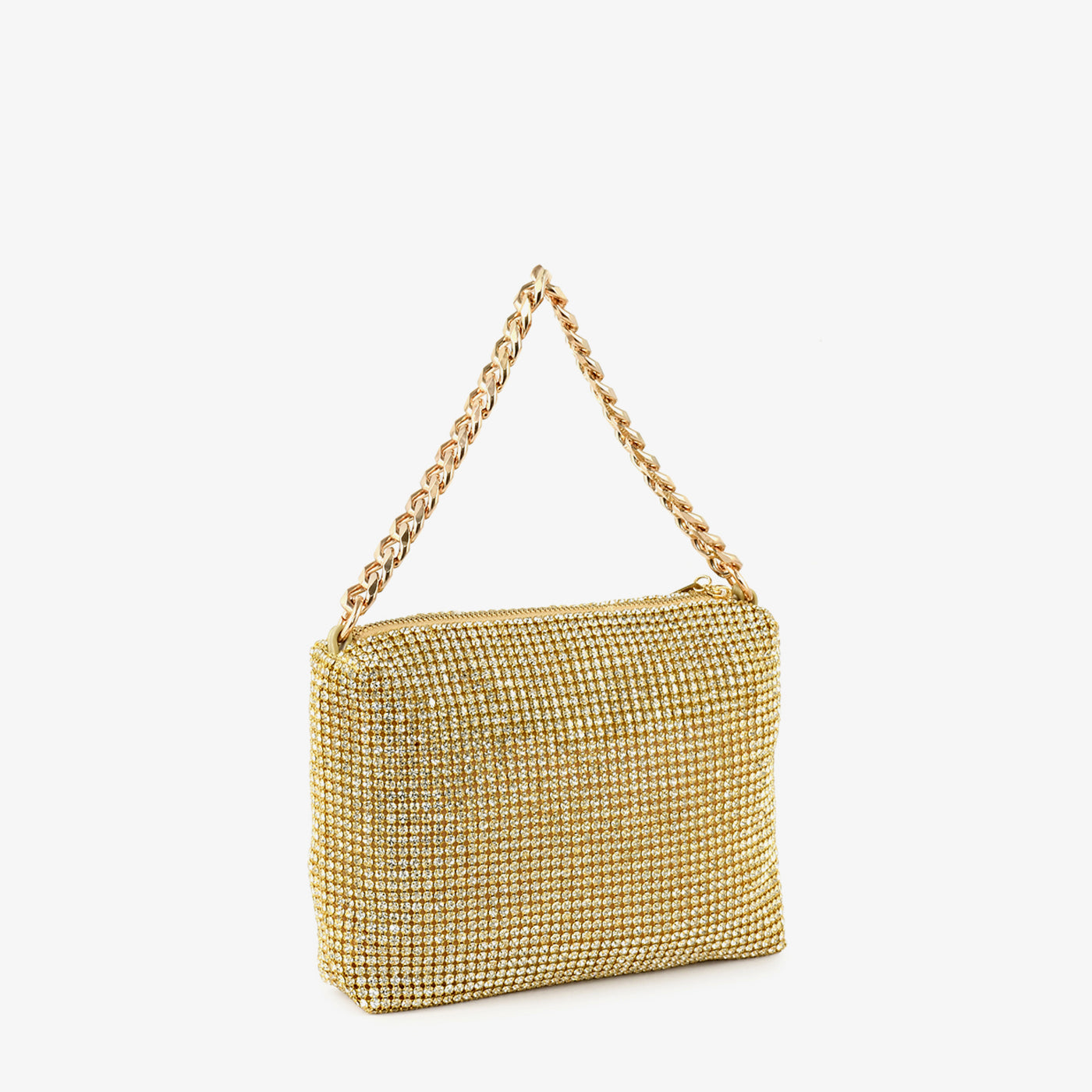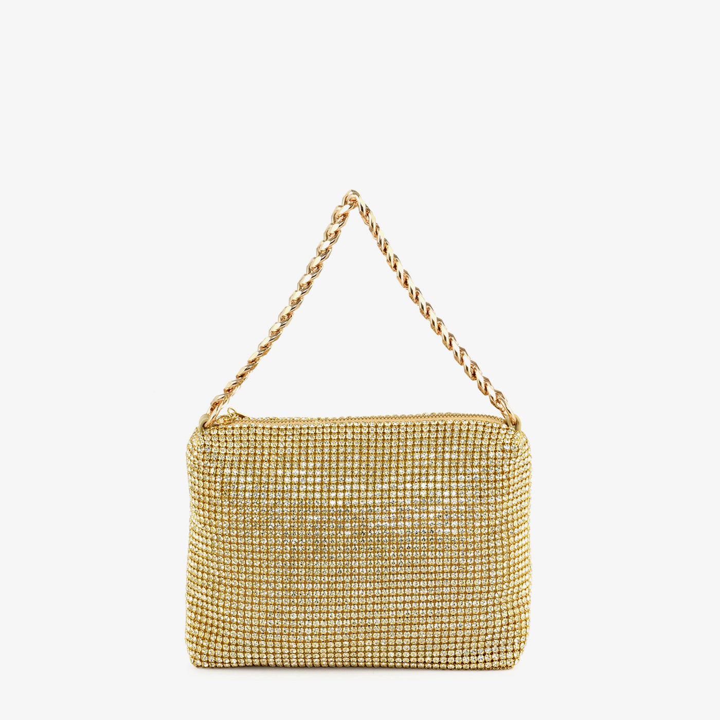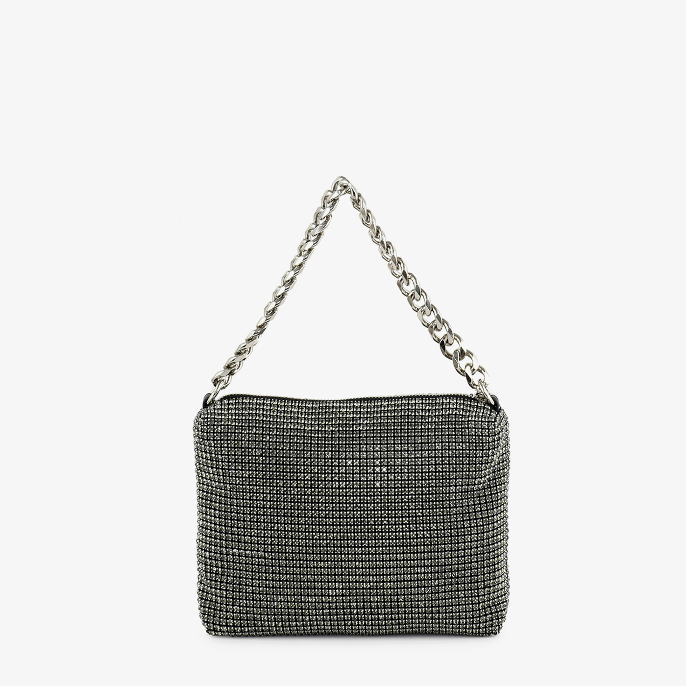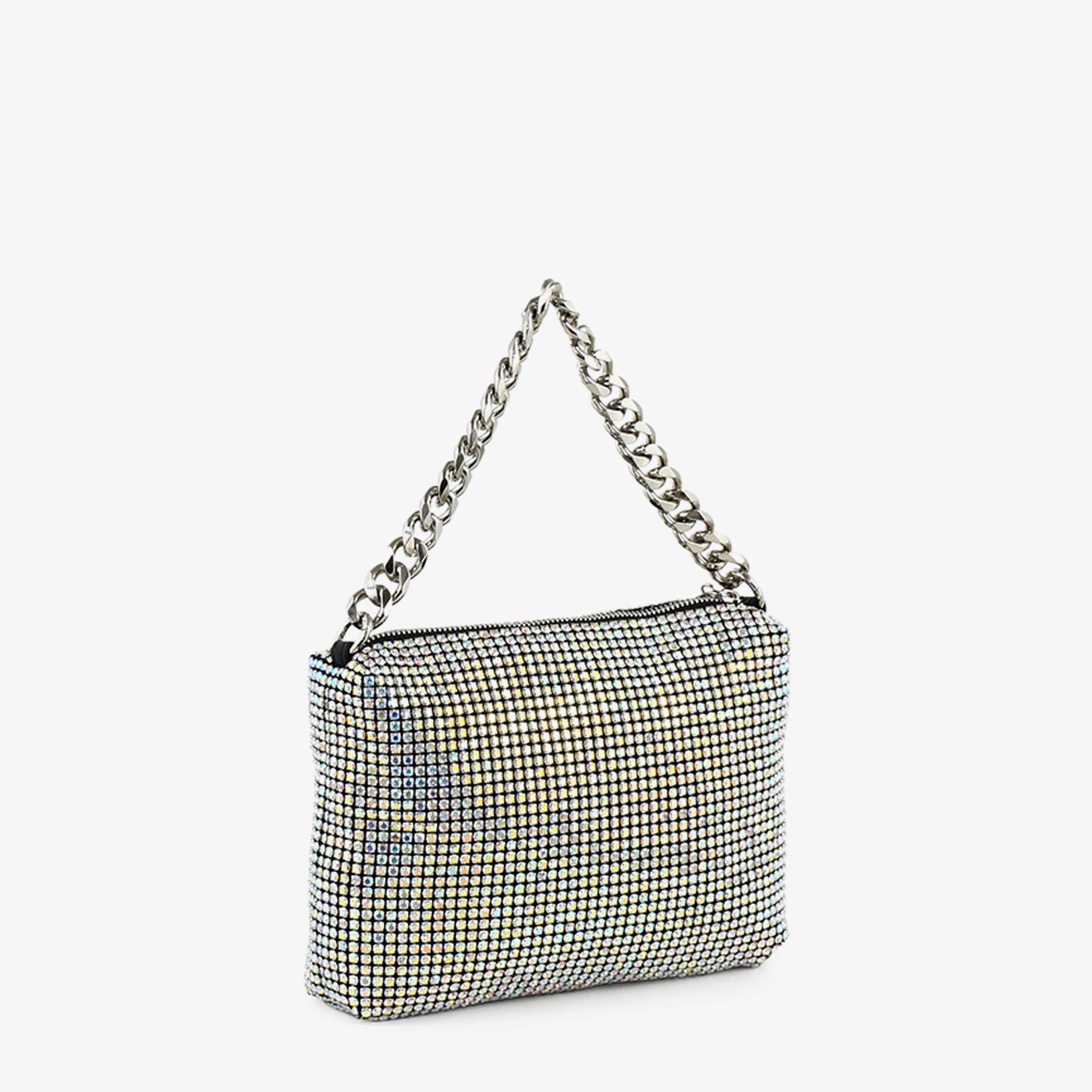 Shoulder bag with full crystal mesh covering that creates a textured, reflective surface. The chain strap offers versatile carrying options for both shoulder and crossbody wear. Crafted with a secure...