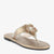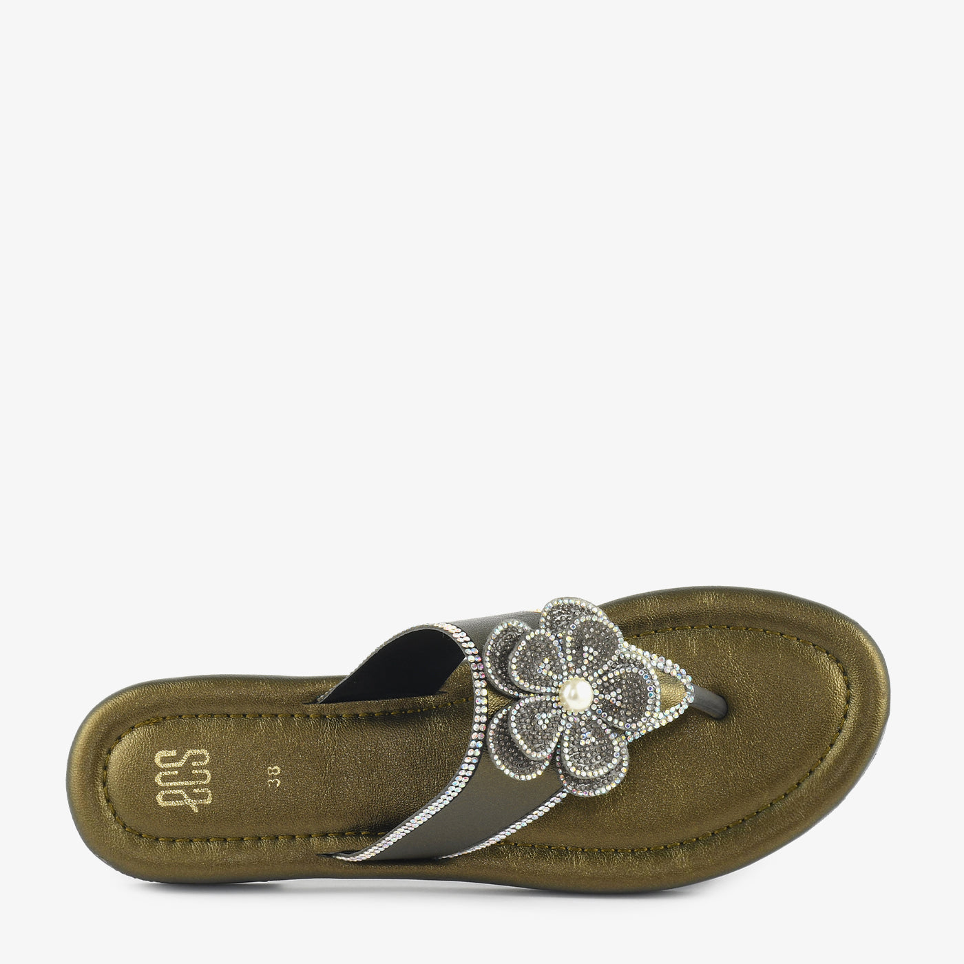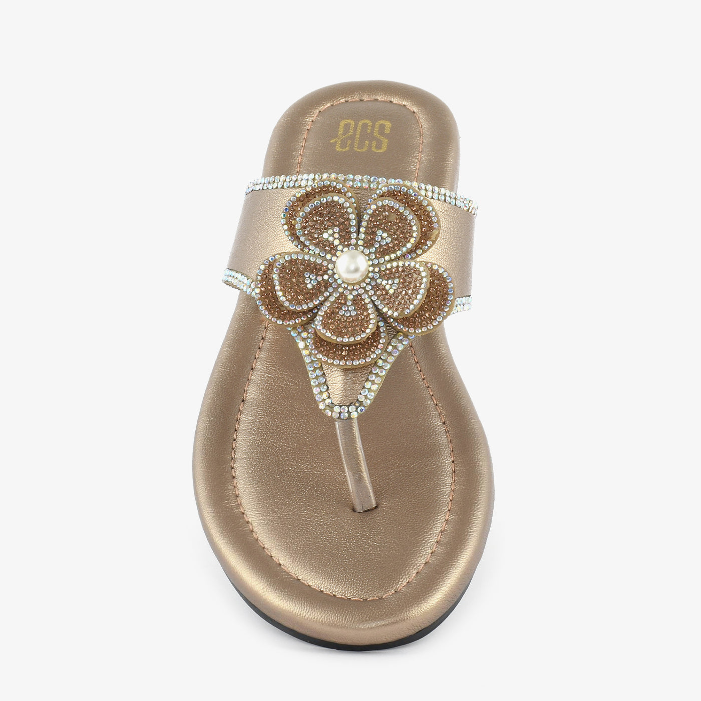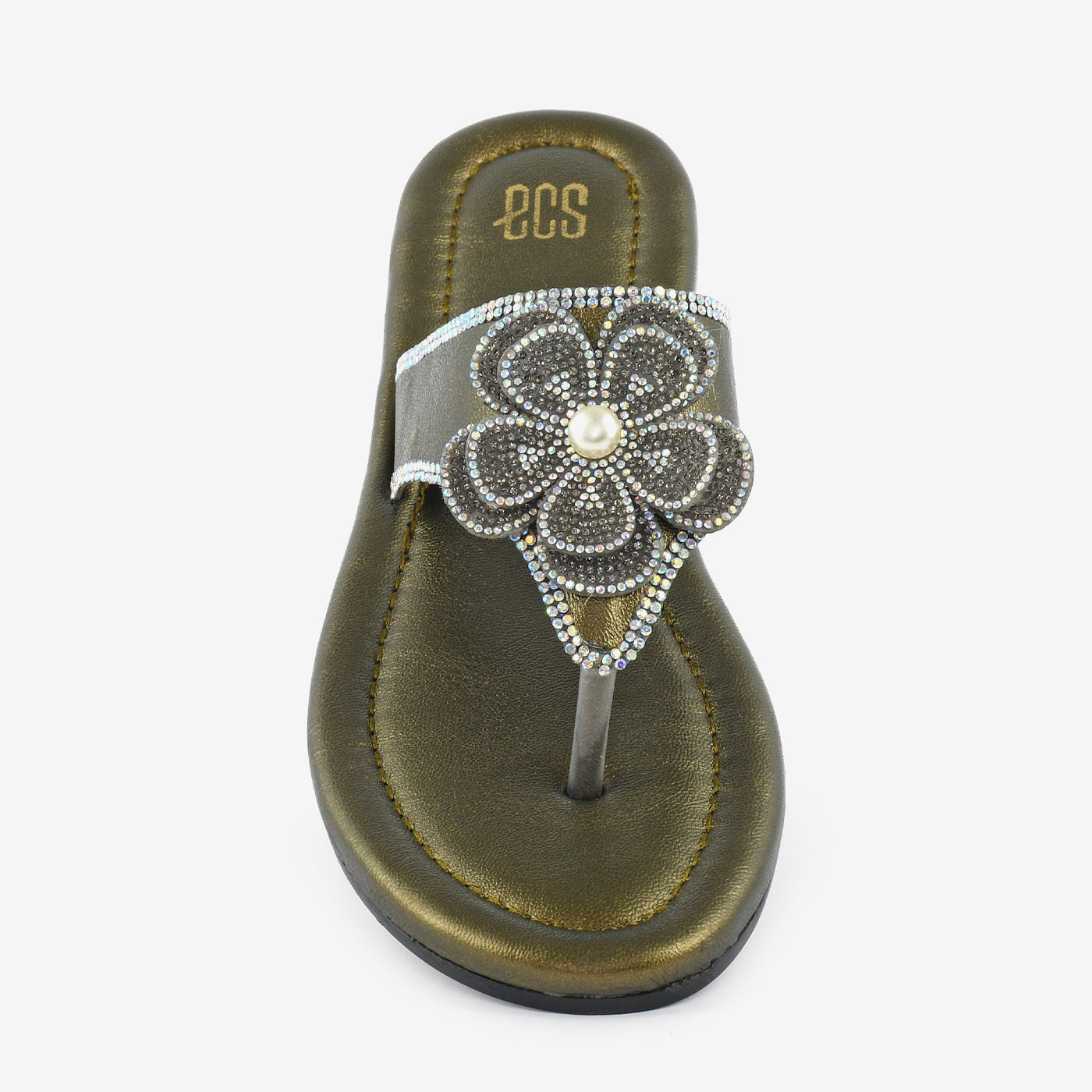 Crafted to elevate everyday elegance, this thong chappal blends comfort with refined detail. The softly cushioned footbed ensures lasting ease, while the smooth flat sole provides stable support for all-day wear. A beautifully embellished floral accent sits gracefully on the upper strap, highlighted with delicate crystal detailing for a luminous finish. The lightweight construction enhances flexibility and comfort with every step. Designed to complement both casual and dressy looks, this chappal transitions effortlessly from day outings to special gatherings. Its polished texture and intricate craftsmanship make it a timeless addition to any modern footwear collection. Perfect for women who appreciate subtle sophistication in their slipper choices.