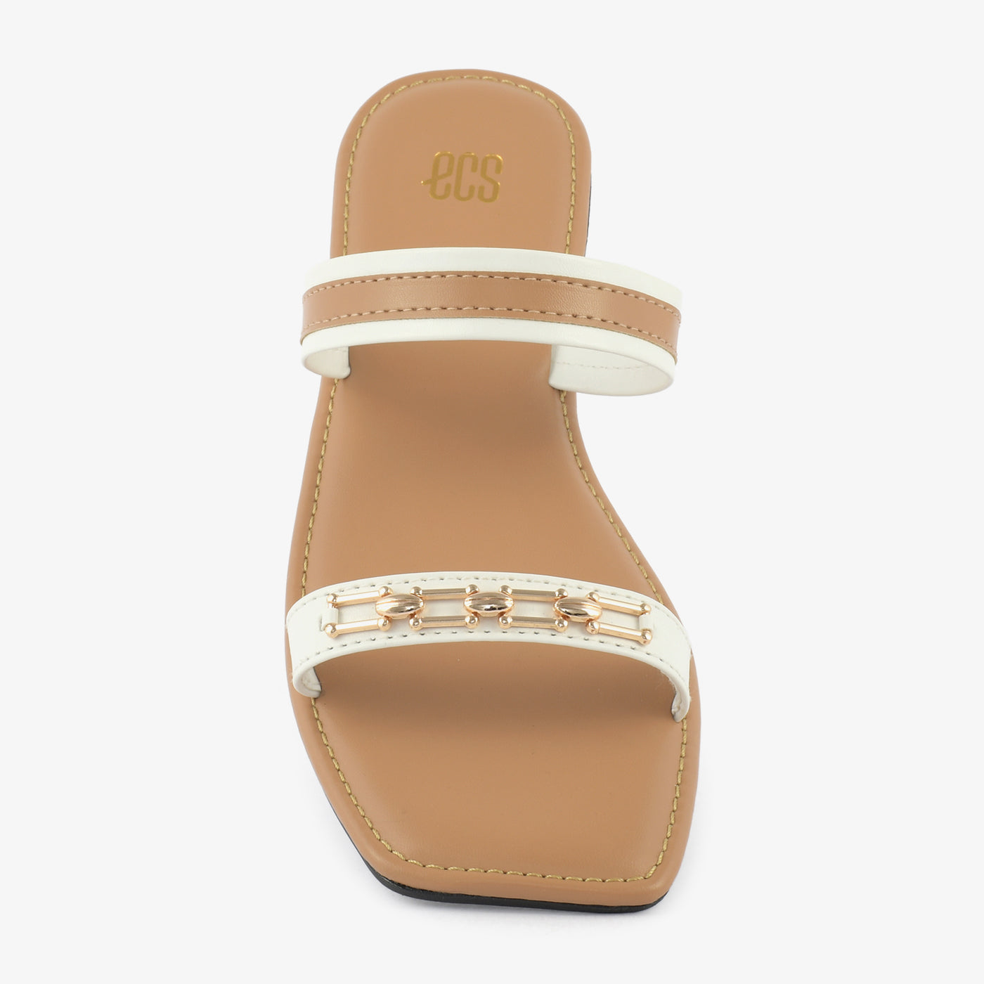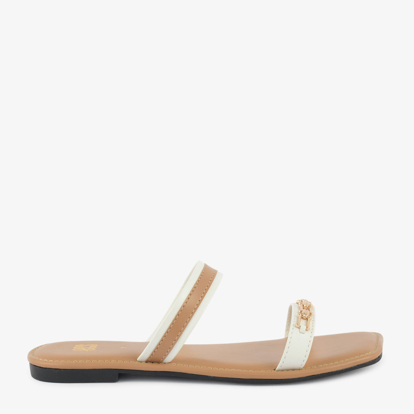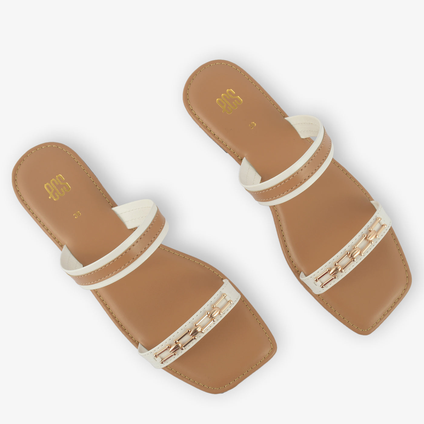 - Design: Chain detail, Two-tone straps, Flat sole