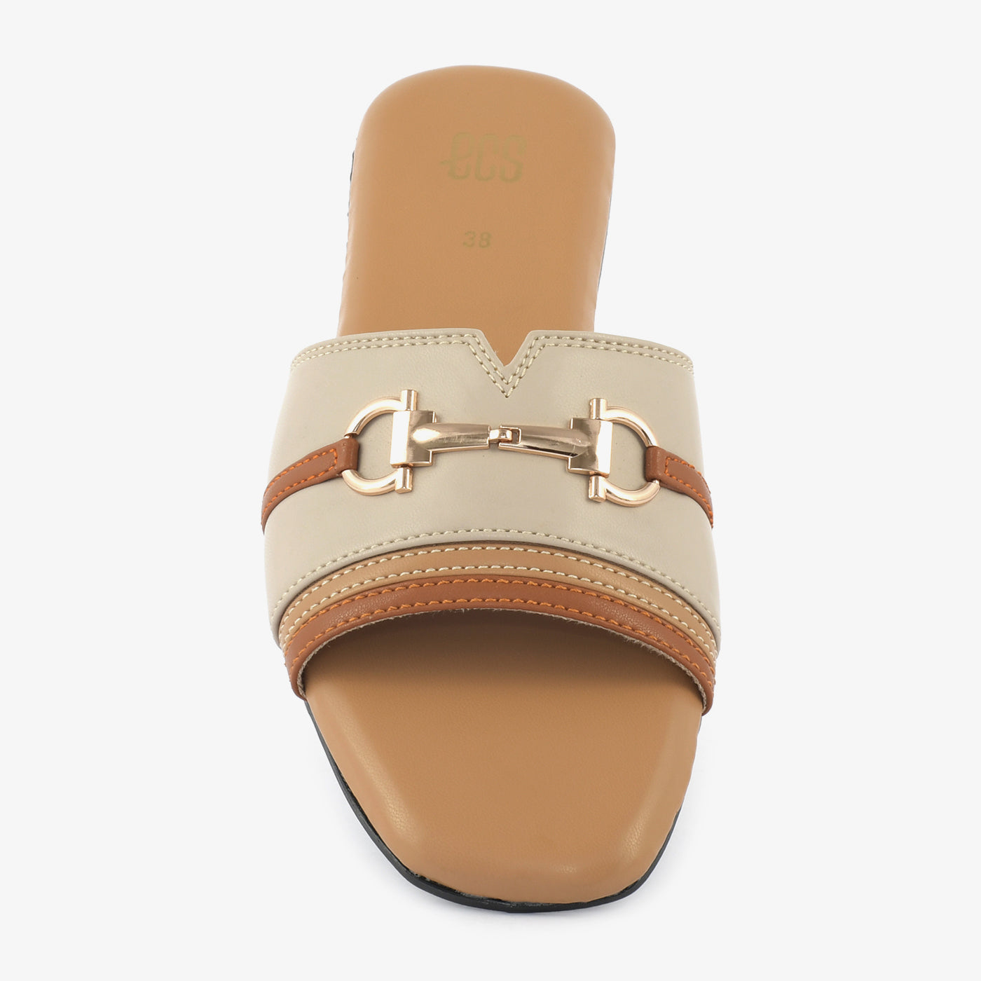 Add a touch of refined elegance to your casual look with these Equestrian Buckle Slides. Featuring a classic buckle detail and a comfortable flat sole, these slides offer a polished and stylish aesthetic. The slip-on style ensures ease of wear for everyday comfort.