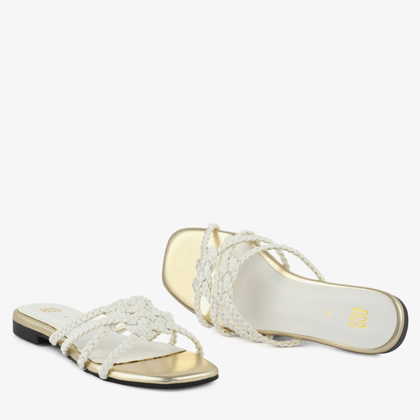 This elegant women’s slipper features intricately braided straps that create a refined and contemporary look. Designed with a softly cushioned footbed, it ensures lasting comfort for everyday wear. The metallic-toned sole adds a subtle touch of sophistication to its minimalist silhouette. Its lightweight structure allows easy movement throughout the day. The carefully crafted woven design enhances both durability and visual appeal. Perfect for casual outings and semi-formal occasions, this slipper blends modern style with effortless comfort.