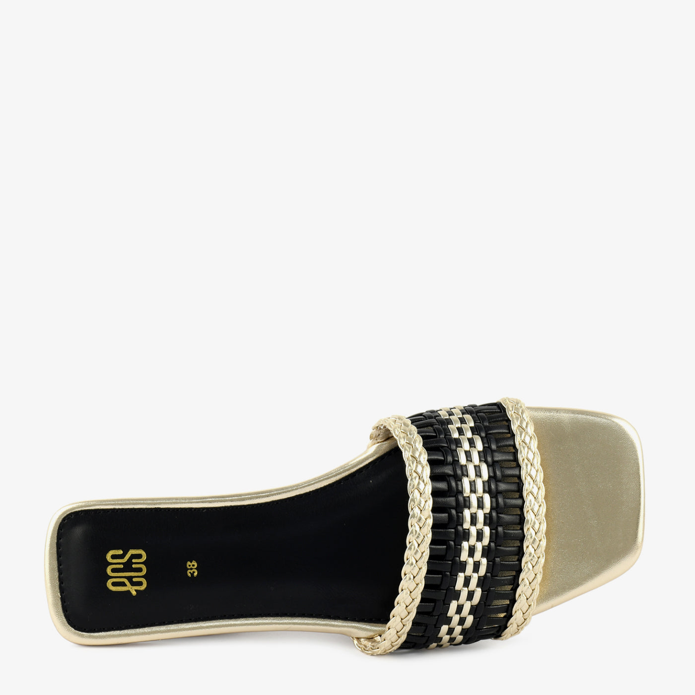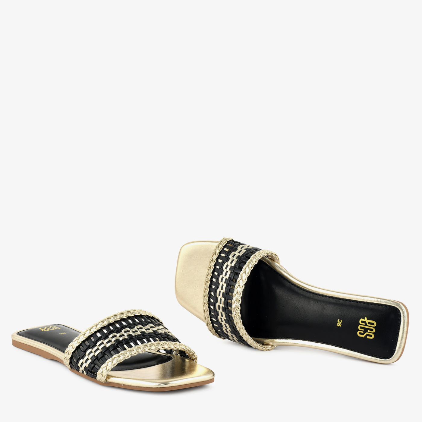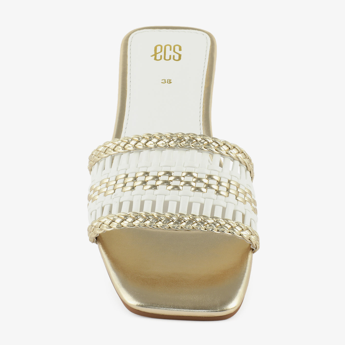Crafted with a stylish woven structure, this slipper offers a refined blend of texture and everyday comfort. The upper features an intricate woven pattern complemented by braided strap details that add a graceful touch to the design. Its open slip-on style makes it easy to wear while providing a relaxed fit. The soft cushioned footbed supports the foot gently, allowing comfortable steps throughout the day. Built with a lightweight sole, it ensures smooth movement and flexible wear. Ideal for casual outings or daily use, this slipper combines practical comfort with elegant design elements.