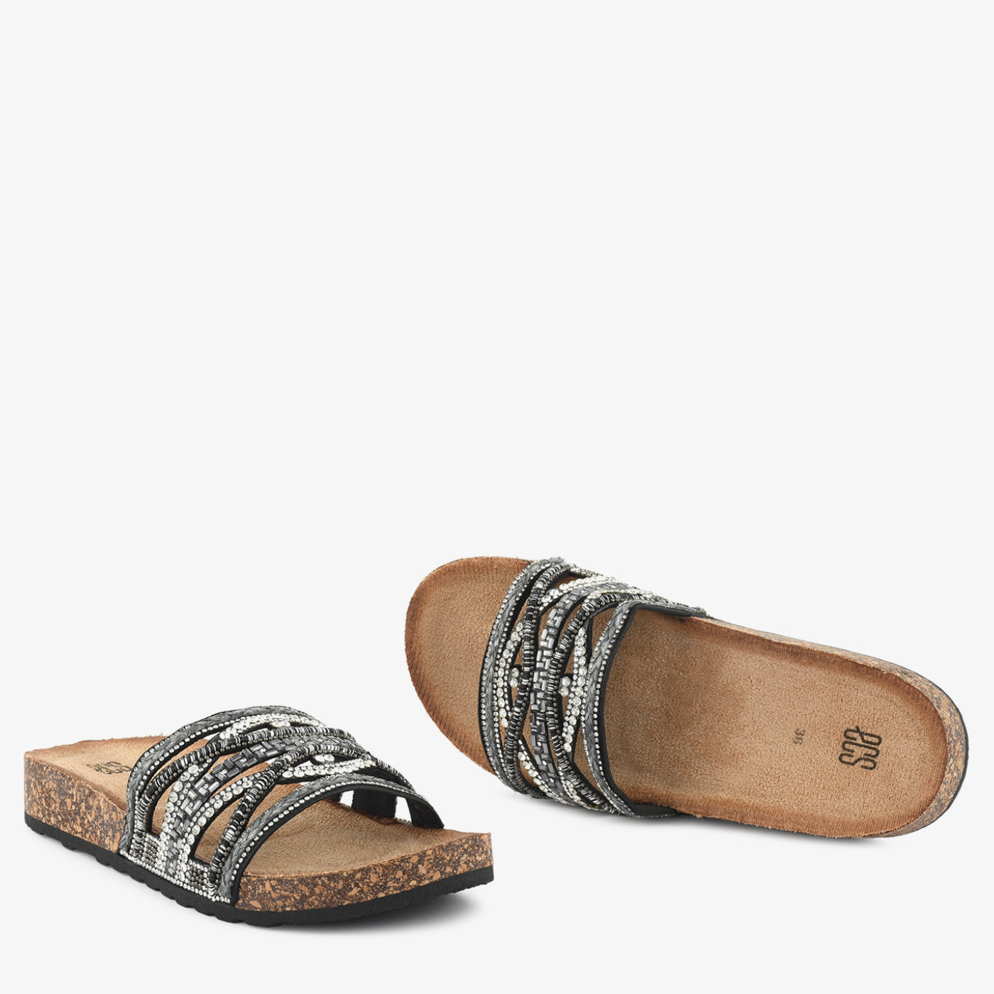 • Design: Multi-strap pattern with sparkling decorative accents