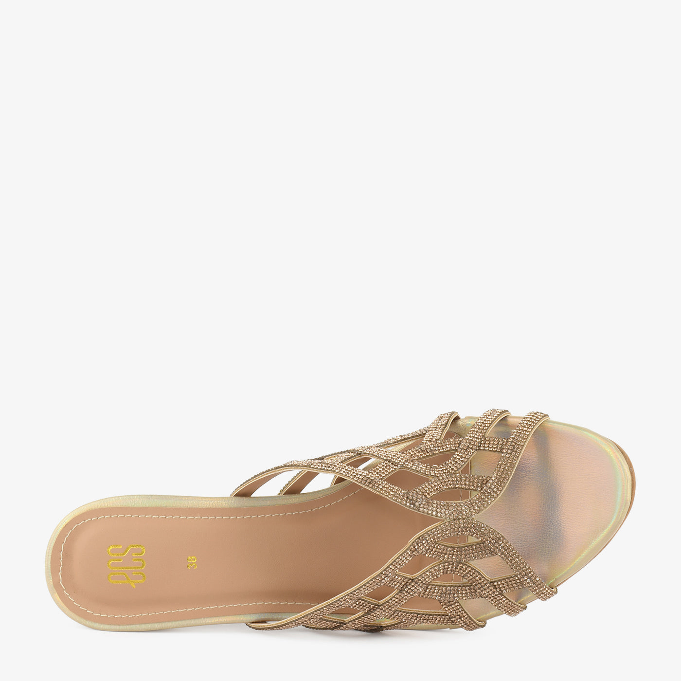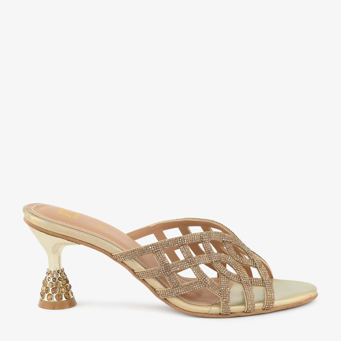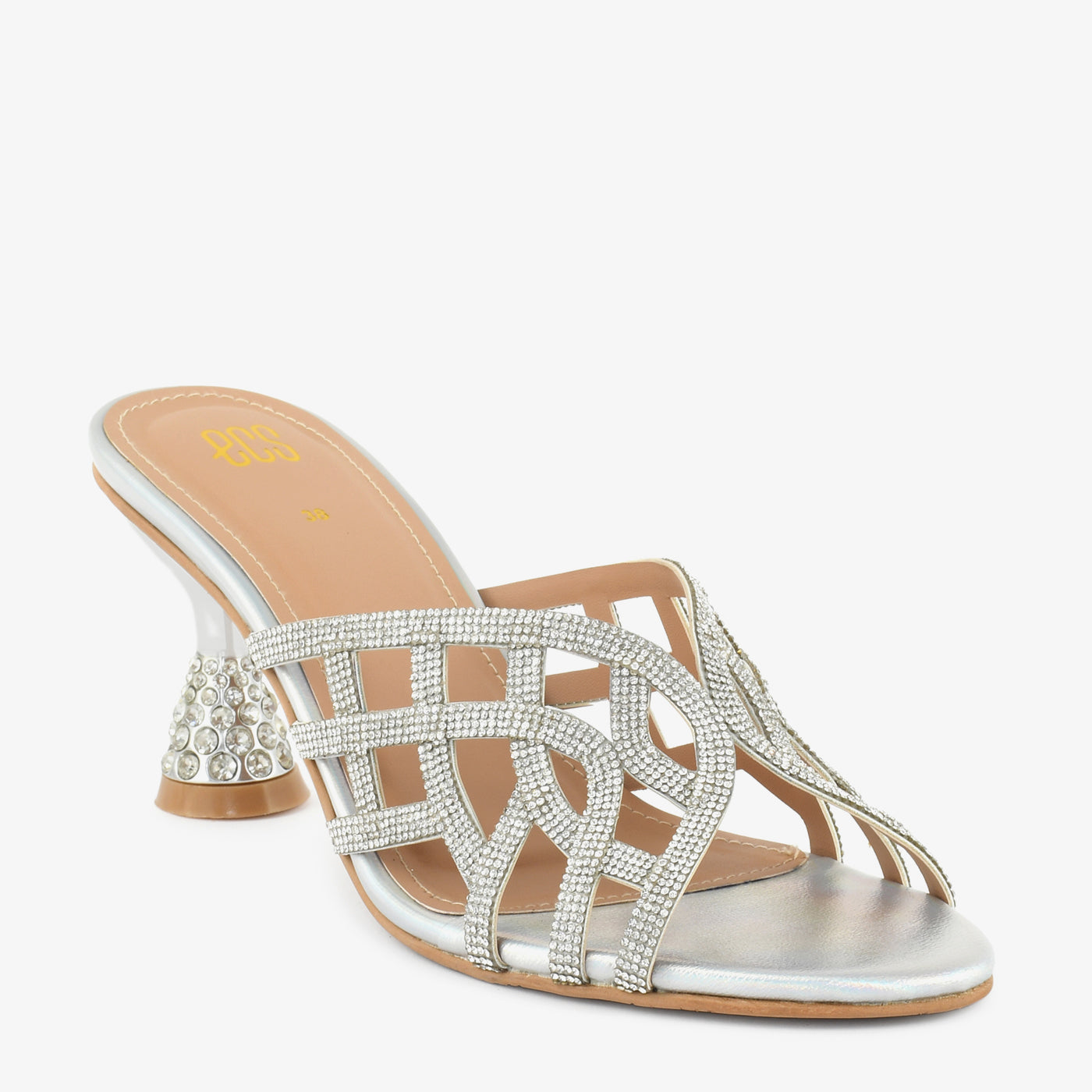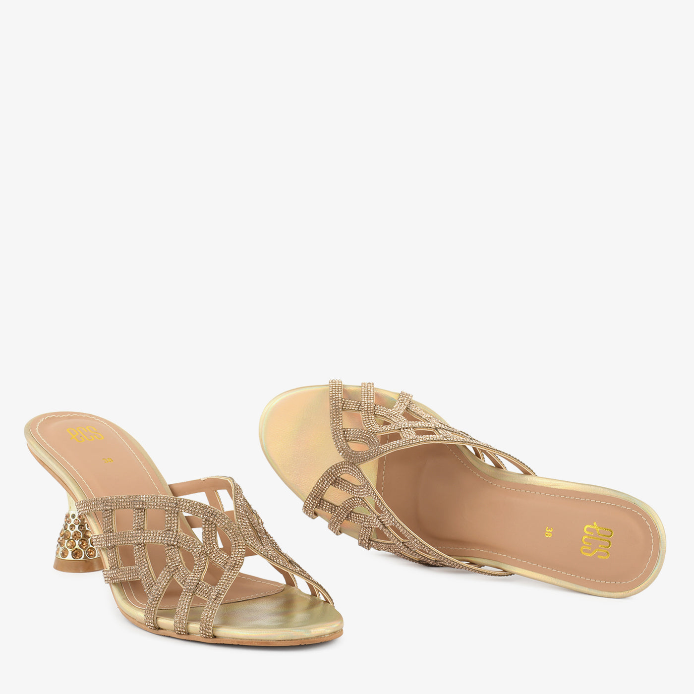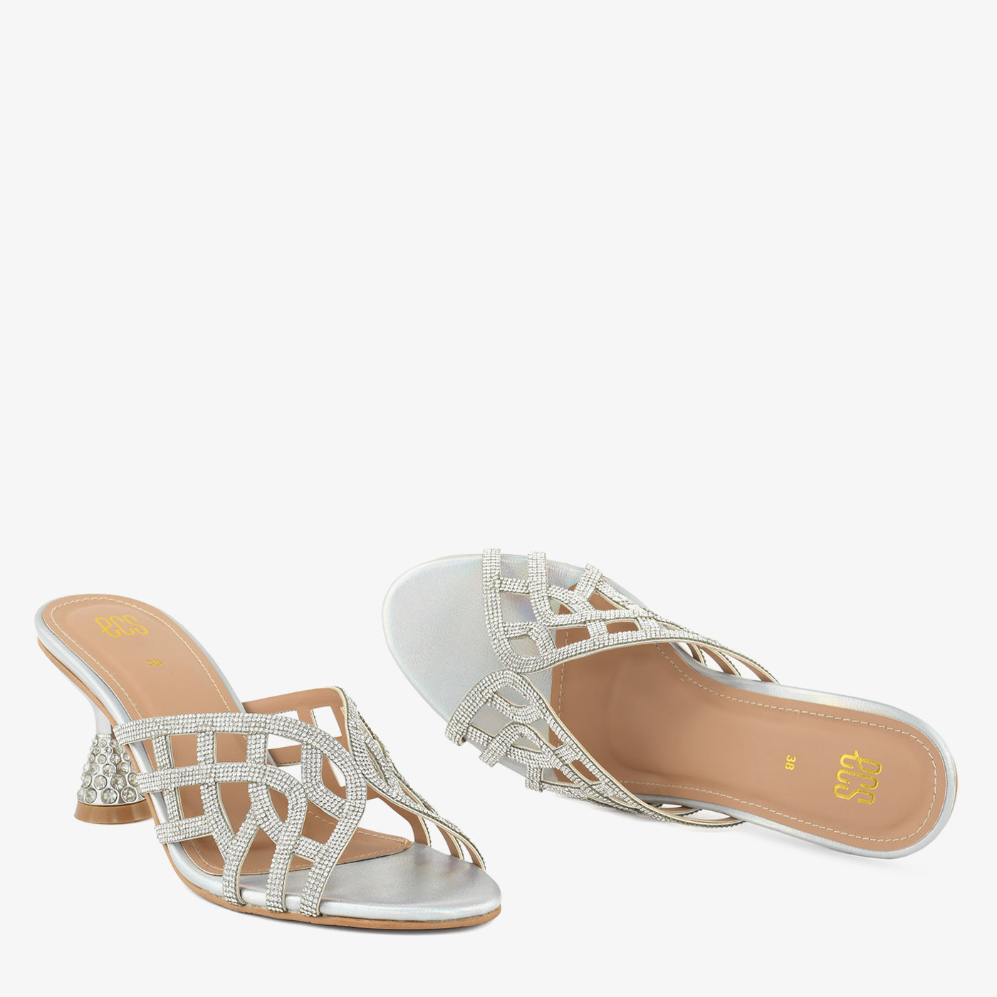 A stunning fusion of shimmer and structure, this heel is crafted with an intricate cut-out design and embellished heel for a refined, eye-catching finish. Designed to elevate festive and evening looks with grace and sparkle.