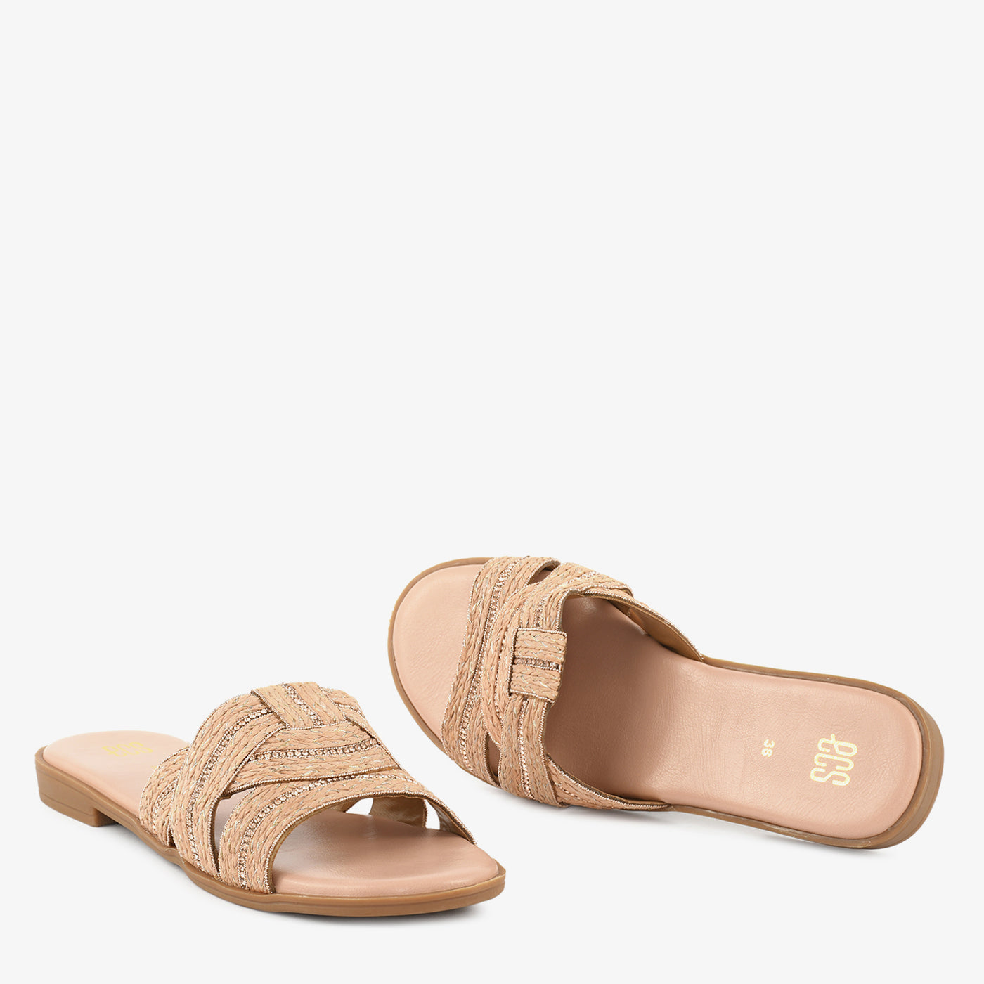 Step into relaxed elegance with the "Woven Whisper" slippers. These stylish beige slippers feature a comfortable flat design and an intricate woven pattern. Perfect for adding a touch of...