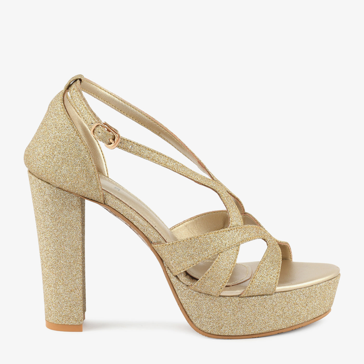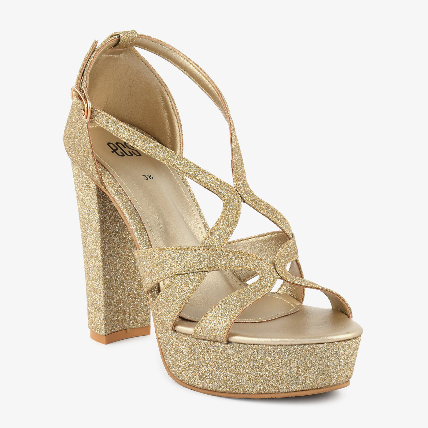 Crafted with crossover glitter straps and a bold platform base, this pair blends sculptural aesthetics with glam attitude. Its ankle strap gives support while the dramatic heel makes an unforgettable statement.