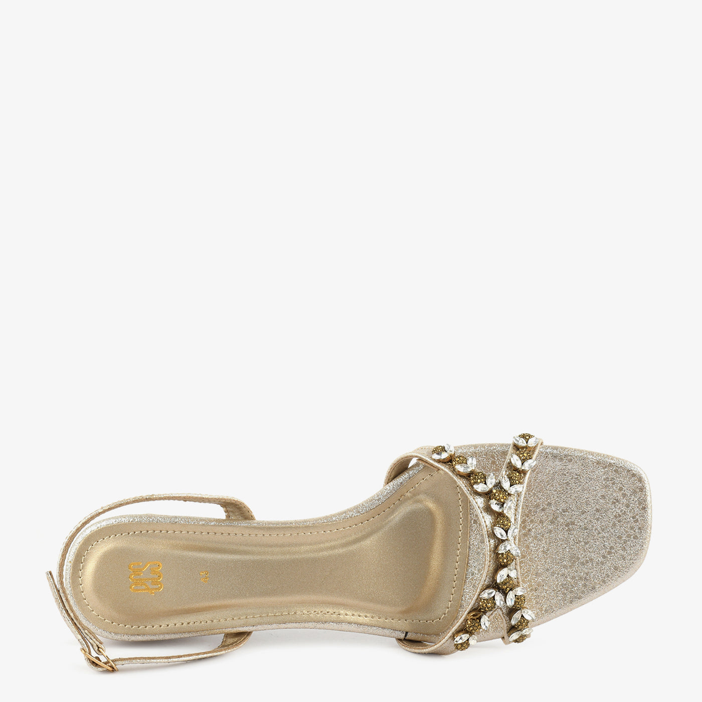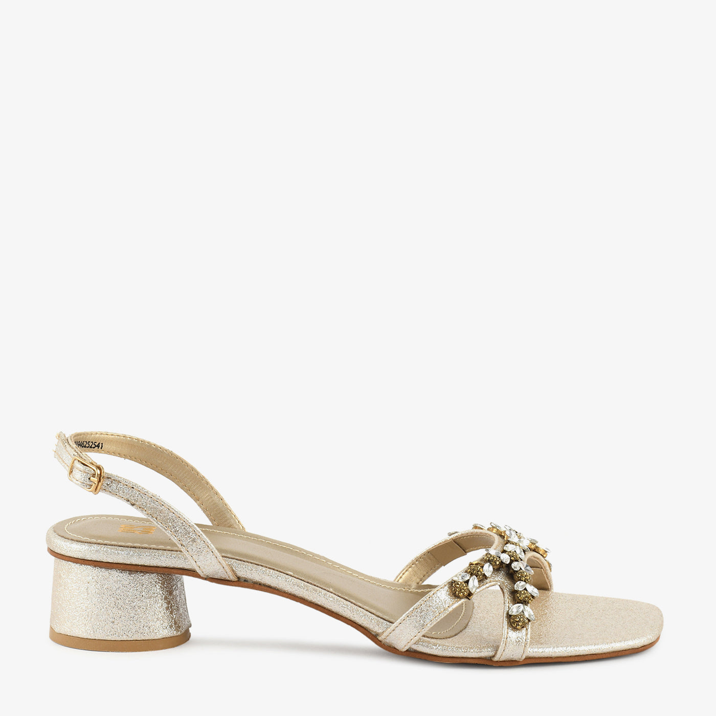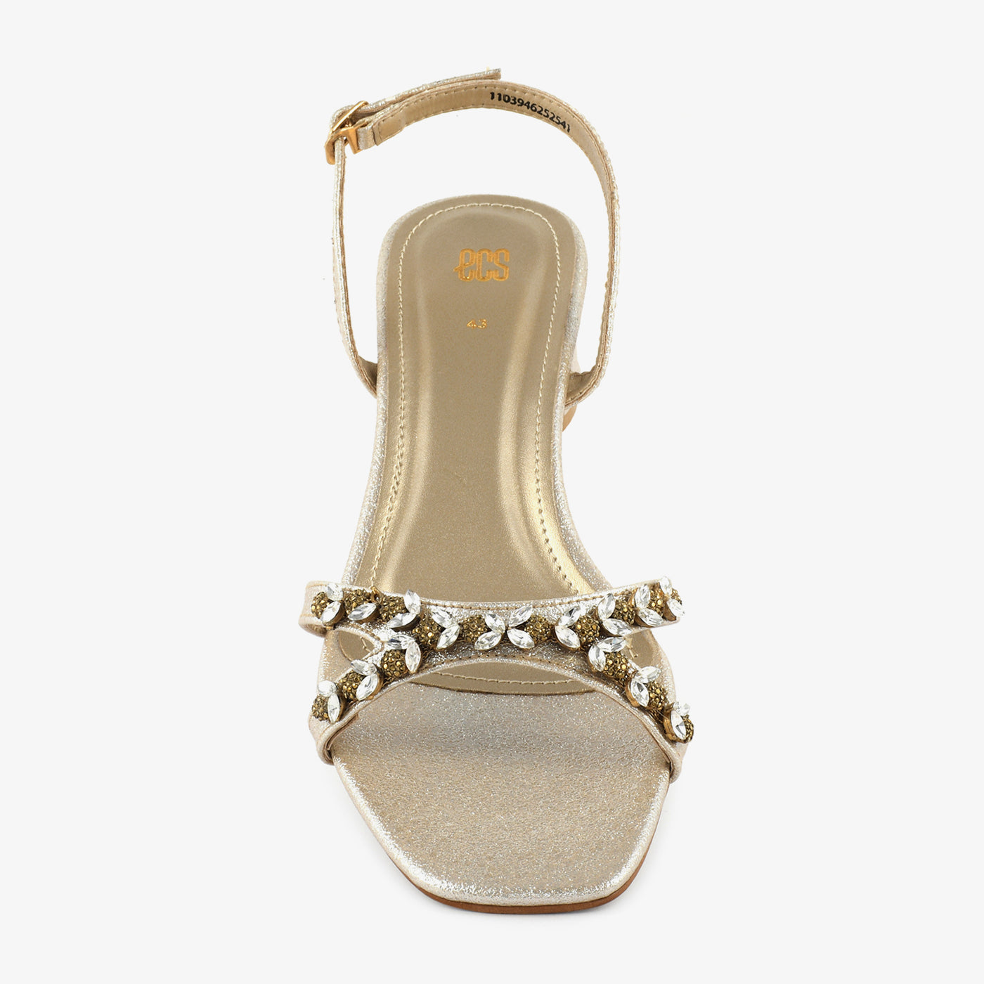 Designed with delicate stone embellishments, this stylish sandal brings refined elegance to your footwear collection. The cushioned insole provides lasting comfort for extended wear. Its secure ankle strap ensures stability and a customized fit. The balanced block heel offers gentle elevation while maintaining easy movement. Lightweight construction allows effortless walking throughout the day. Fine finishing details enhance durability and premium appeal. The slip-on design makes it convenient for quick wear. Perfect for festive occasions, parties, and special gatherings.