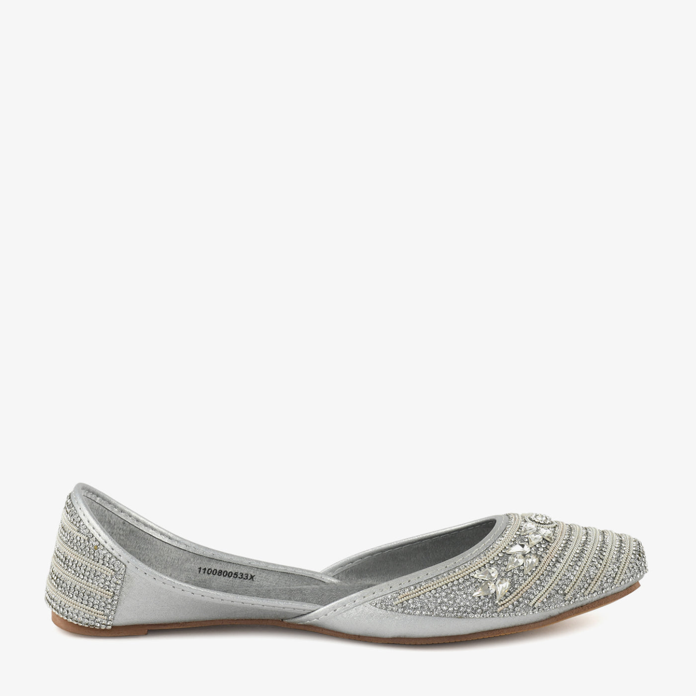 This elegant women’s khussa features a finely crafted silhouette adorned with intricate stone and bead embellishments. Designed to elevate festive and traditional looks, it offers a softly cushioned footbed for comfortable wear. The closed-toe structure provides a secure fit while maintaining graceful appeal. Delicate textured detailing enhances its luxurious finish. Lightweight and easy to slip on, it allows effortless movement throughout long celebrations. Perfect for weddings, parties, and cultural gatherings, this khussa blends tradition with refined sophistication.