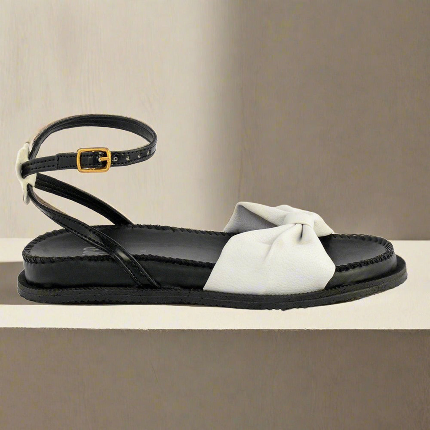 A dainty flat sandal designed for everyday feminine comfort. The soft bow detail adds a cute touch while the ankle strap ensures a secure and graceful fit. With a cushioned base and flexible sole, this pair keeps you comfortable through long summer walks and casual outings. A lightweight pick for women who love elegance with ease in warmer days.