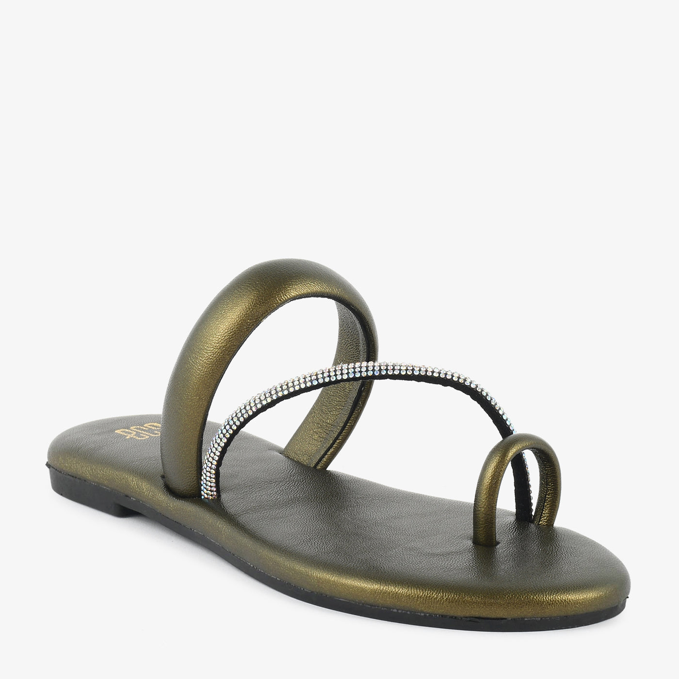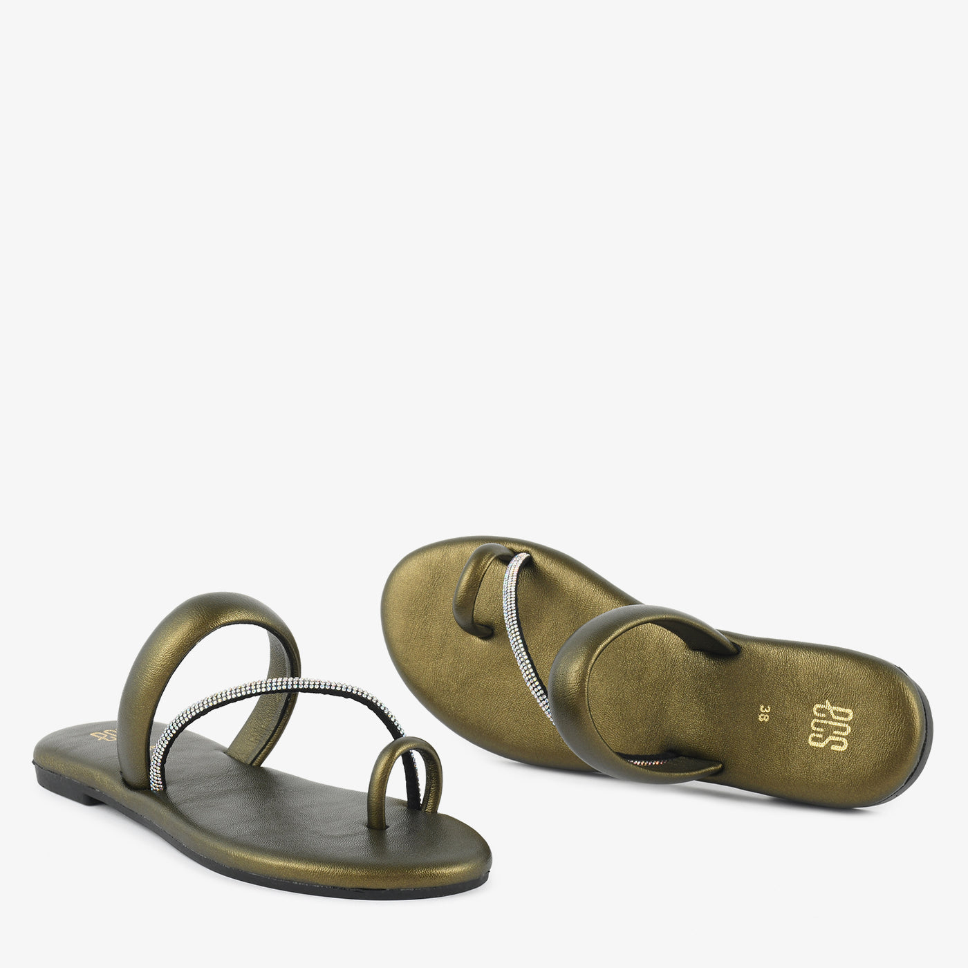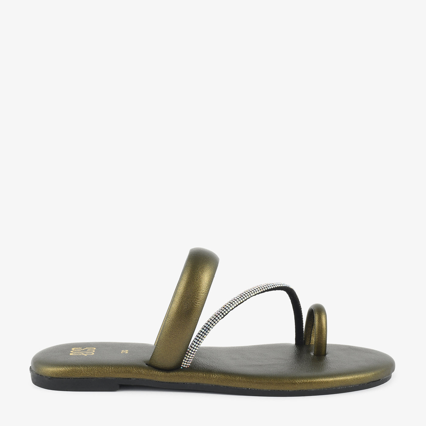 This stylish flat chappal features a sleek double-strap design with subtle crystal detailing that adds a refined and graceful touch to your everyday look. Crafted with a soft and cushioned footbed, it offers excellent comfort for long hours of wear. The lightweight construction ensures effortless movement, while the slip-on structure provides easy wearability. Neatly finished edges enhance durability and maintain a polished appearance. Suitable for daily use, casual outings, and relaxed gatherings, this chappal blends simplicity with modern charm.