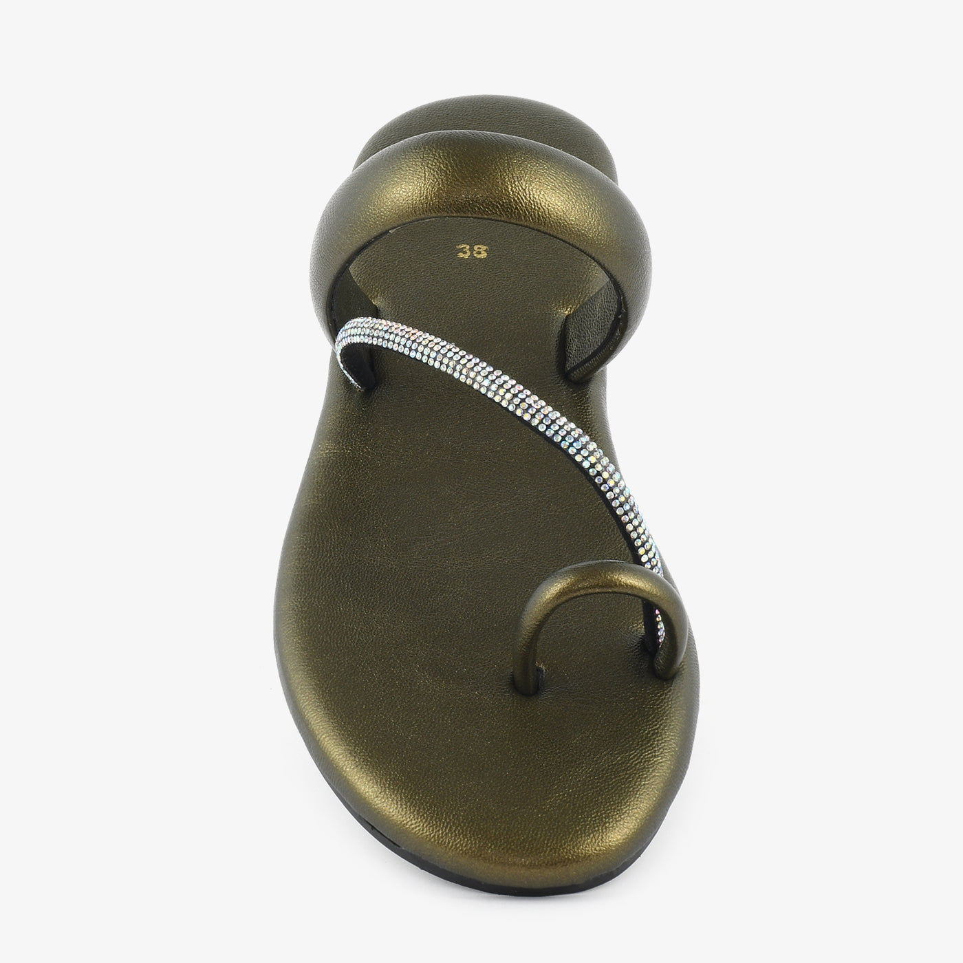 - Design: Flat slip-on chappal with double-strap and crystal detailing
