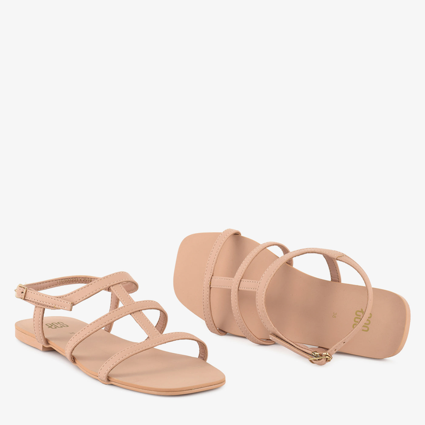 Step into understated elegance with the "Strappy Flats." These versatile beige flat sandals feature a stylish multi-strap design and an adjustable ankle strap for a comfortable fit. Perfect for...