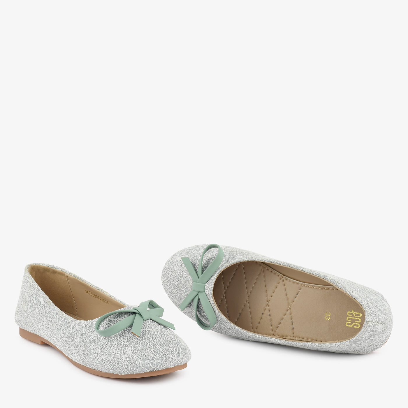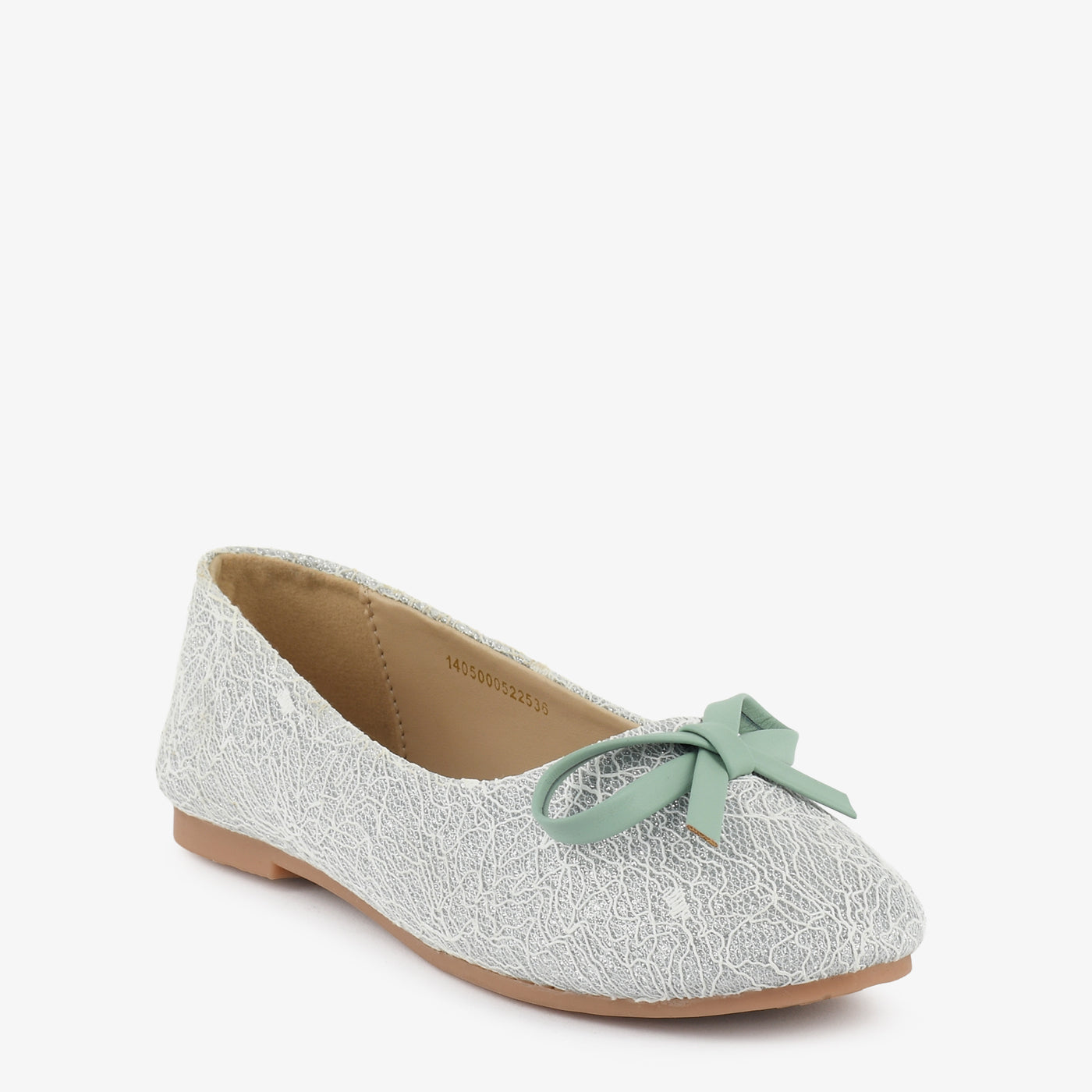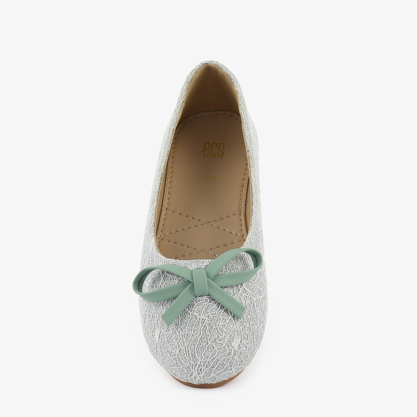 A dainty ballet flat featuring a textured lace-style surface and a sleek bow accent. Its lightweight structure ensures easy wear, while the classic silhouette adds feminine grace to any look.