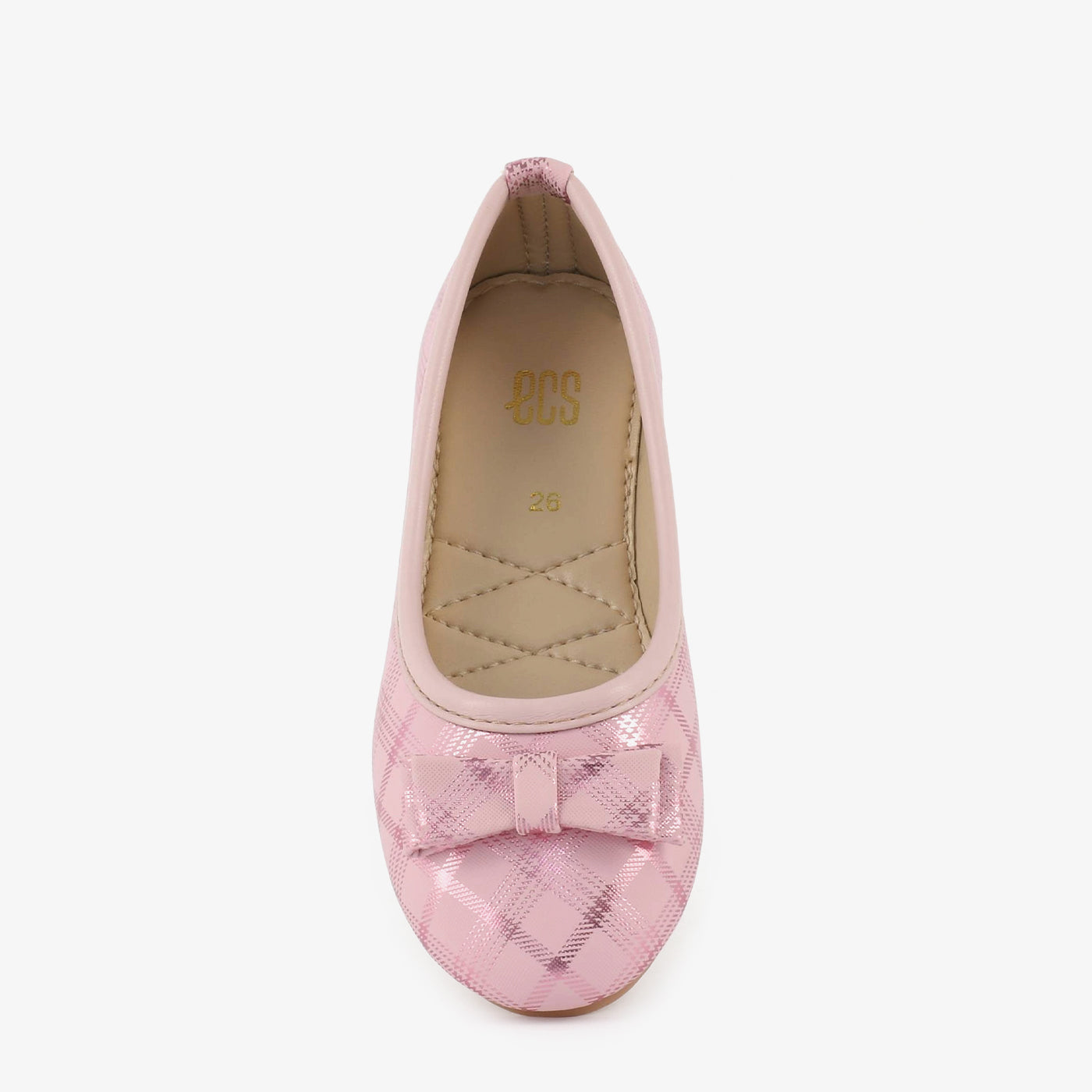 A cute pump that combines a glossy finish with a checkered design and a dainty bow. Its smooth inner lining ensures comfort, making it perfect for long wear. Lightweight and durable, this pair blends charm with practicality. Ideal for parties, casual outings, or playful days.