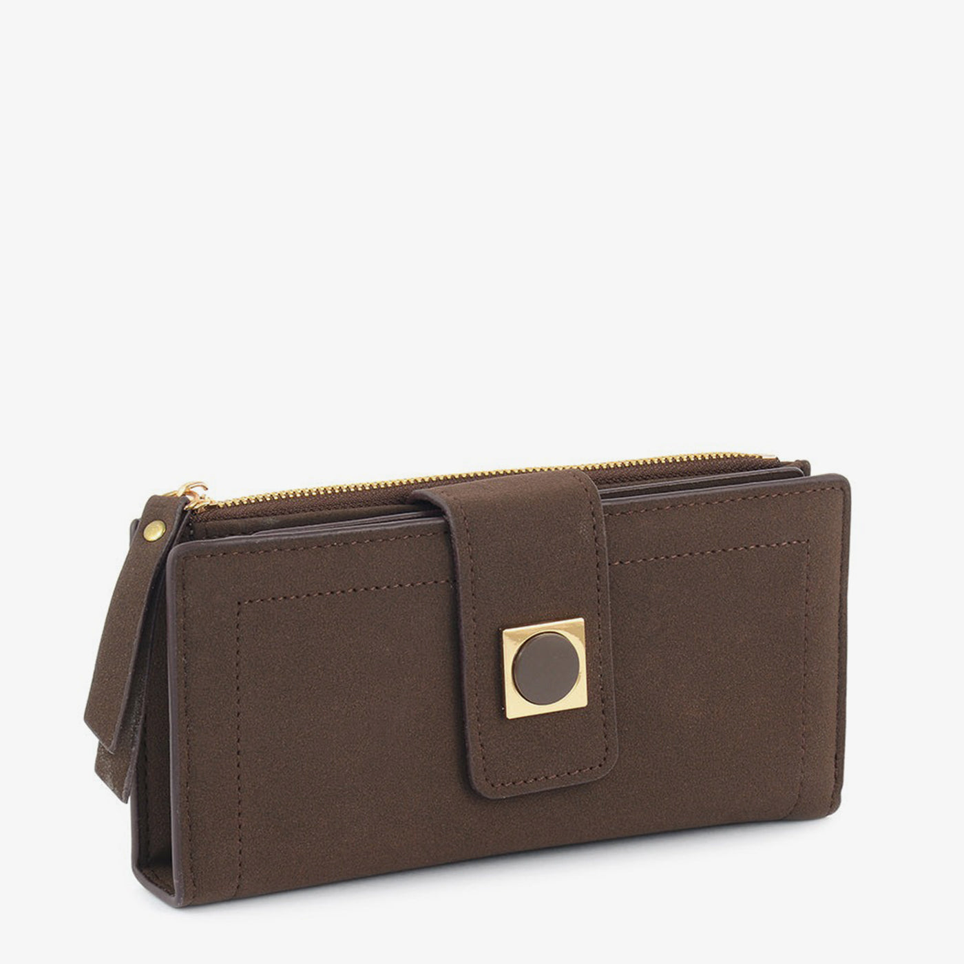 Introducing the Luxe Link Wallet, where elegance meets practicality. Crafted from high-quality PU material, this clutch features a soft textile lining that adds a touch of sophistication. Designed with a spacious compartment and an impressive 21 pockets, it ensures your essentials are organized and easily accessible. The stylish buckle detail enhances its chic appearance, while the matte finish offers a modern edge. With dimensions of 10 cm in height and 19 cm in width, the Luxe Link Wallet is the perfect accessory for any occasion, blending functionality with contemporary style effortlessly.