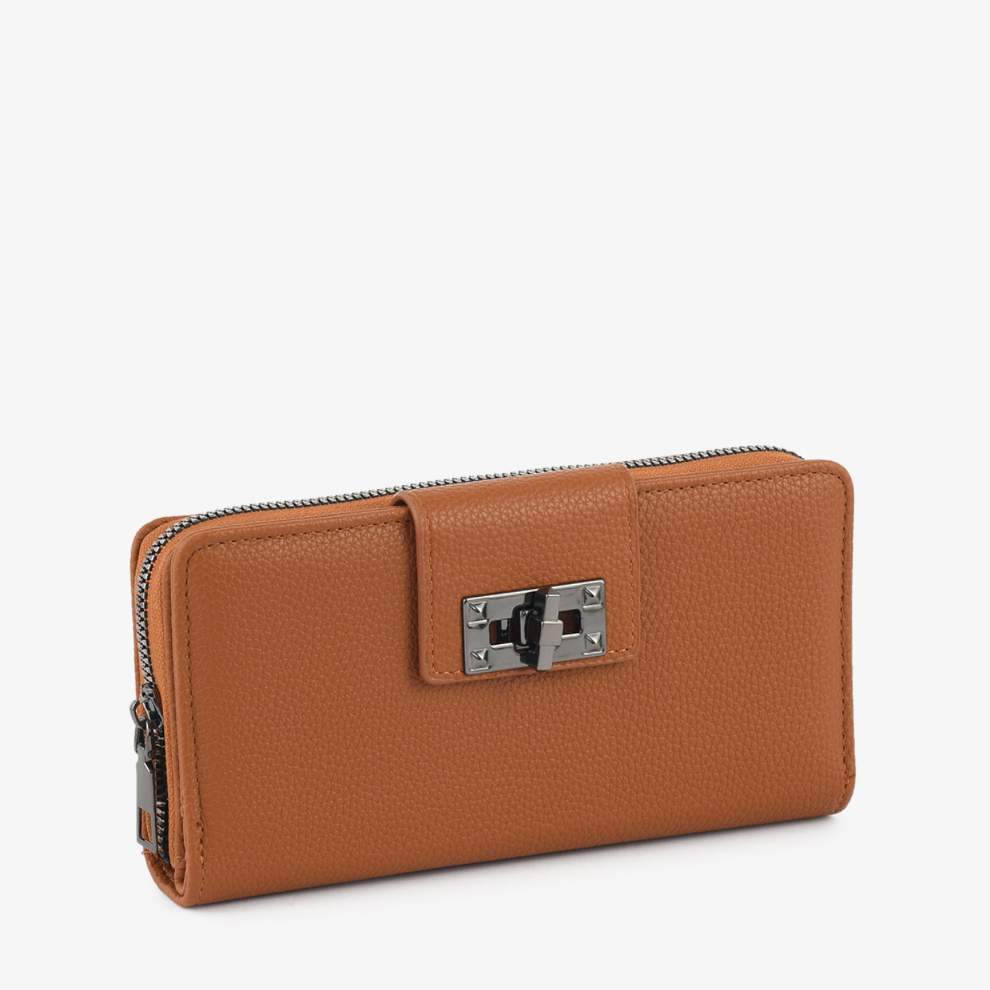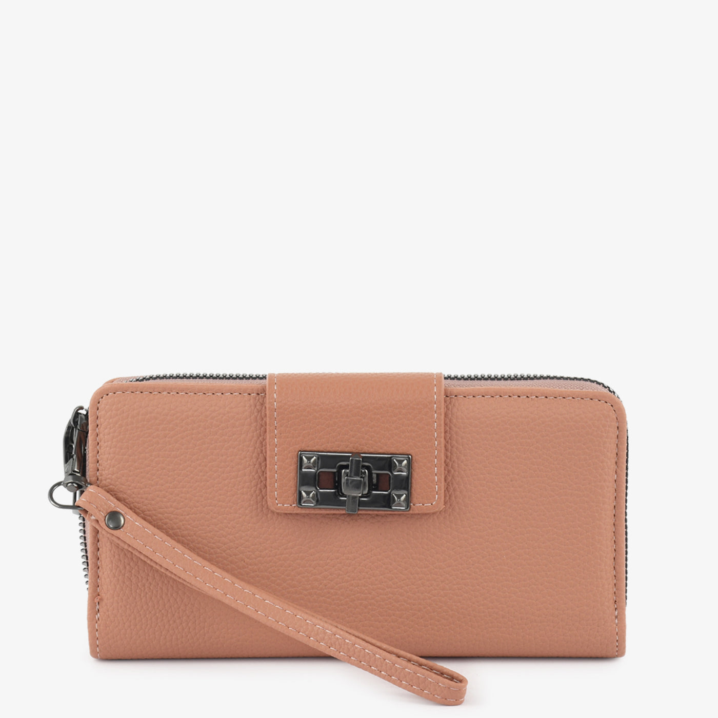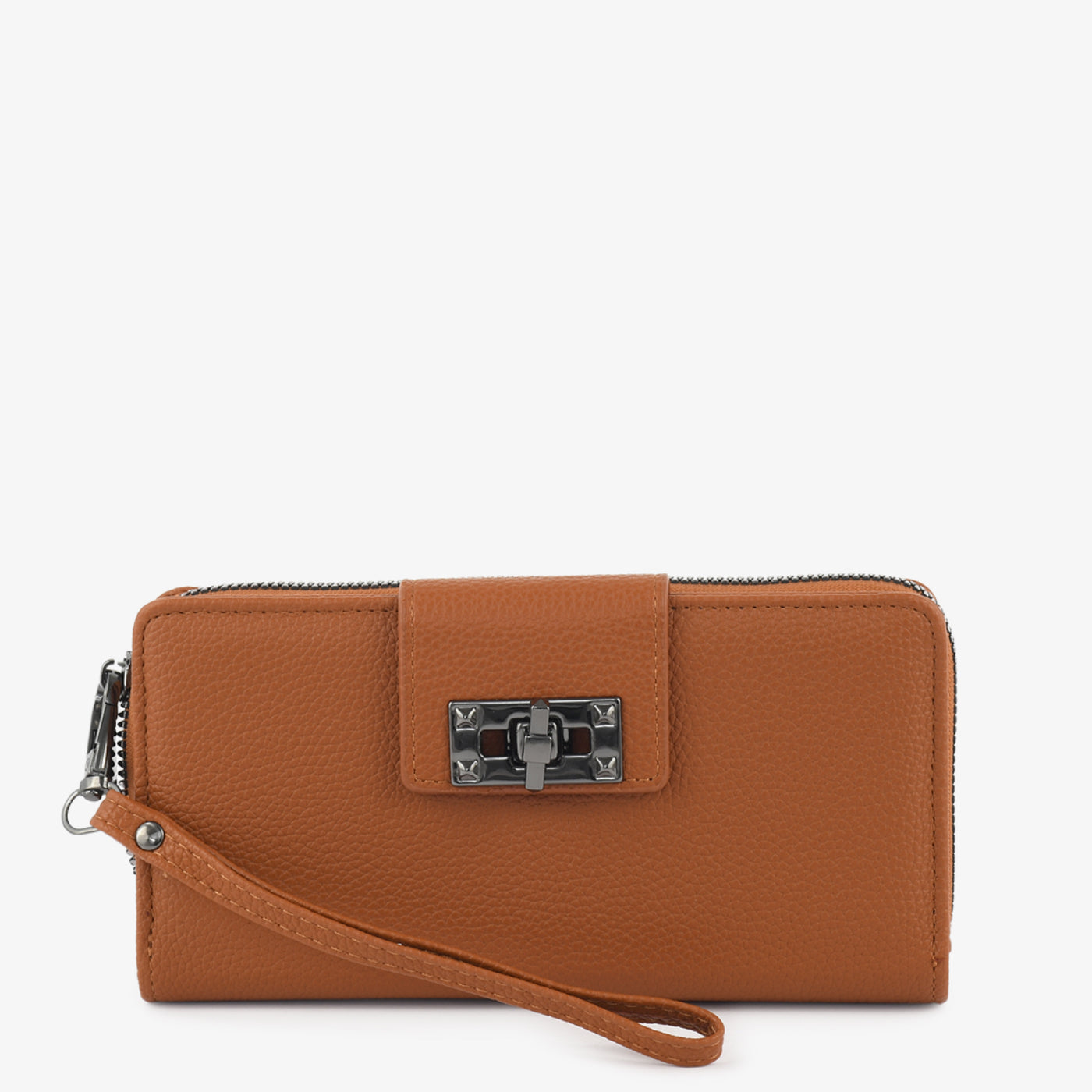 Designed with utility in mind, this wristlet wallet features a secure turn-lock closure and detachable strap. The textured finish gives it a refined feel that's ideal for everyday use.