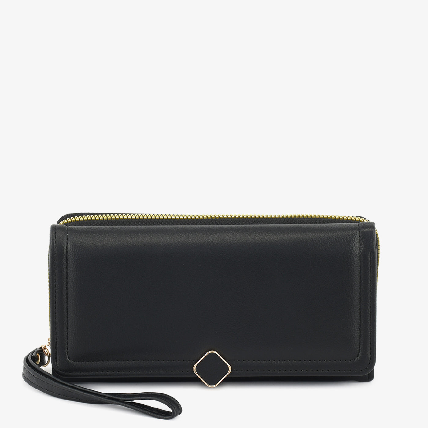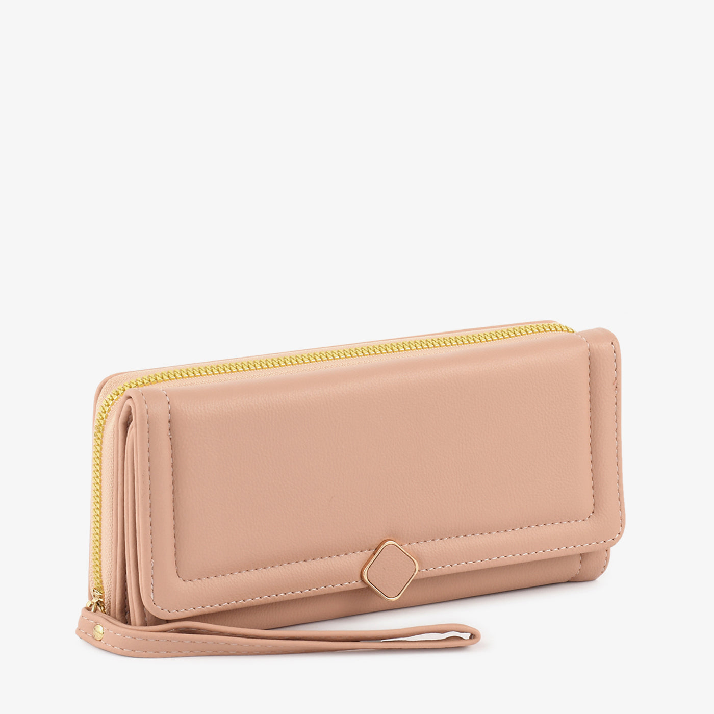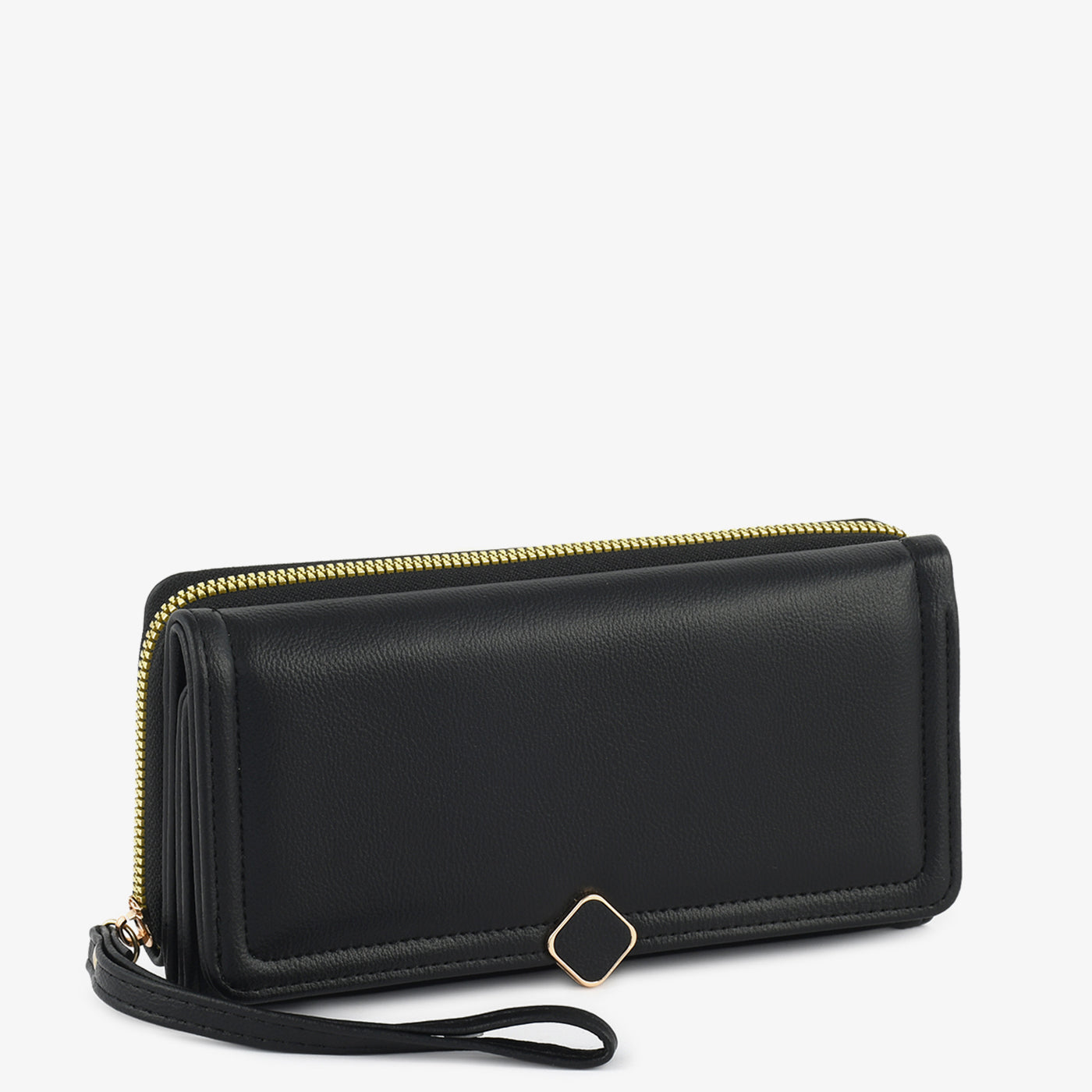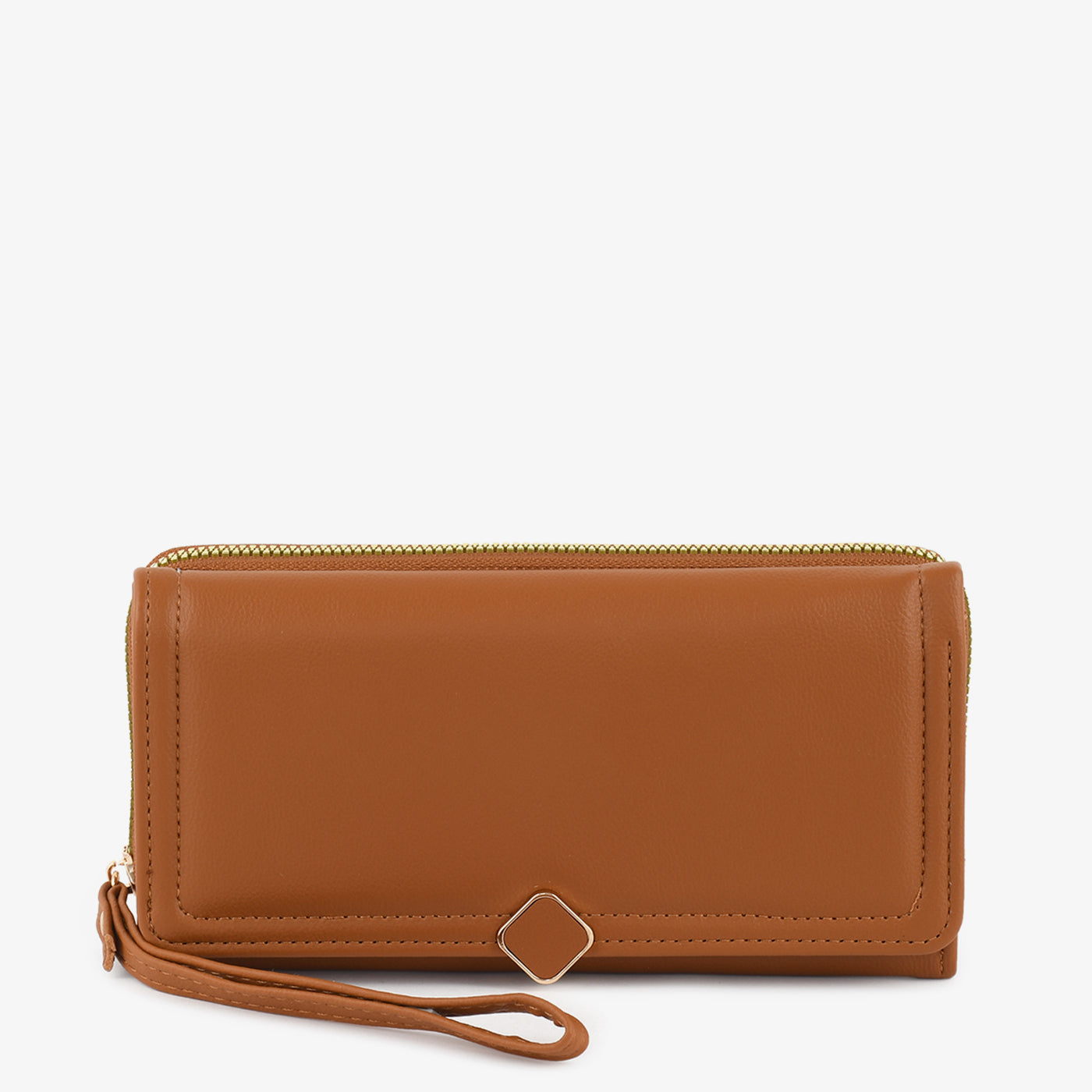 A sleek wallet with a minimal front accent and smooth finish. Its spacious layout and zip-around top ensure essentials stay secure while keeping the look sophisticated.
