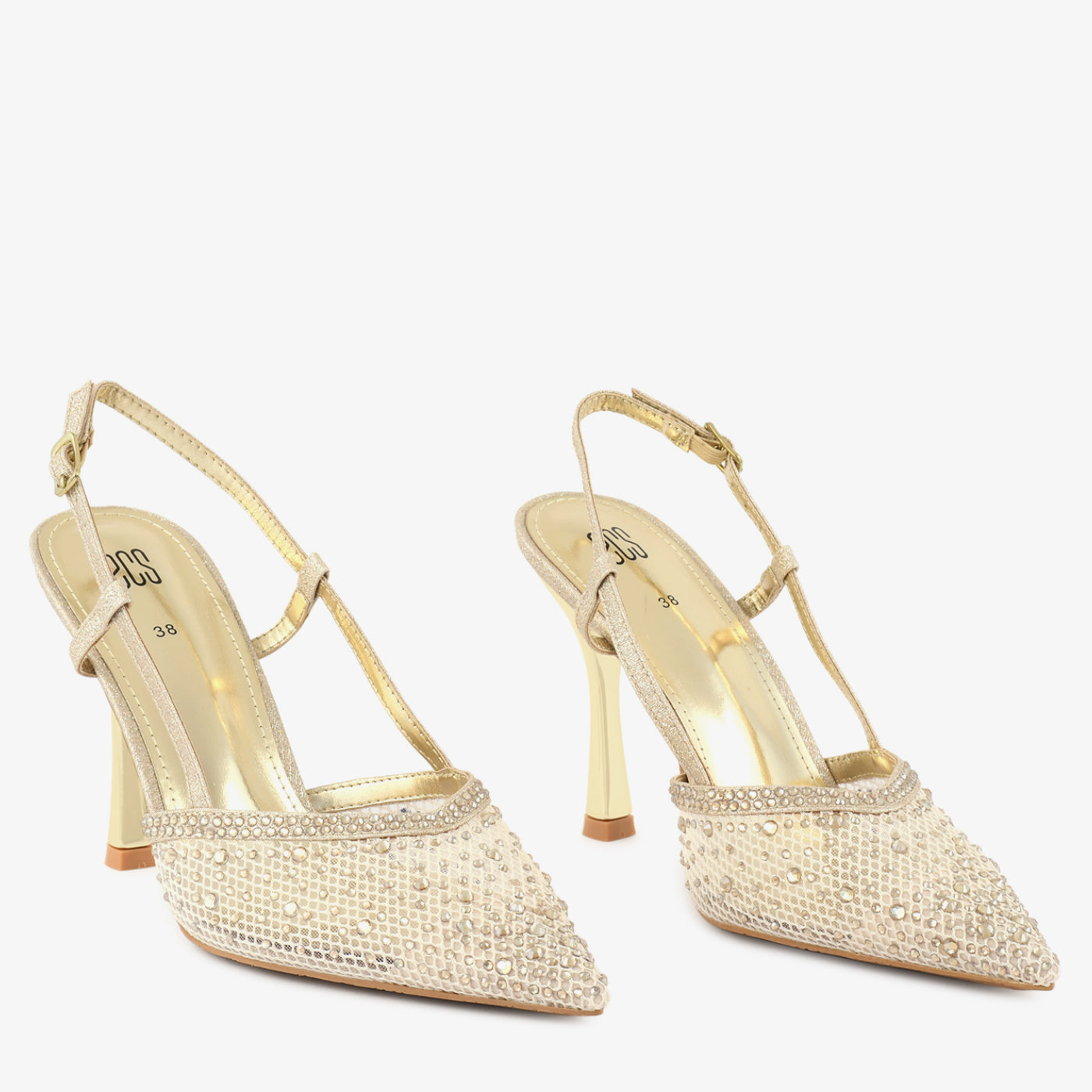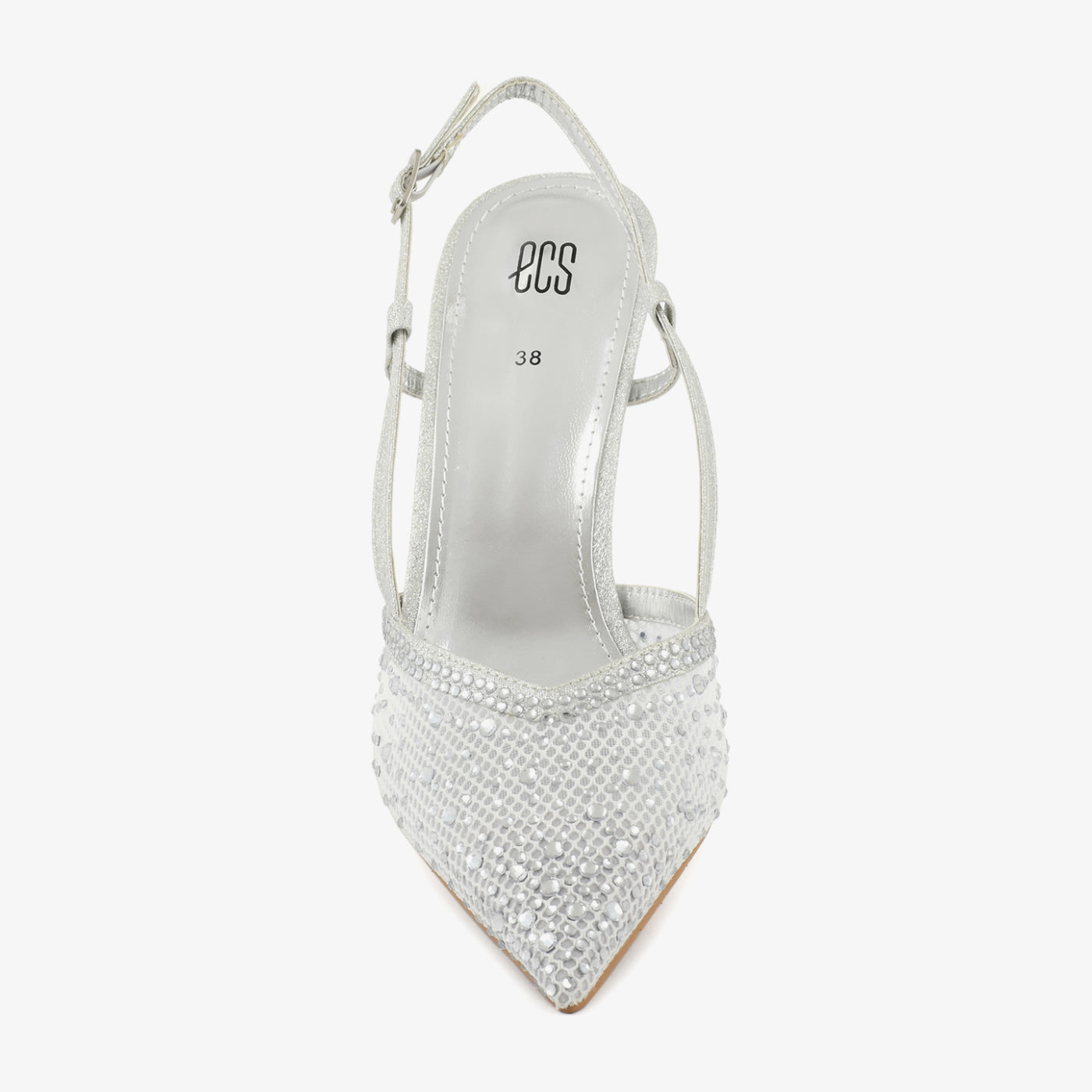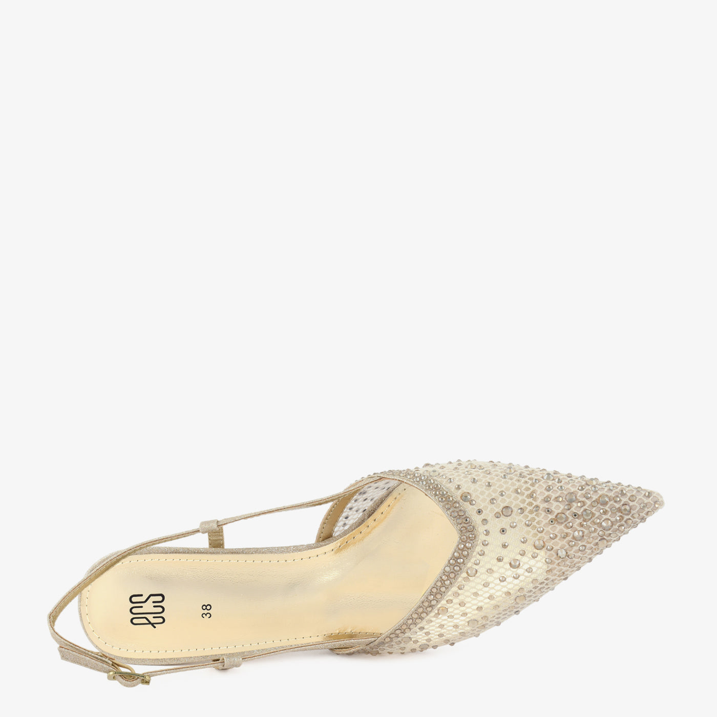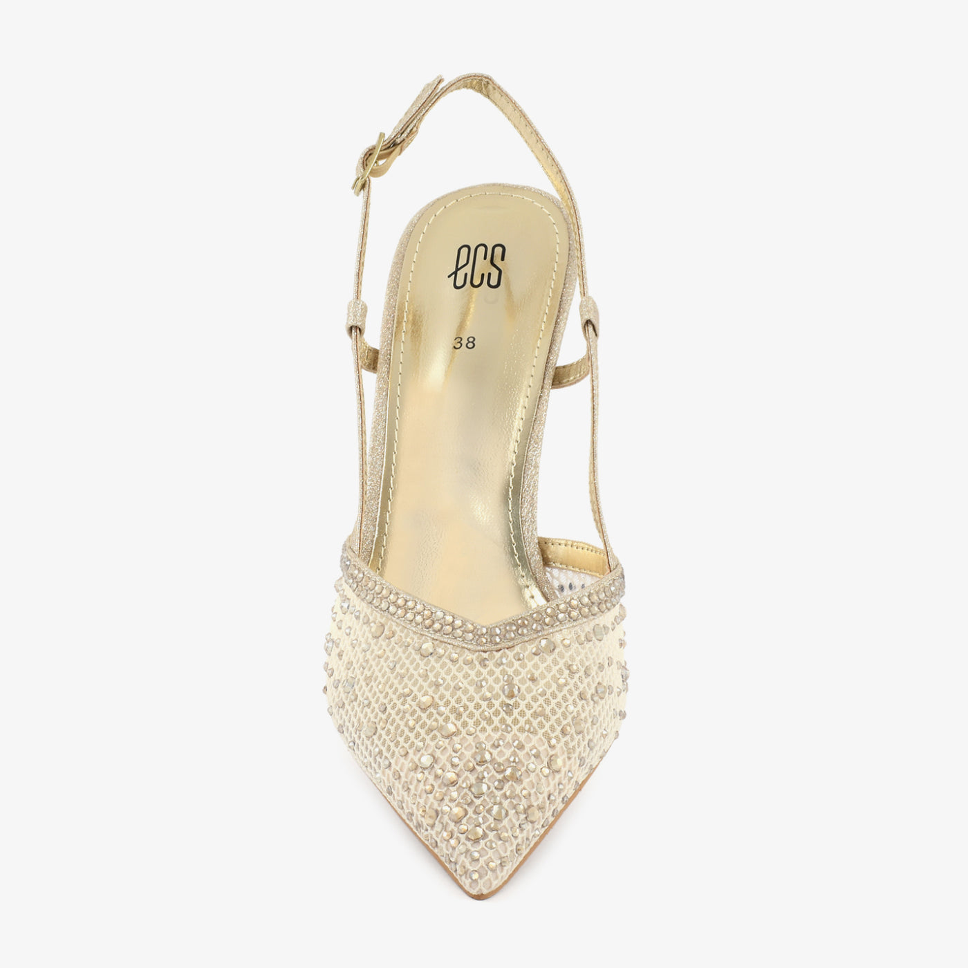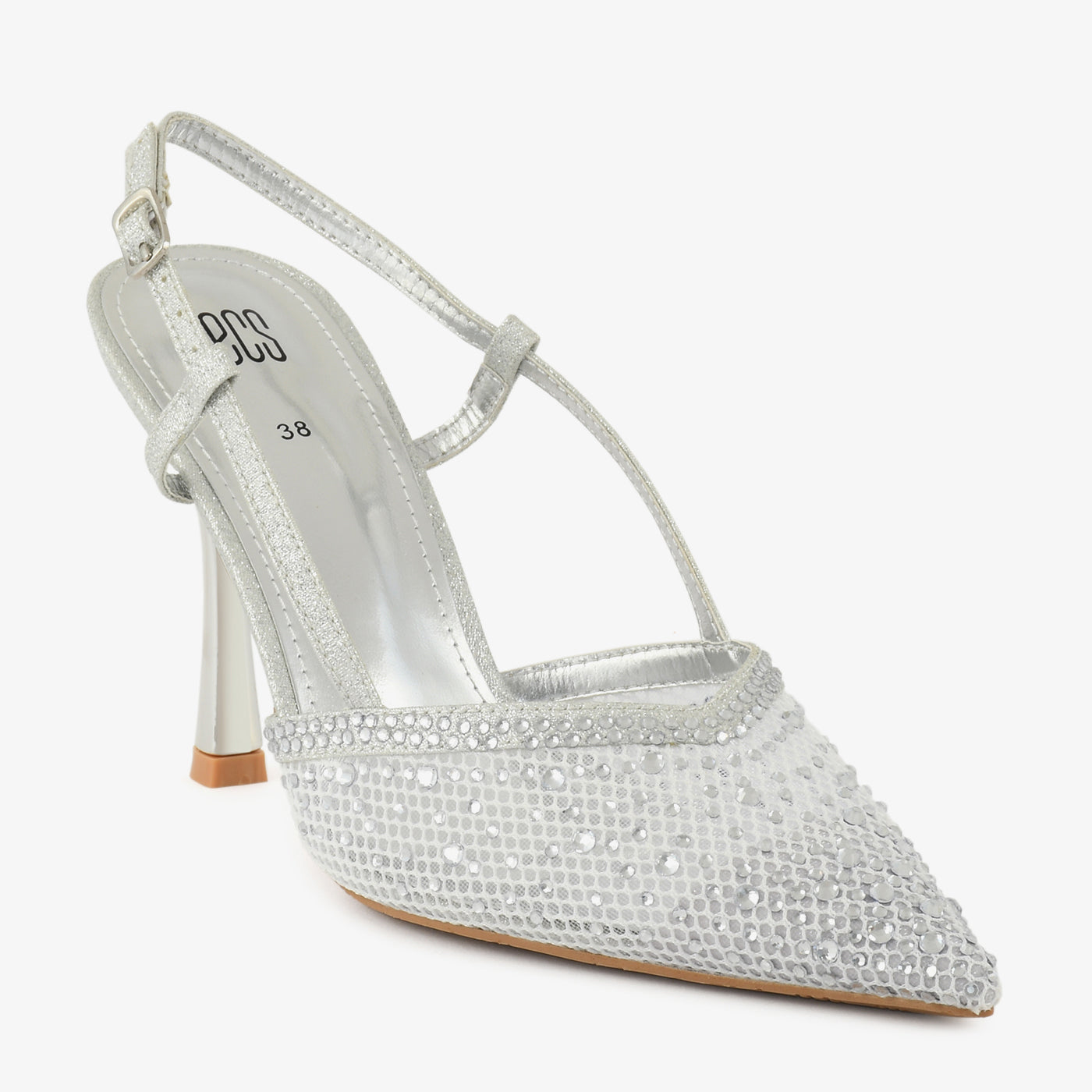 A sophisticated mesh-detailed dress shoe adorned with fine stones for graceful sparkle. Lightweight, breathable, and fashion-forward—ideal for formal events and festive modest outfits. Soft sole and smooth inner lining provide comfort throughout long ceremonies or dinners.