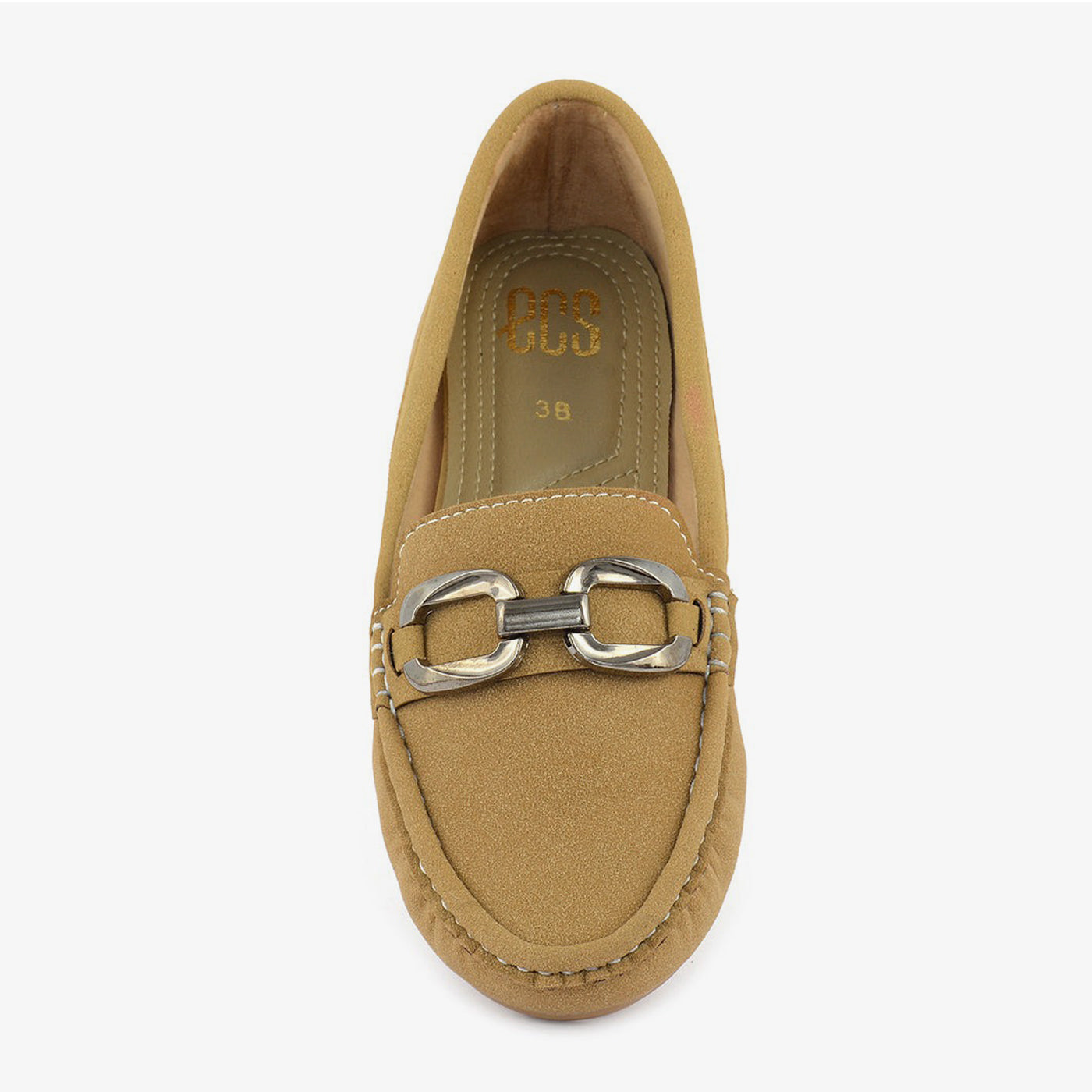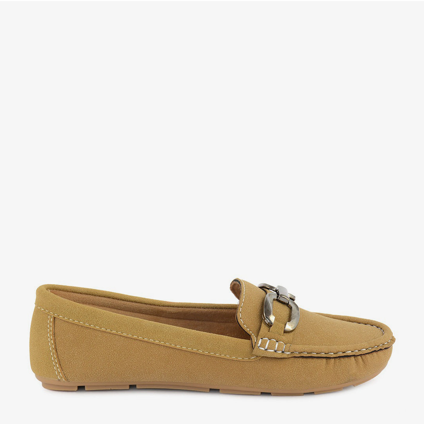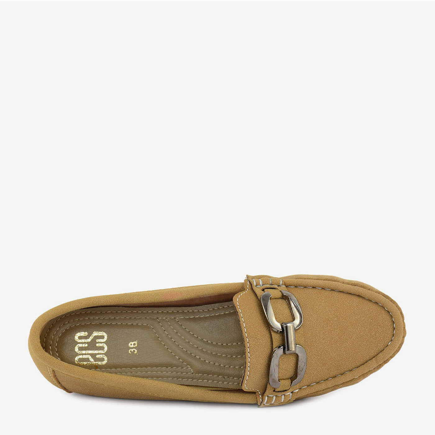 Designed for casual elegance, these moccasins feature a wide metallic buckle detail that makes a bold yet practical statement.