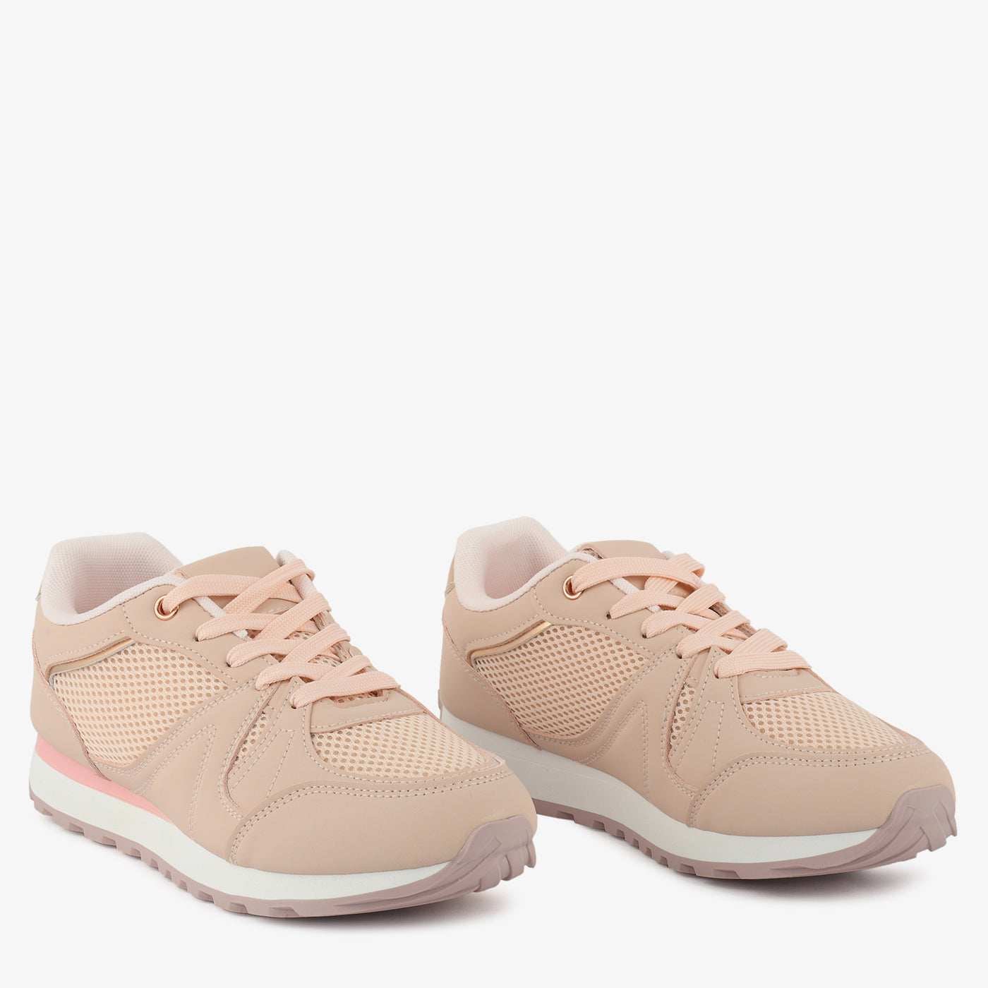 This stylish women’s sneaker features a breathable mesh-panel design combined with smooth overlays for a balanced blend of comfort and durability. Designed with a cushioned footbed, it provides all-day support and ease of movement. The lace-up closure ensures a secure and adjustable fit, while the lightweight construction enhances flexibility and everyday wearability. With its sporty silhouette and neat finishing, this sneaker offers a perfect mix of functionality and modern appeal.