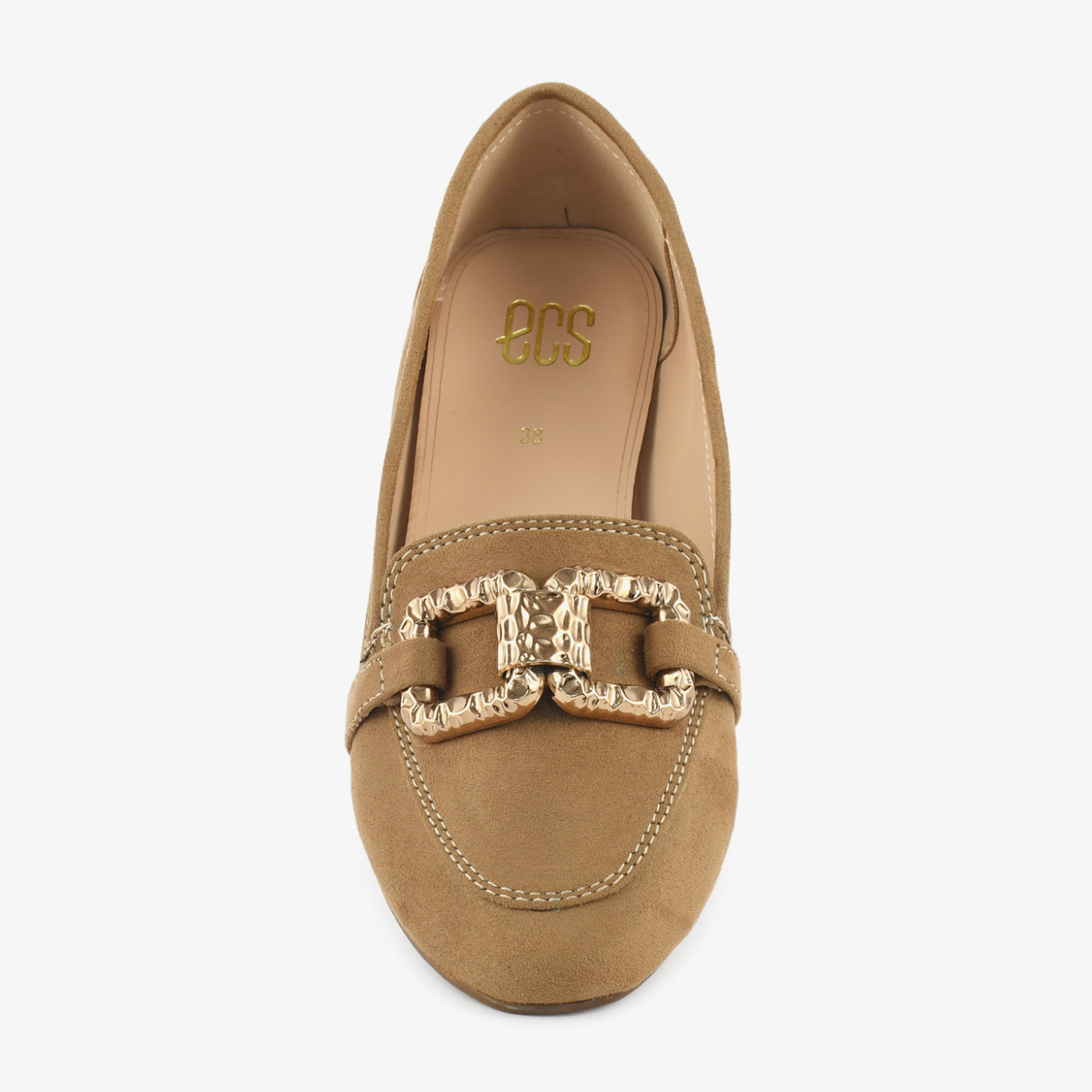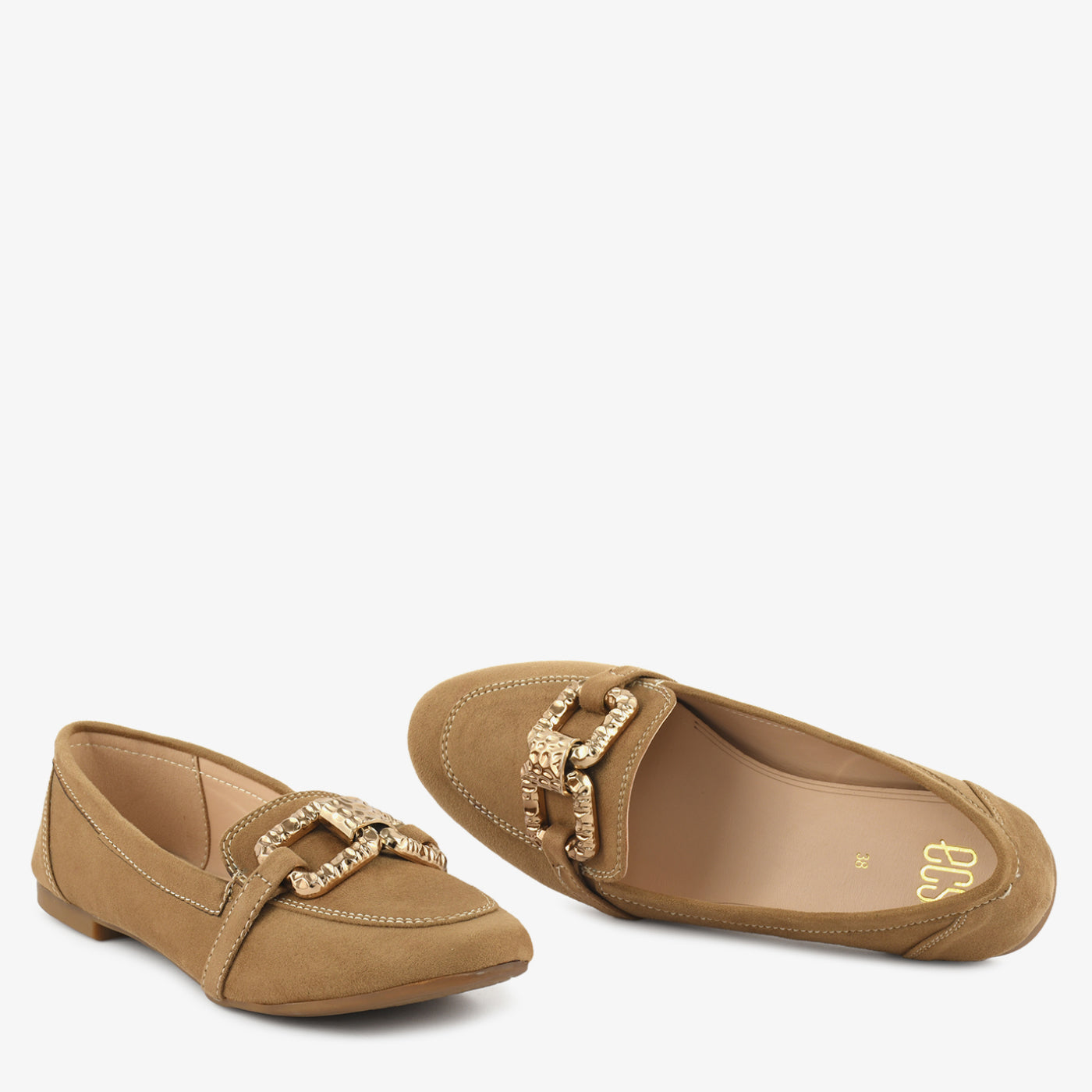 A modern loafer designed with a clean finish and bold metal accent on the upper. The flat sole ensures comfort for extended wear, making it suitable for daily use. Its slip-on design adds convenience while maintaining a refined look. Ideal for casual-formal styling and smart outfits. A versatile option for modern wardrobes.