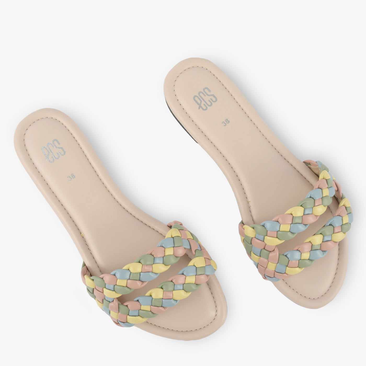 Step into summer style with these charming braided slippers. The colorful, woven straps add a touch of playful elegance, while the open-toe design keeps your feet cool and comfortable. The flat sole makes them perfect for all-day wear.