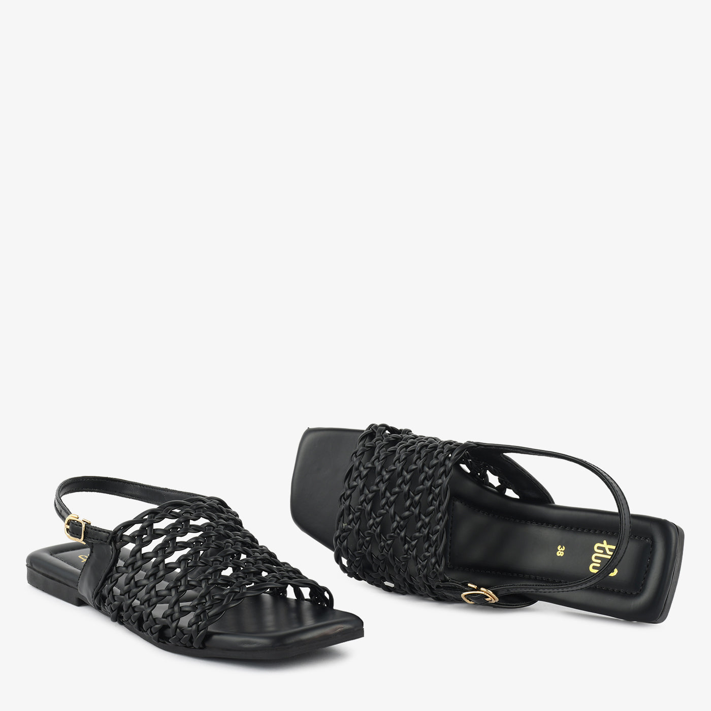 Let your feet breathe style and comfort with this uniquely crafted woven sandal. The interlaced upper adds an artisanal touch, while the flat sole keeps it casual yet chic—perfect for summer strolls or weekend brunches.
