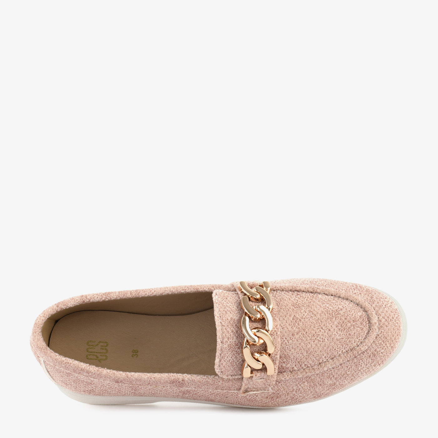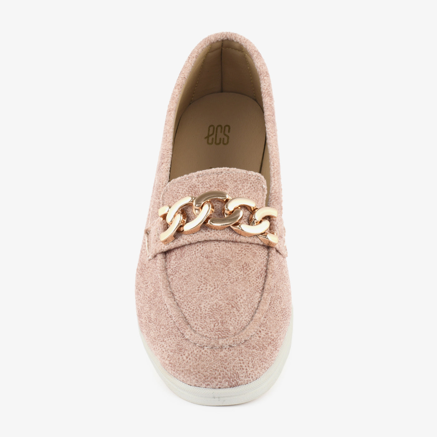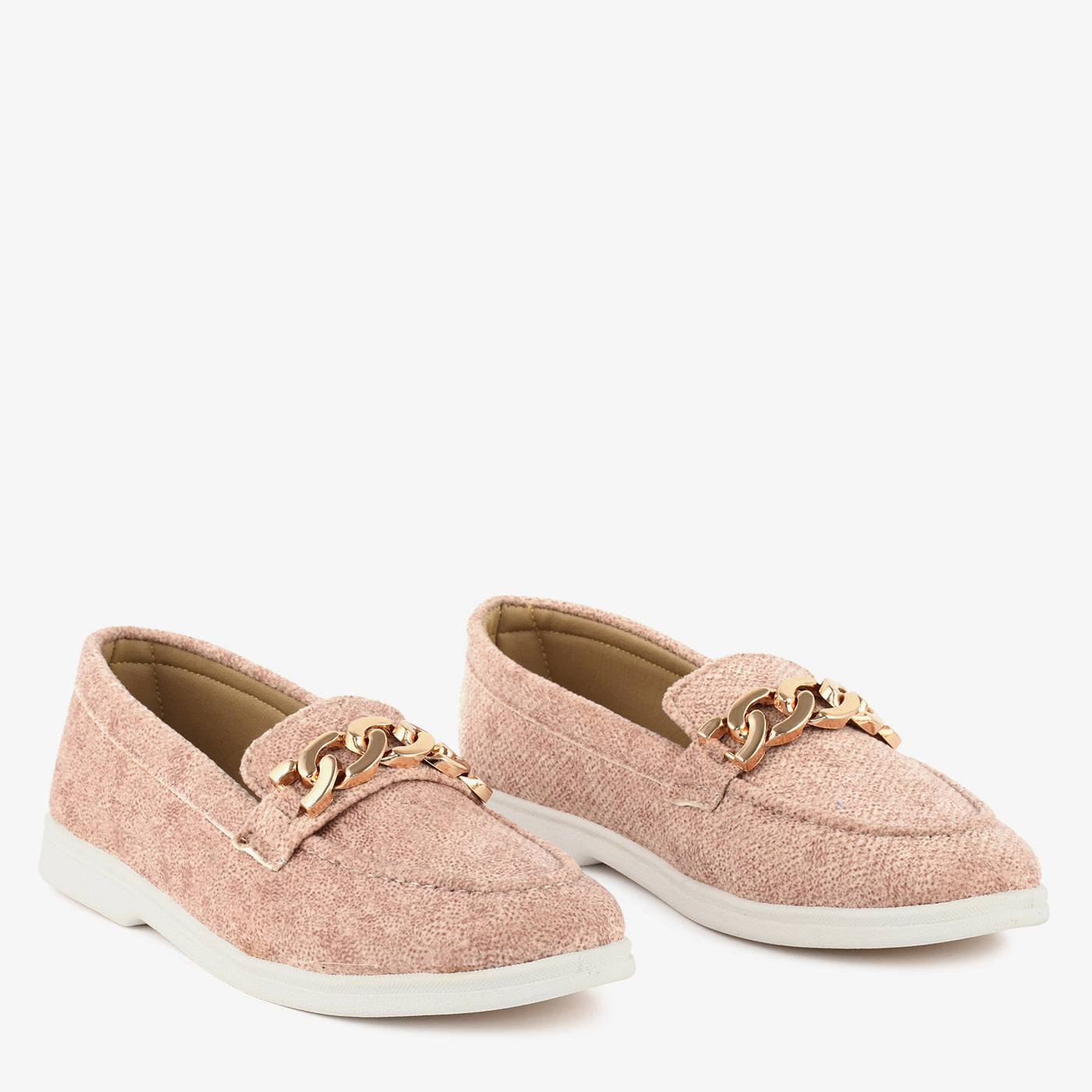 A chic loafer that combines elegance with ease. Crafted with a textured upper and accented by a metallic chain detail, it brings a refined finish to everyday looks. The soft insole ensures comfort with every step.