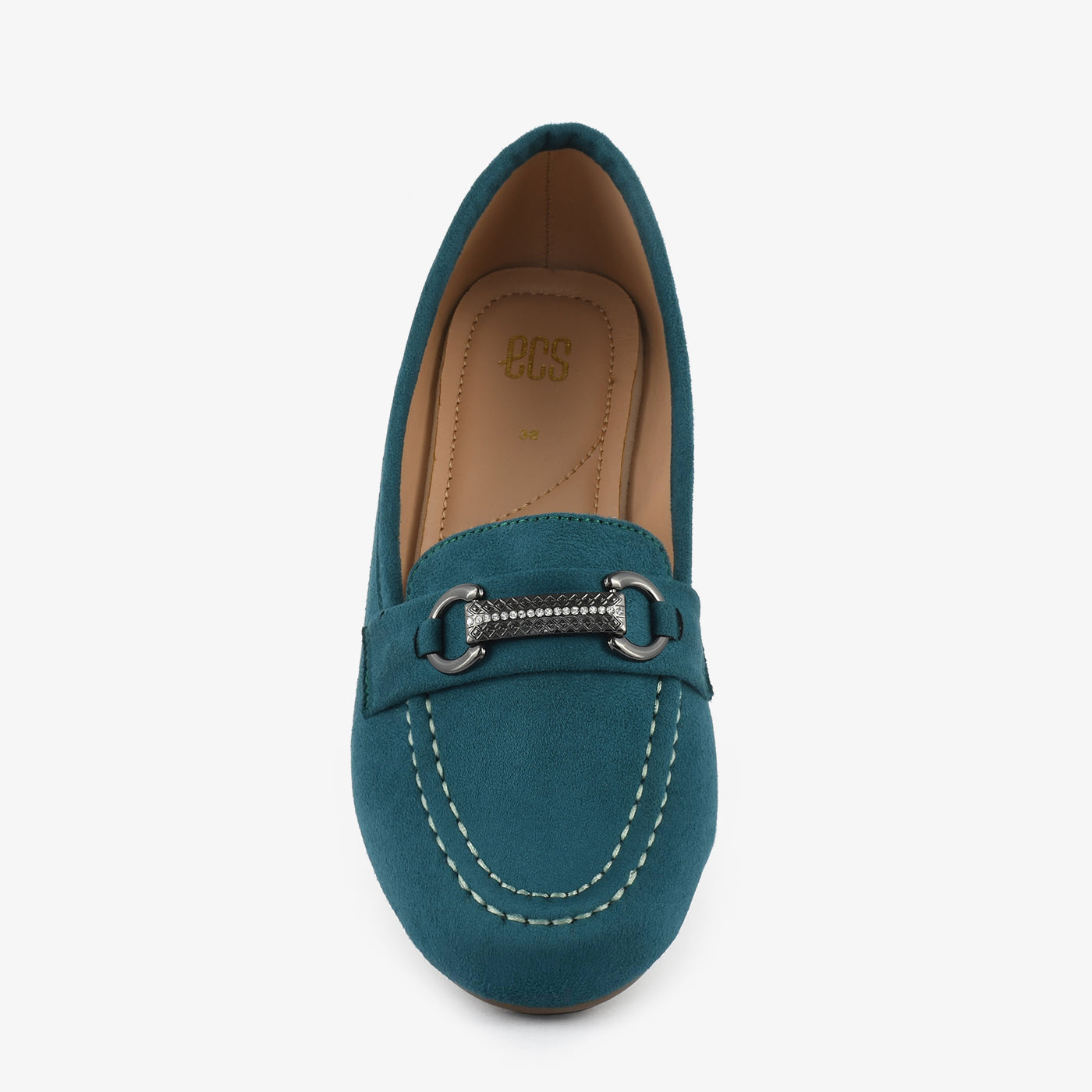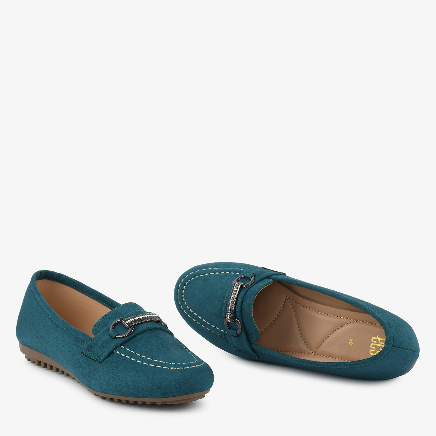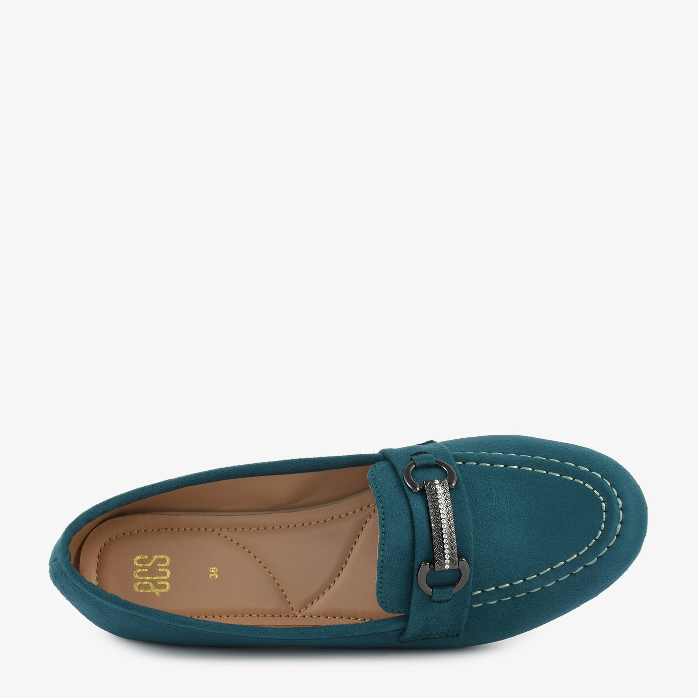 A sophisticated black slip-on detailed with a metallic bar and sparkling crystal highlights. The velvety texture gives a rich look that blends easily with formal or casual ensembles. Its cushioned insole and gripped base promise all-day comfort and durability. Stylish, elegant, and versatile for every occasion.