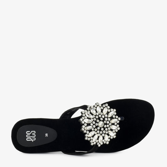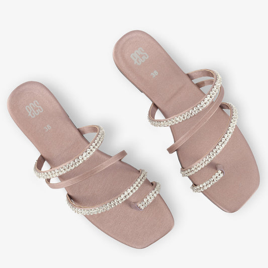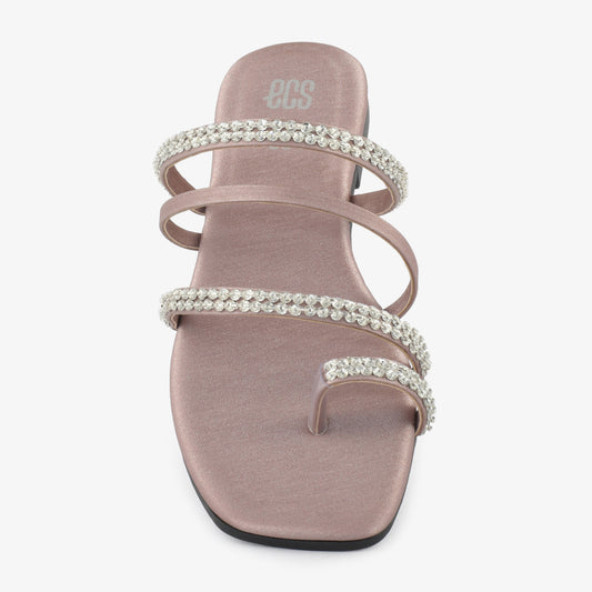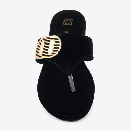 These casual chappals feature a PU construction with both upper and lining materials. The round toe and flat heel provide comfort, while the thermoplastic rubber sole ensures durability. The glittery finish adds a touch of sparkle, making them ideal for everyday wear. Featuring a flip-on fastening for easy use. Clean with a damp cloth and store away from direct sunlight.