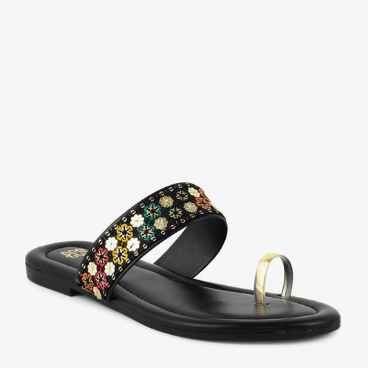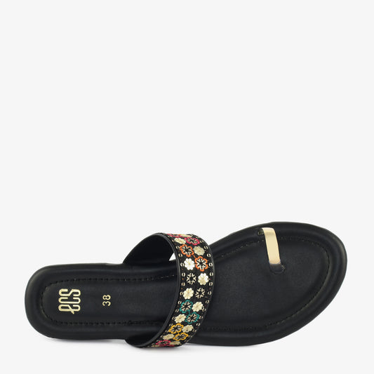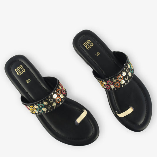 These casual chappals feature a PU construction with both upper and lining materials. The round toe and flat heel provide comfort, while the thermoplastic rubber sole ensures durability. The glittery...