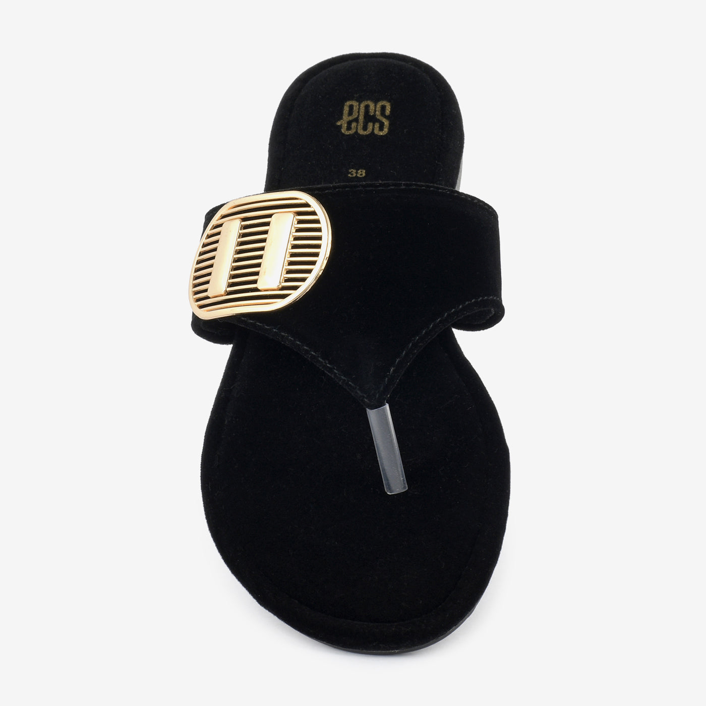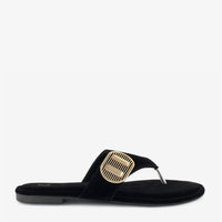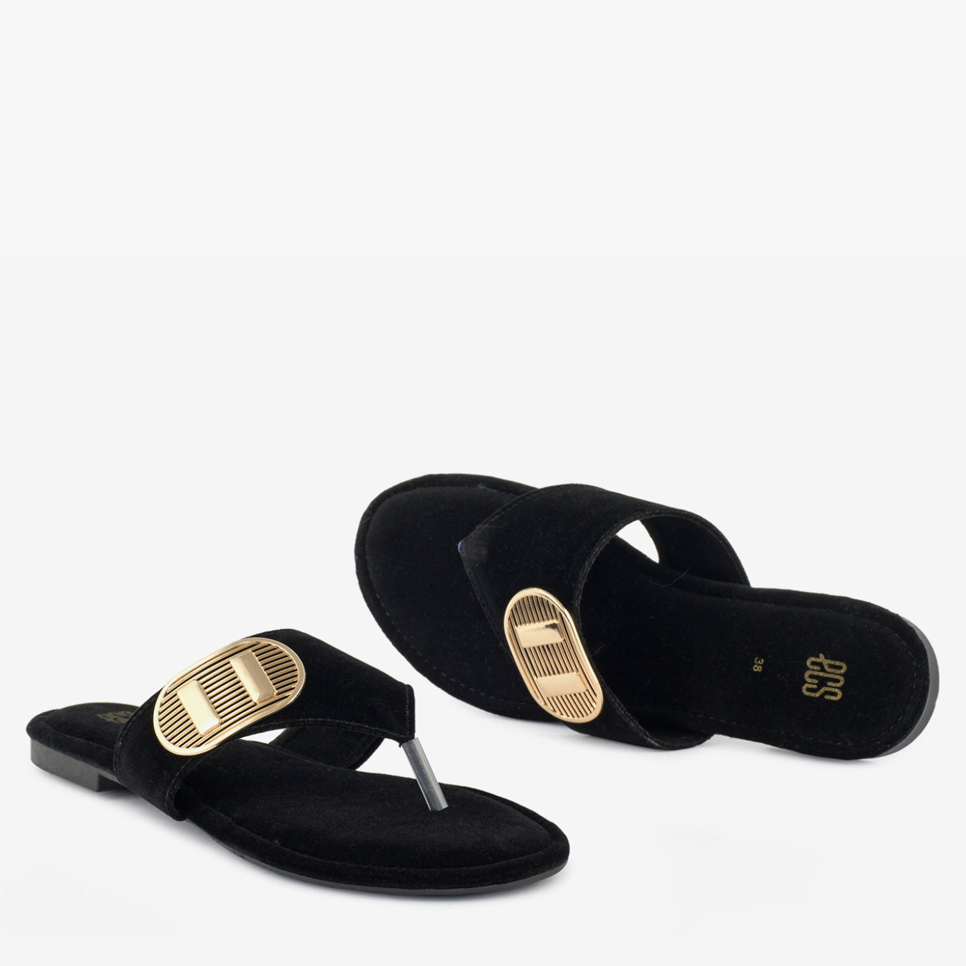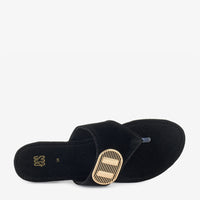 - Type: Flat, open-toe, slip-on