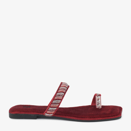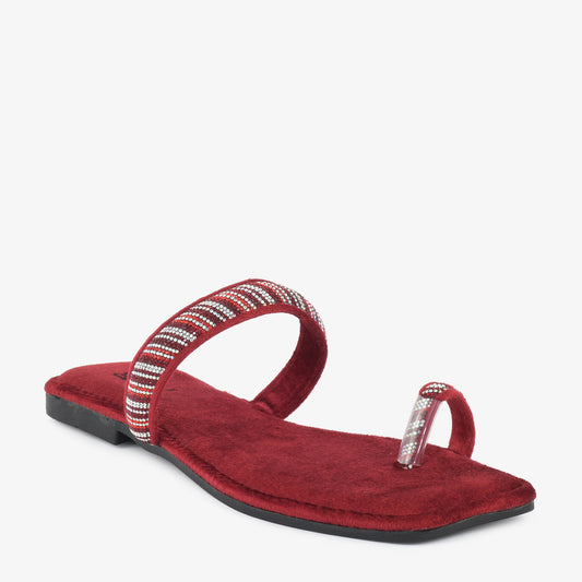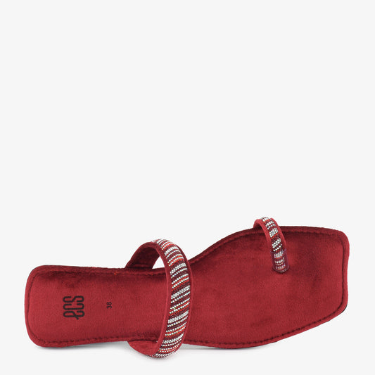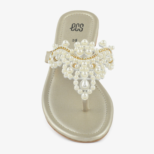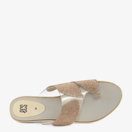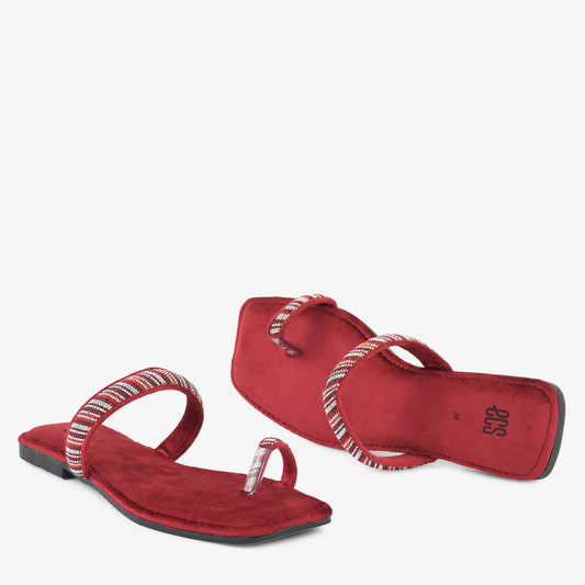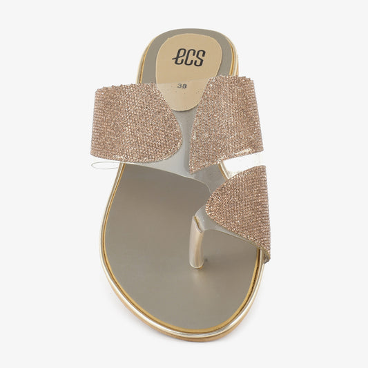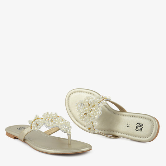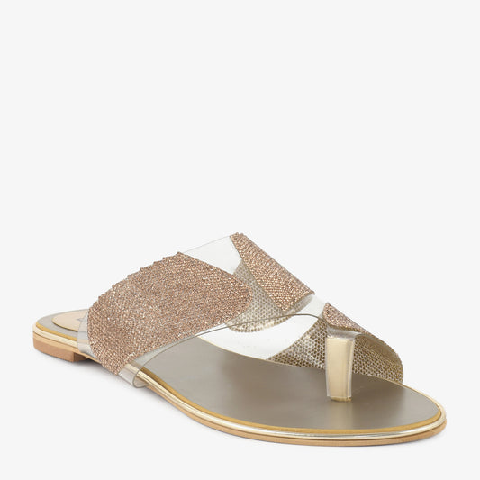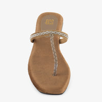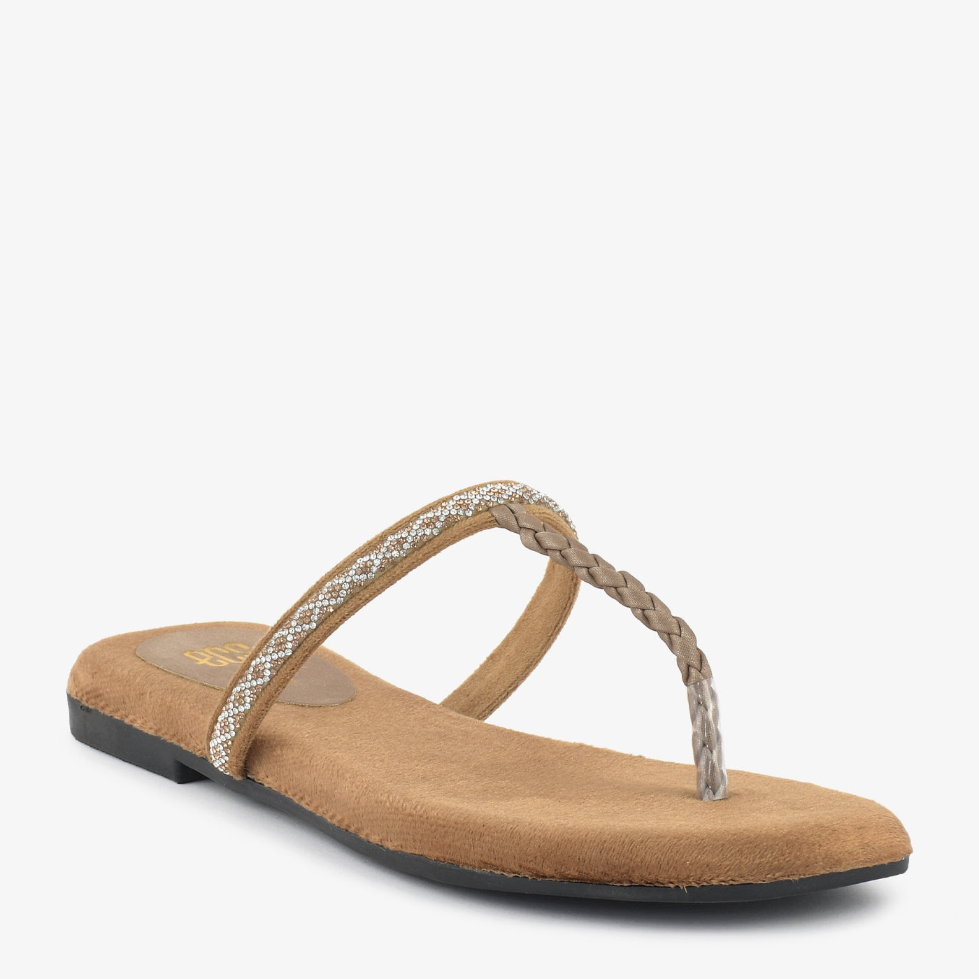 Step into stylish comfort with the "Braided Sparkle" chappals. These chic tan chappals feature a comfortable flat design with a braided strap and delicate crystal embellishments, along with a thumb thong for a secure fit. Perfect for adding a touch of subtle glamour to your everyday look.